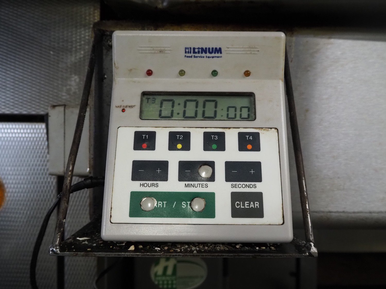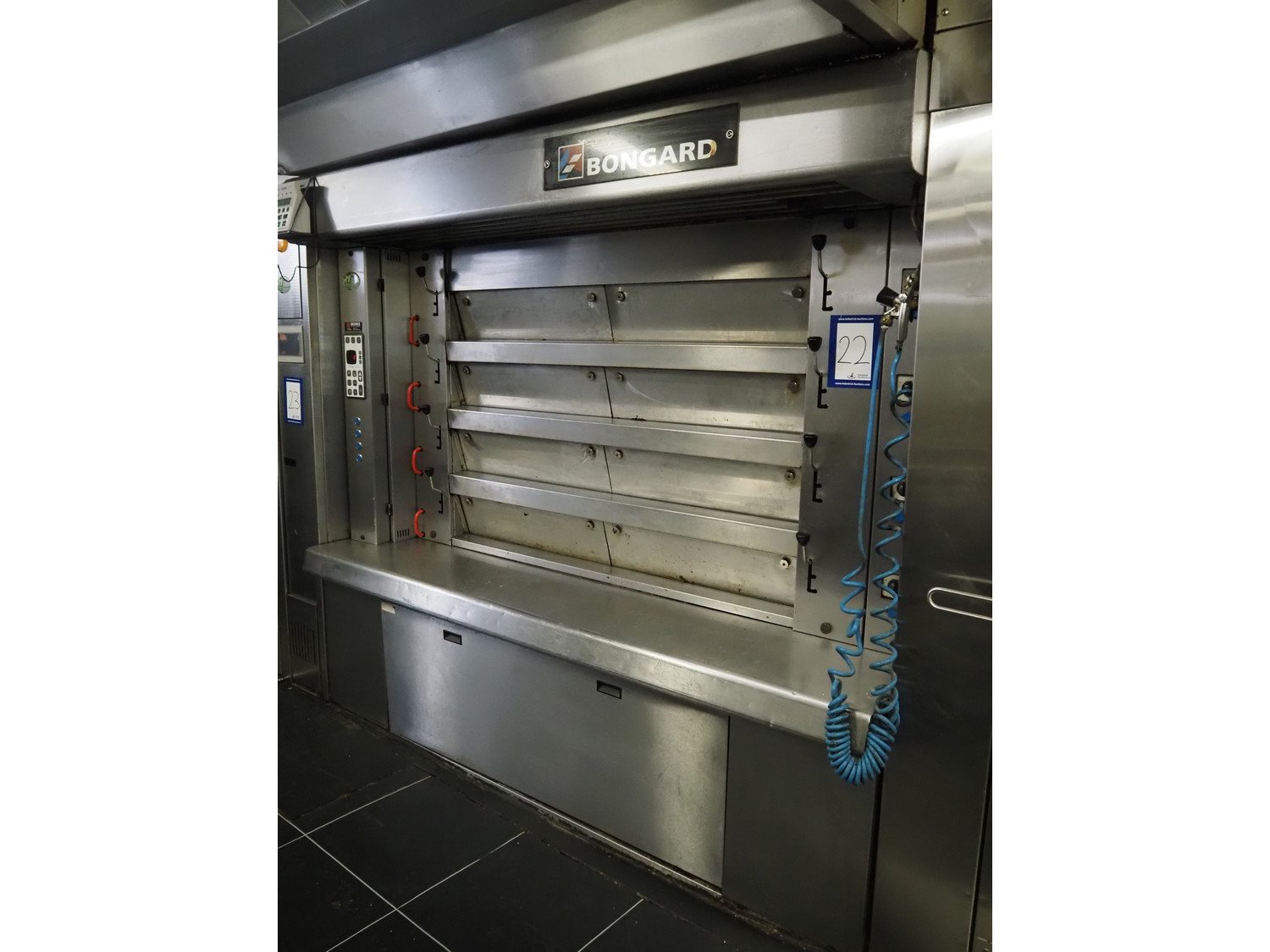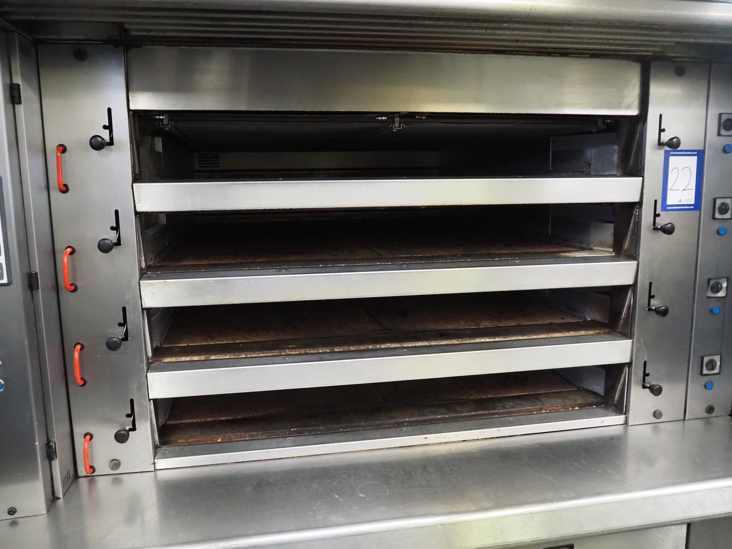 Bongard deck oven, 4 decks, inside dimensions: (4x) 1250 mm x 1140 mm x 200 mm, total dimensions: 3000 mm x 2330 mm x 2120 mm.