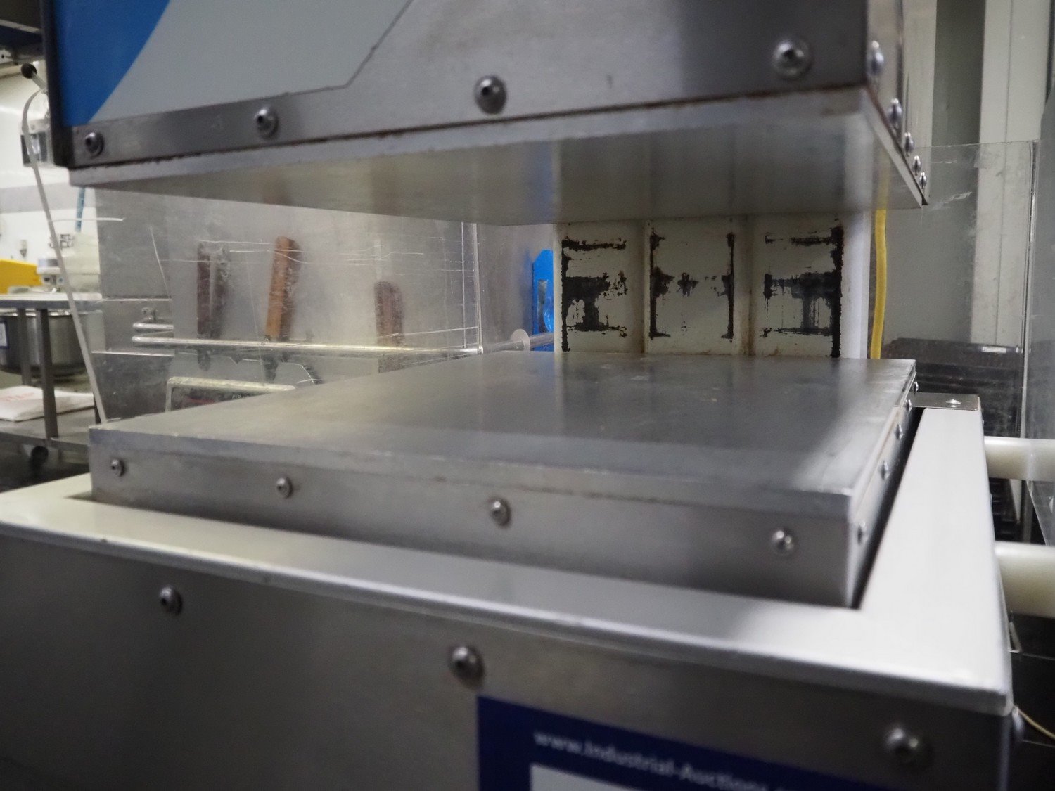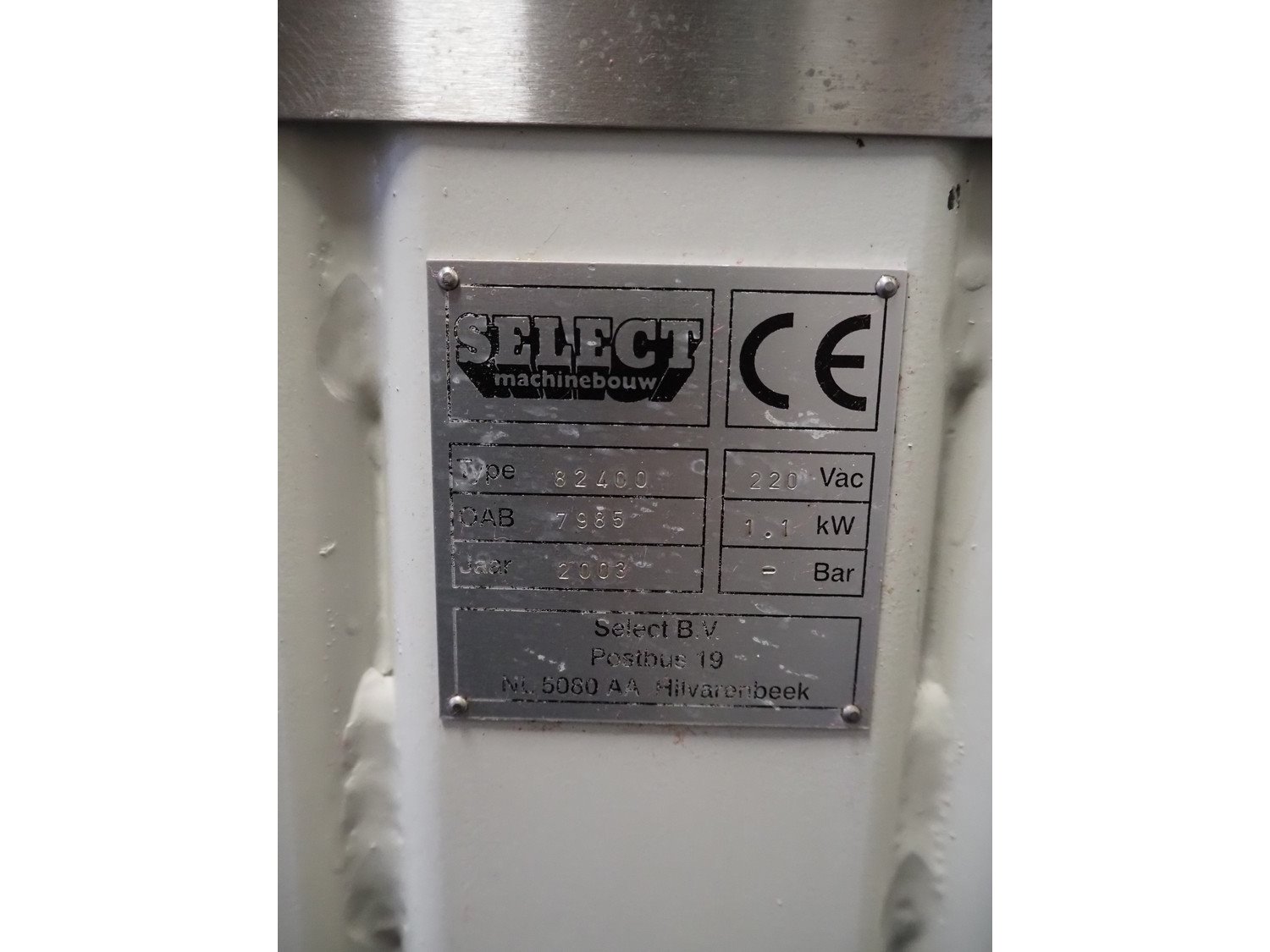 Select Machinebouw mobile dough press, type: 82400, number: 7985, year of construction: 2003, 220 V, 1.1 kW, press: 500 mm x 400 mm, total dimensions: 710 mm x 600 mm x 1350 mm.