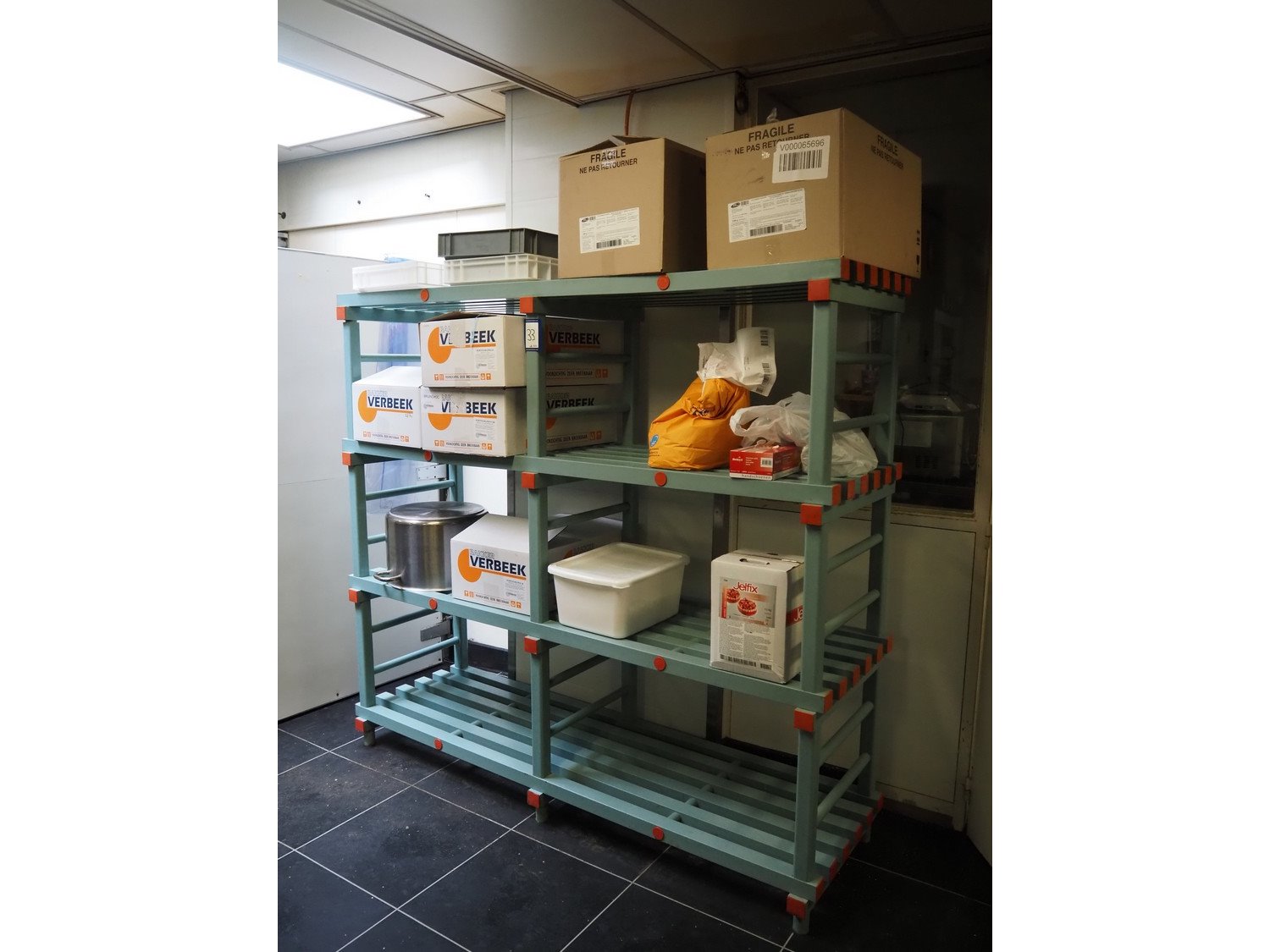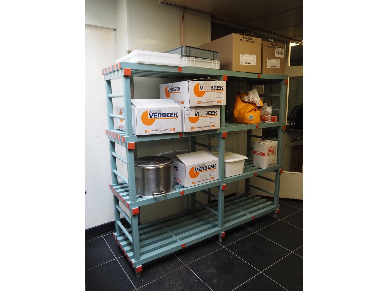 REA rack, 4 floors, dimensions: 2000 mm x 610 mm x 1820 mm. Including content.