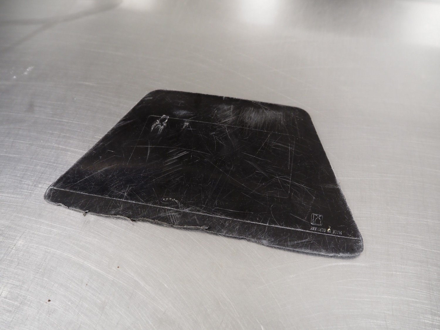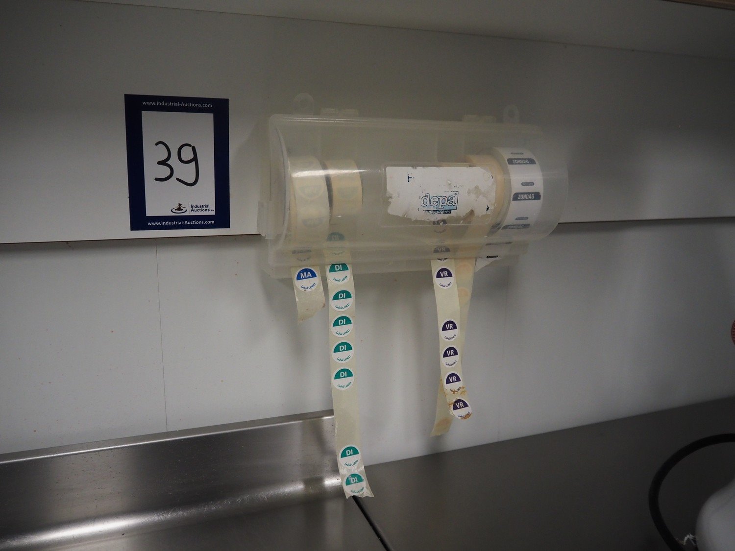 S/s wall mounted frame with dough scrapers, dimensions: 185 mm x 500 mm x 130 mm. Including holder for date labels.