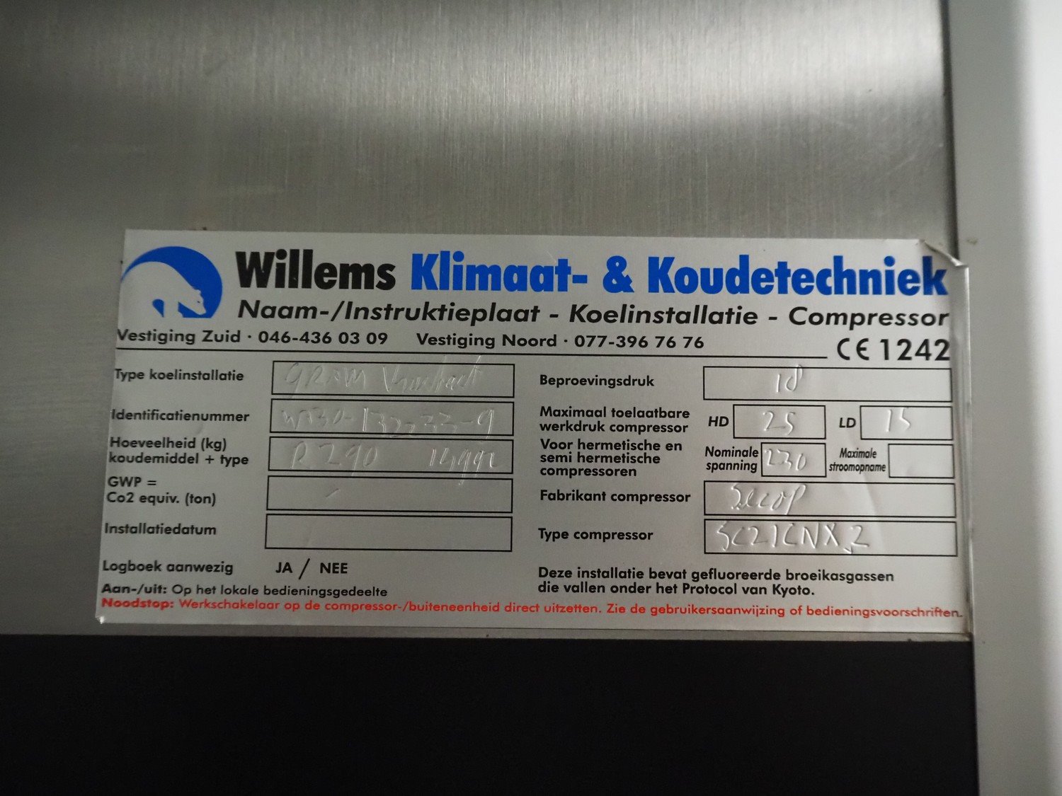 Gram freezer, type: Gram Vuutact, refrigerant: R290, 7 floors, floor dimensions: 800 mm x 600 mm, total dimensions: 1100 mm x 820 mm x 2200 mm.