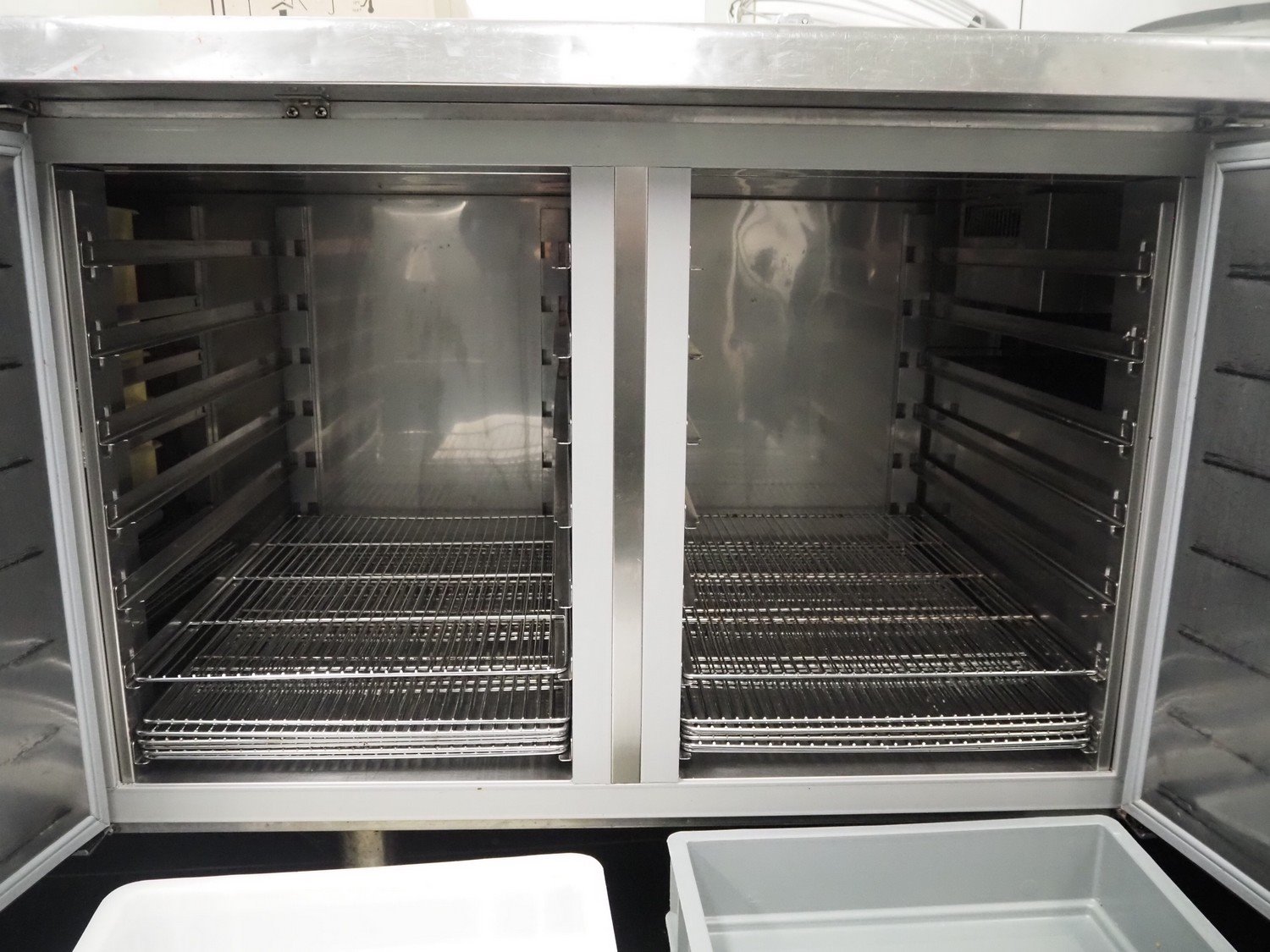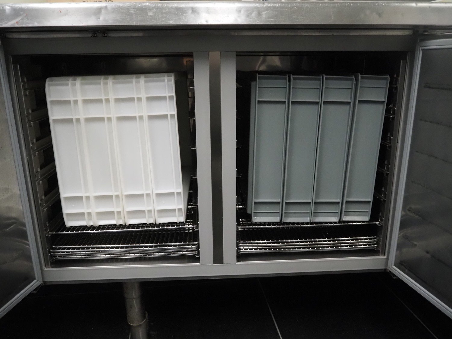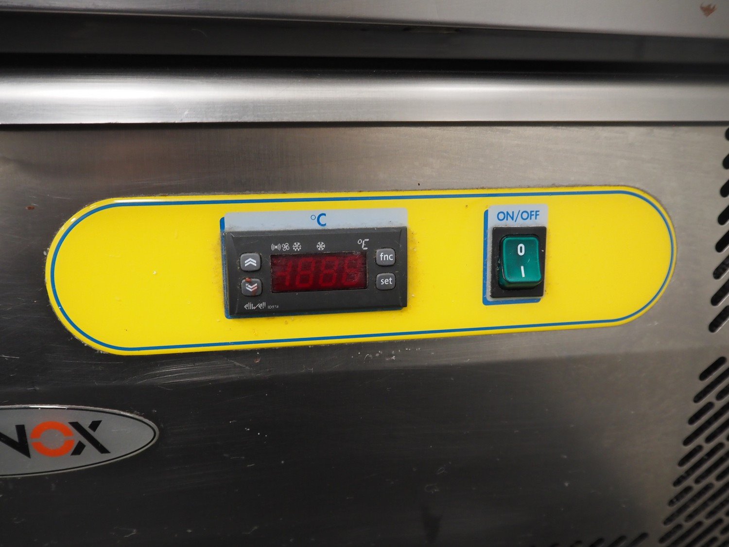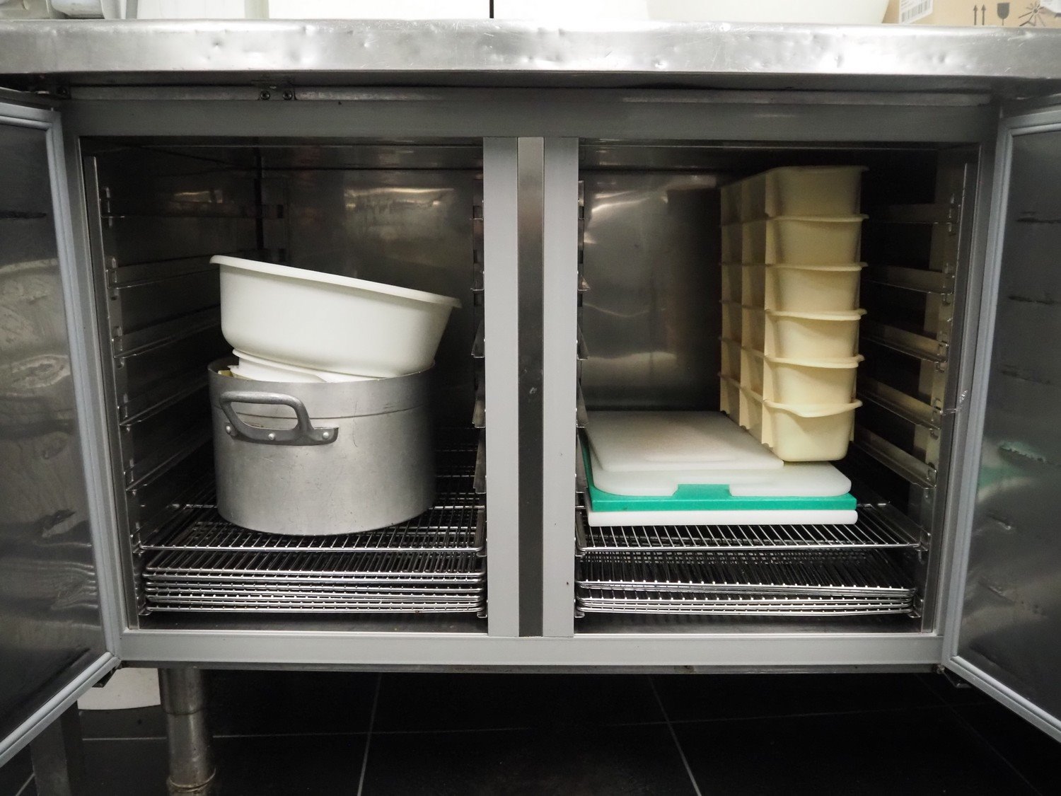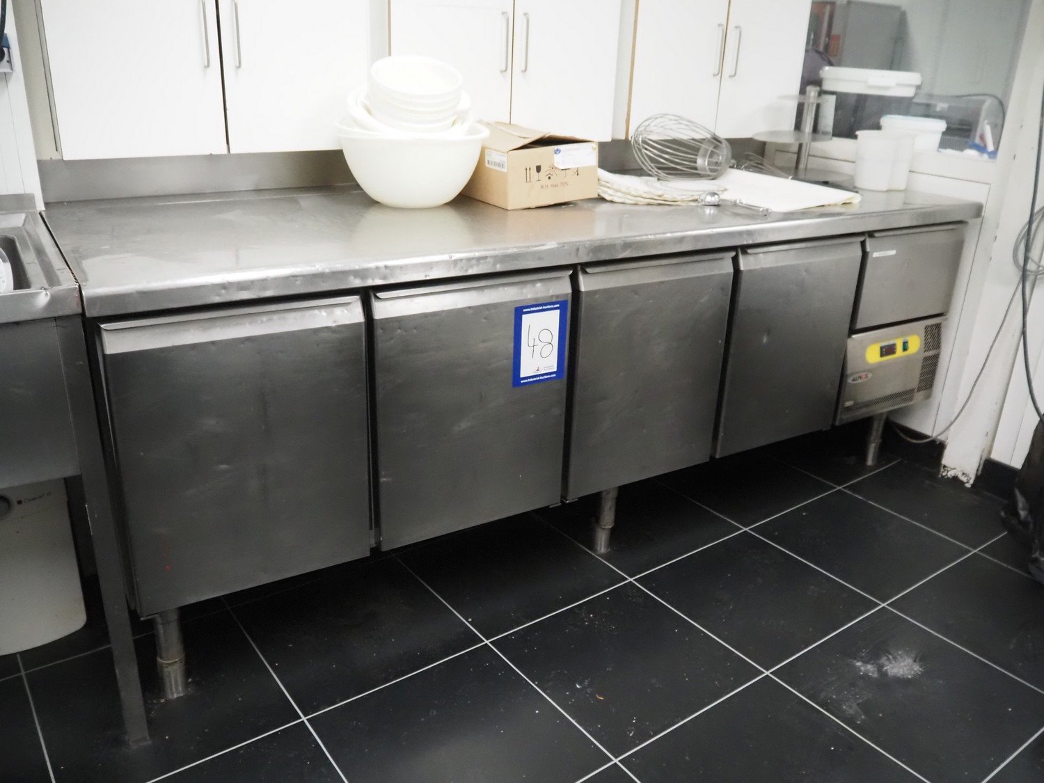 Alinox s/s cooling cabinet, 4 doors, plate dimensions: 600 mm x 400 mm, refrigerant: R134A, range: -2°C / +8°C, total dimensions: 2600 mm x 800 mm x 1010 mm.