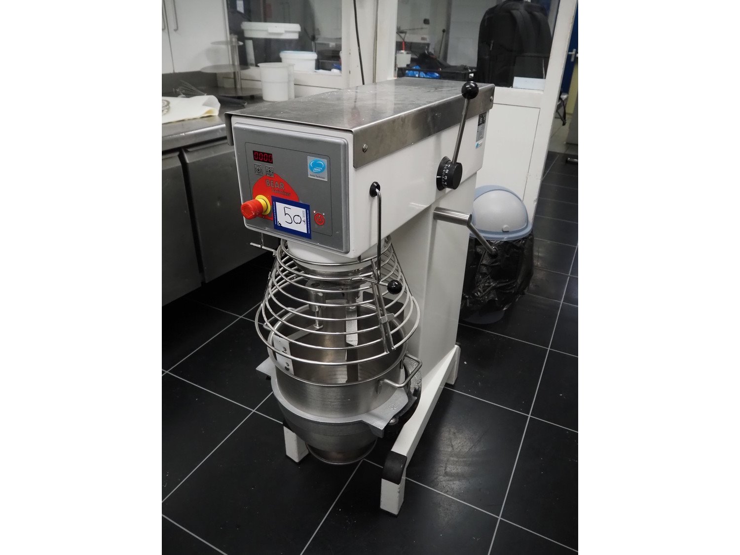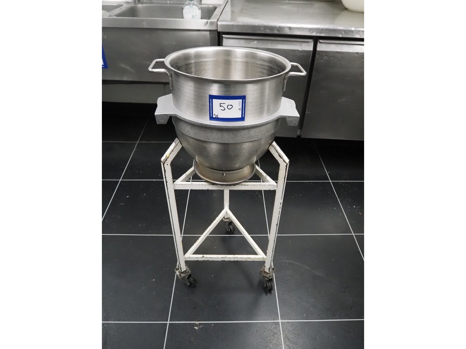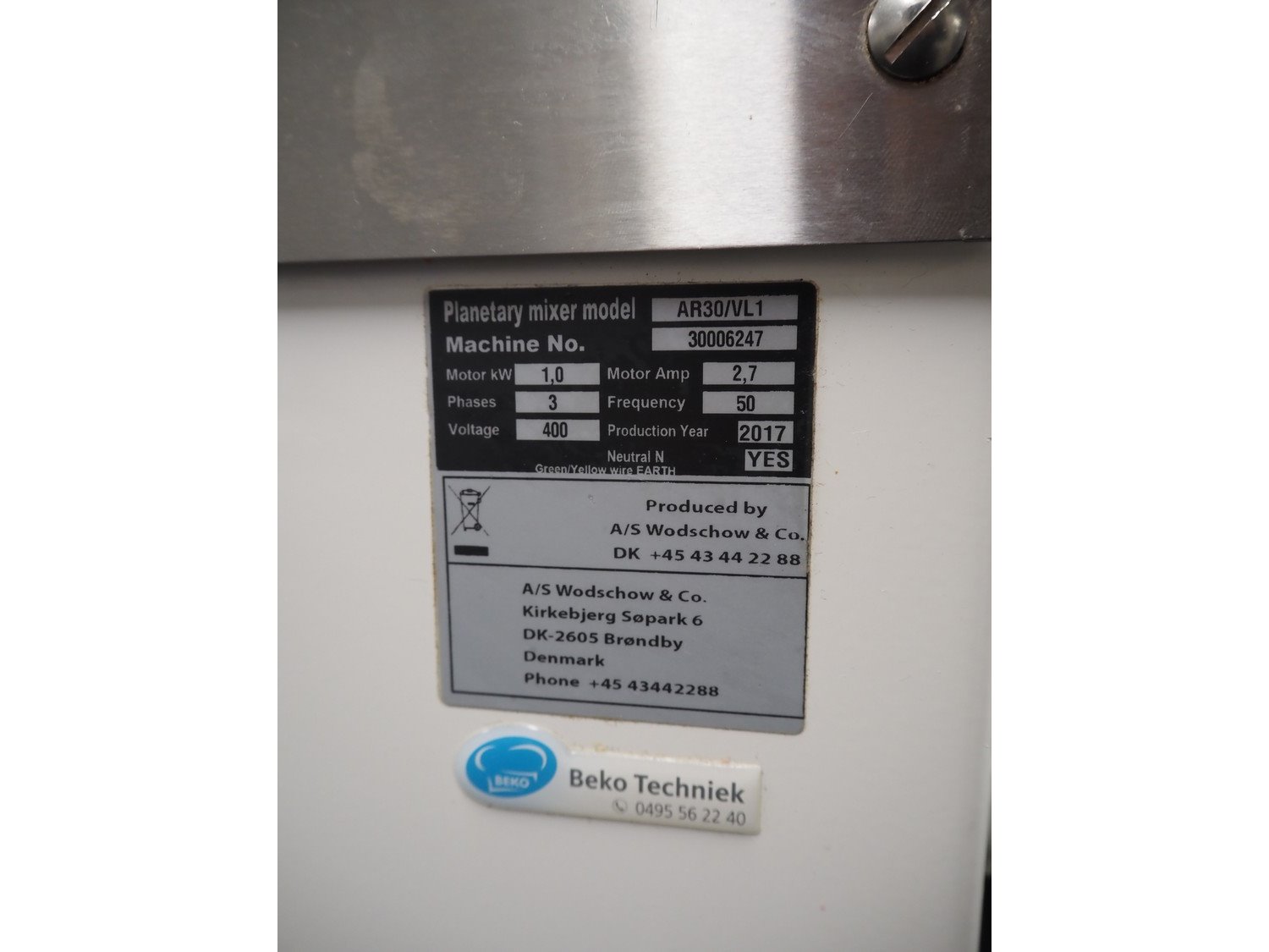 A/S Wodschow & Co. mixer, model: AR30/VL1, machine number: 30006247, year of construction: 2017, 400 V, 3 Ph, 50 Hz, 2.7 A, 1.0 kW, volume: 30 liter, s/s bowl, bowl dimensions: Ø 350 mm x 350 mm, total dimensions: 850 mm x 460 mm x 1250 mm. Including extra s/s bowl and trolley.