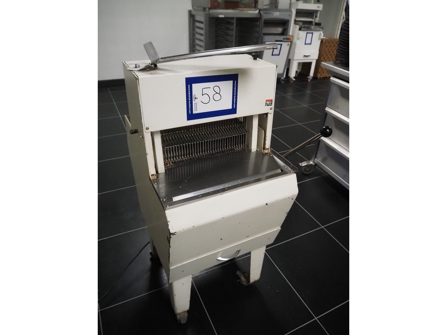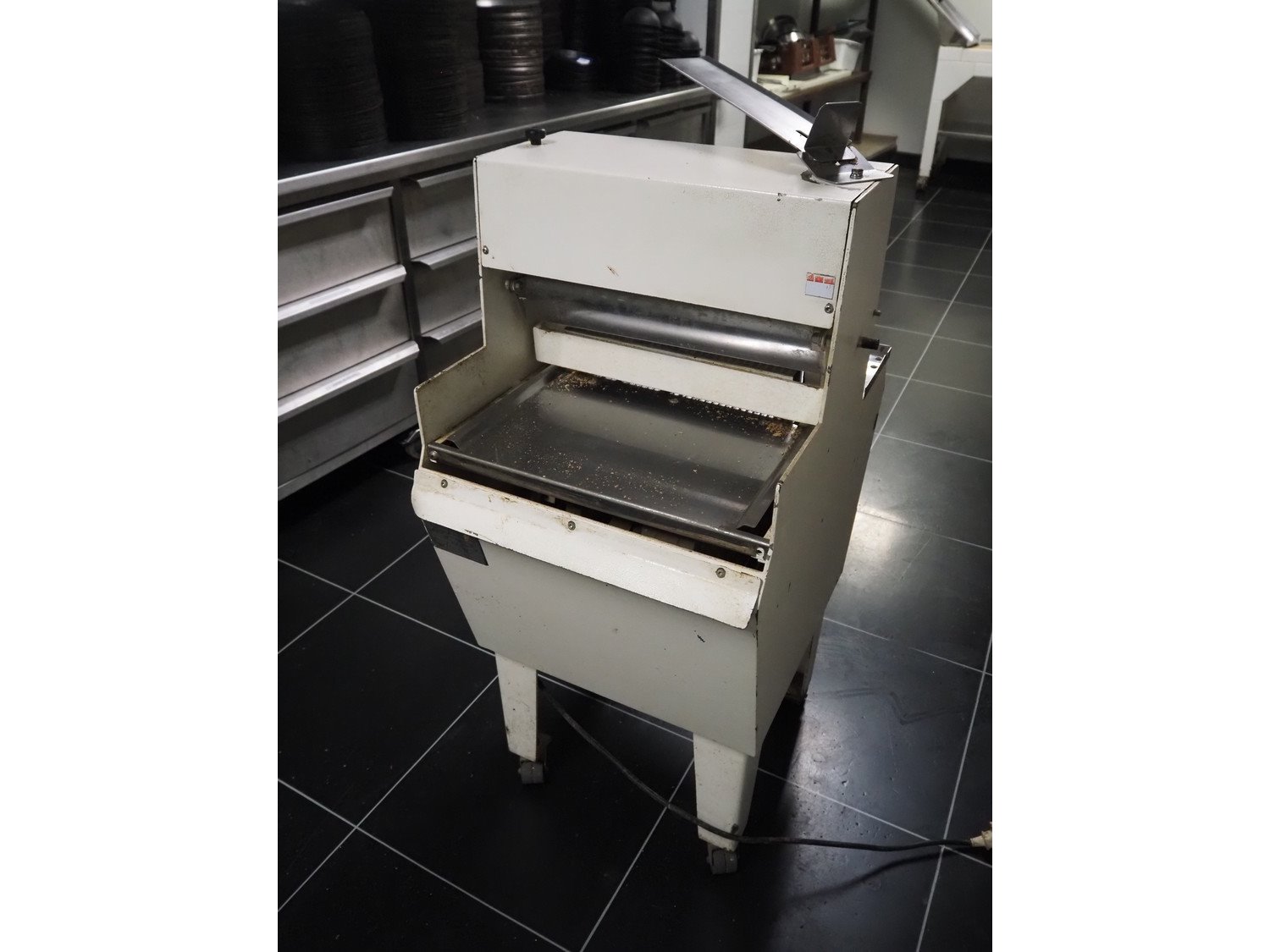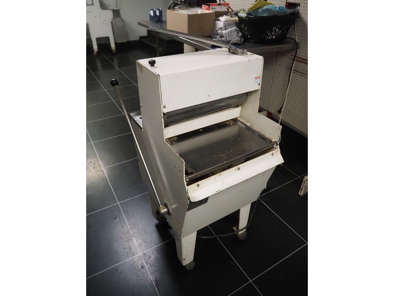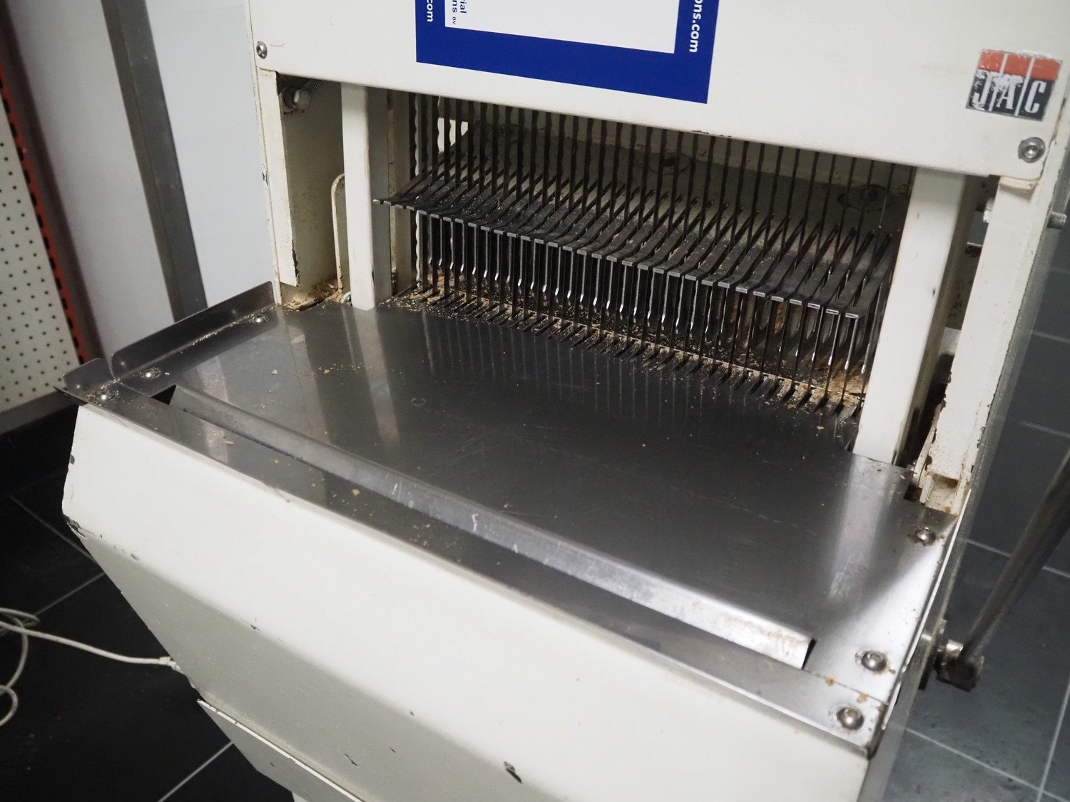 JAC mobile bread slicer, 34 knives, distance between knives: 12 mm, total dimensions: 700 mm x 600 mm x 1260 mm.