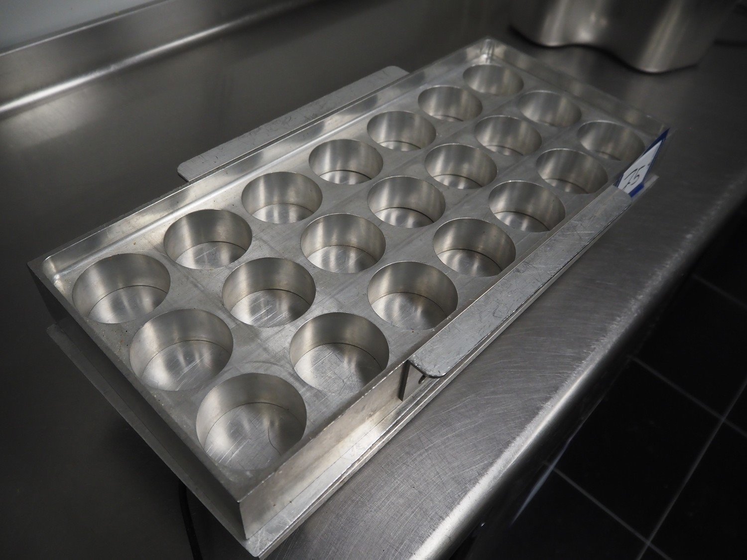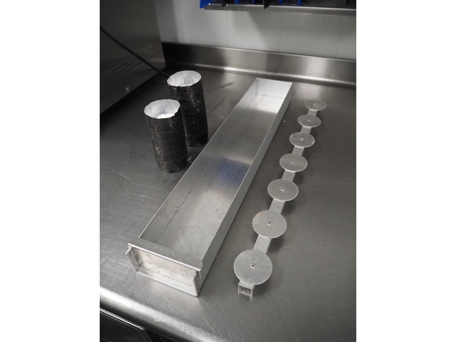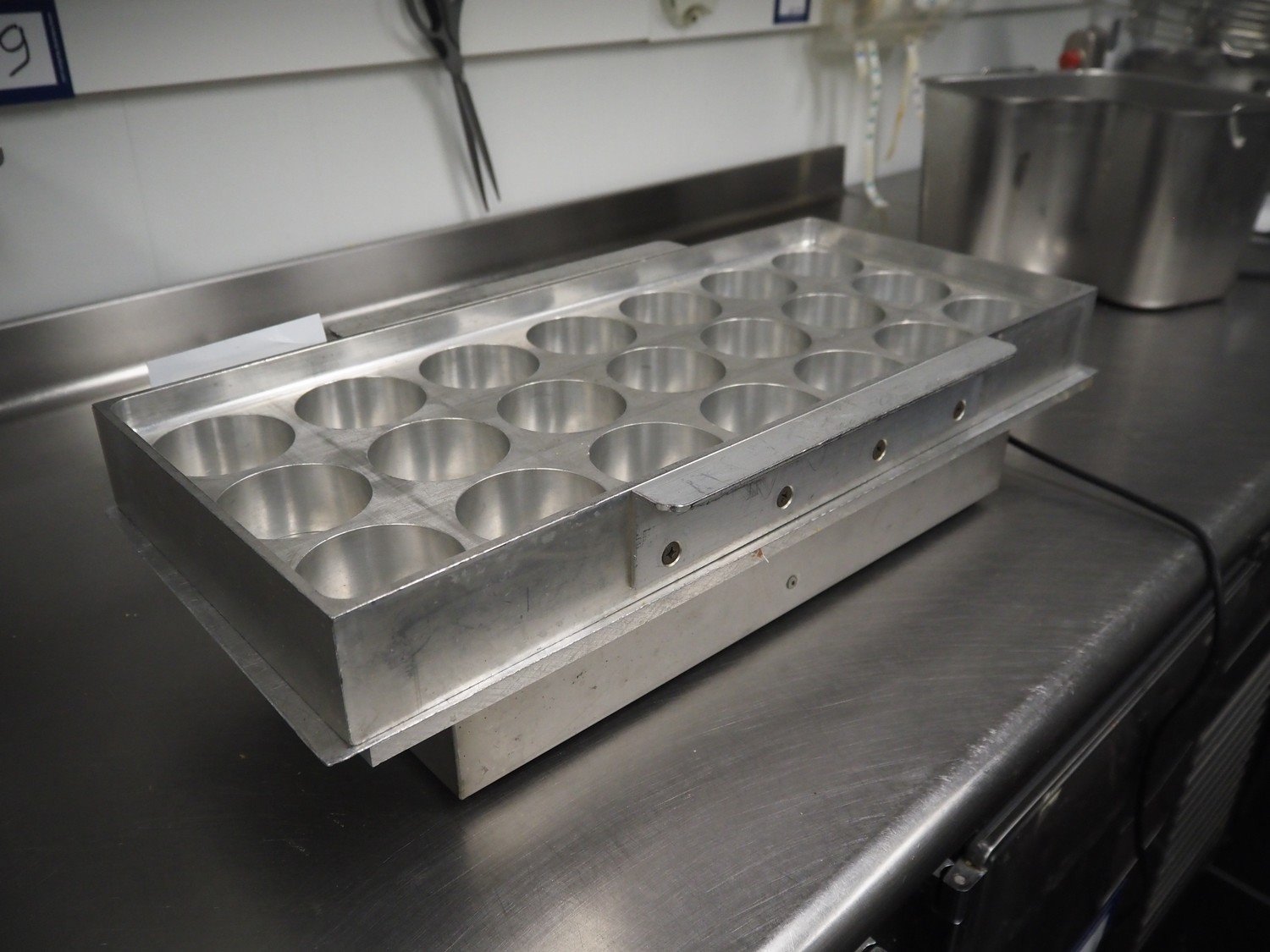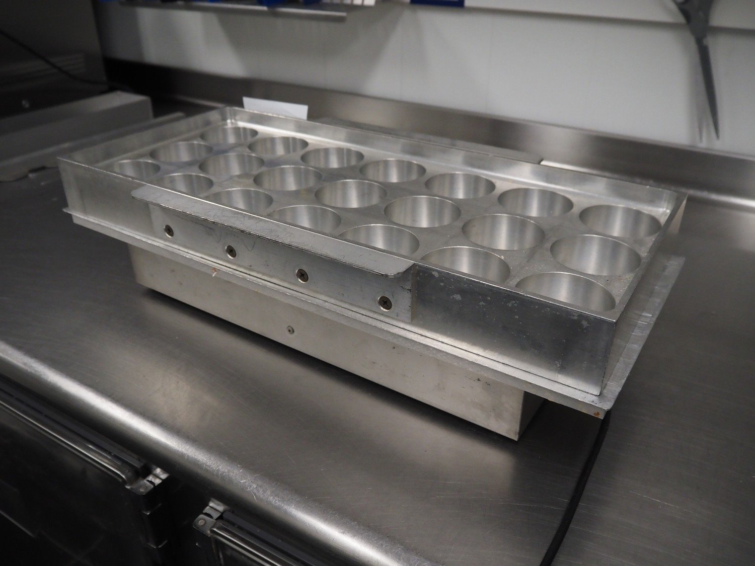 S/s filling frame with cool plate, dyes: (21x) 70 mm, total dimensions: 560 mm x 300 mm x 60 mm. Cool plate dimensions: 560 mm x 245 mm x 90 mm.