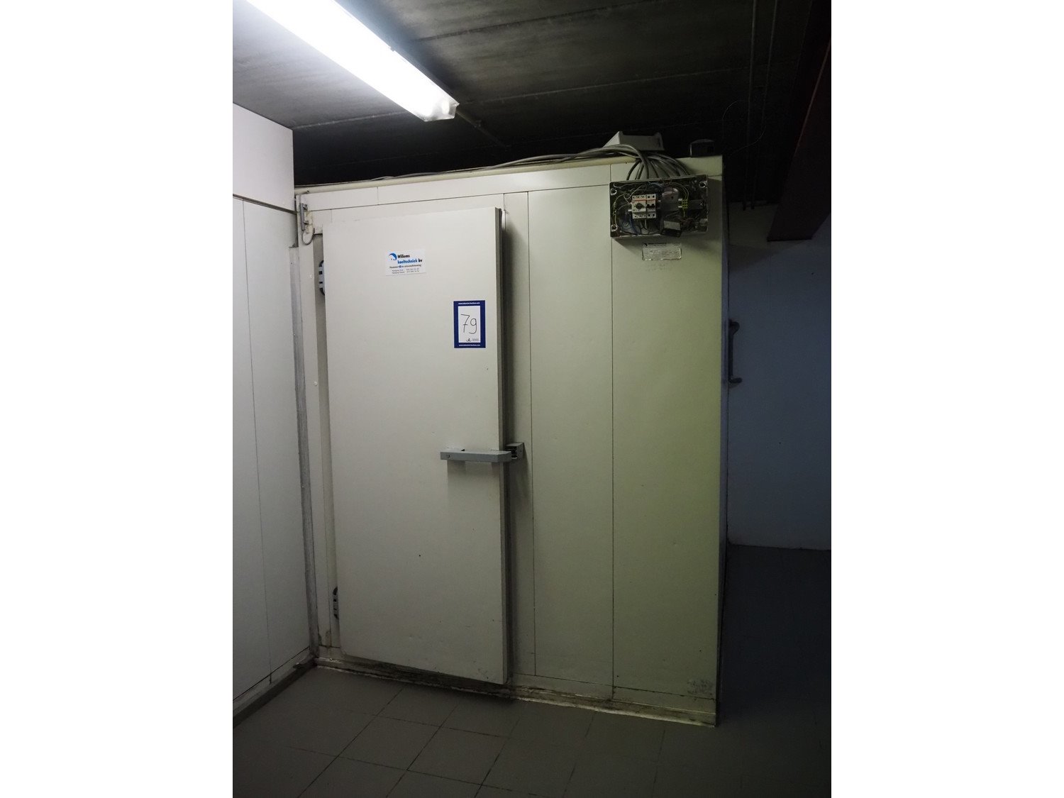 Cooling cell with ECO evaporator, inside dimensions: 2450 mm x 770 mm x 2100 mm, door dimensions: 850 mm x 2000 mm, ECO evaporator, 2 fan, total dimensions: 2600 mm x 1950 mm x 2330 mm. Technical condition unknown.