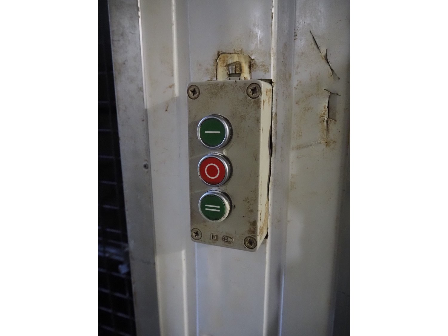 Goods elevator, maximum: 700 kg, inside dimensions: 1450 mm x 1020 mm x 2160 mm, lifting height: 2880 mm, total dimensions: 1550 mm x 1300 mm x 6000 mm.