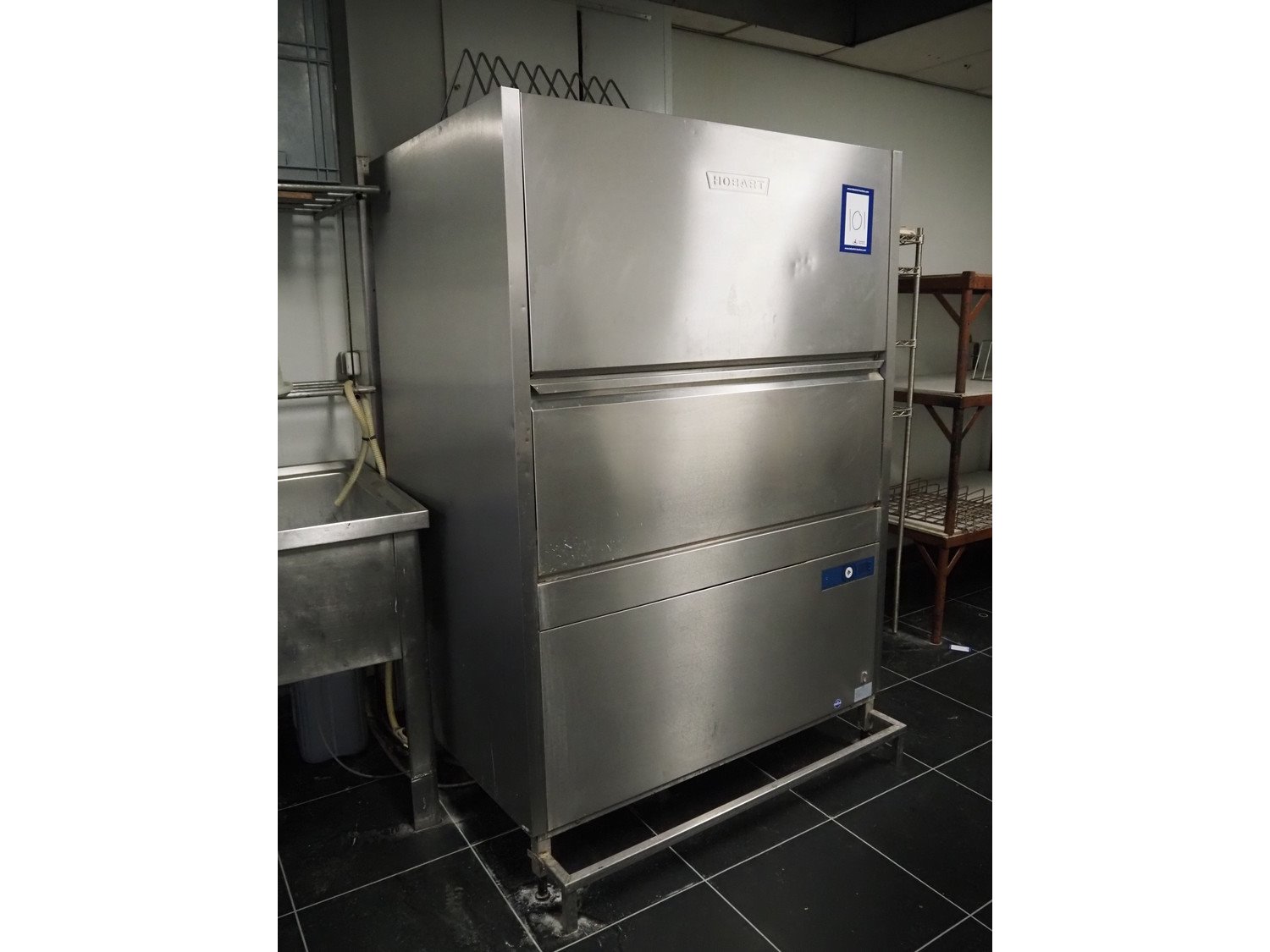 Hobart GmbH dishwasher, model: UXT-10A, year of construction: 2018, 400 V, 3 Ph, 50 Hz, inside dimensions: 1220 mm x 700 mm x 900 mm, total dimensions: 1380 mm x 950 mm x 2020 mm.