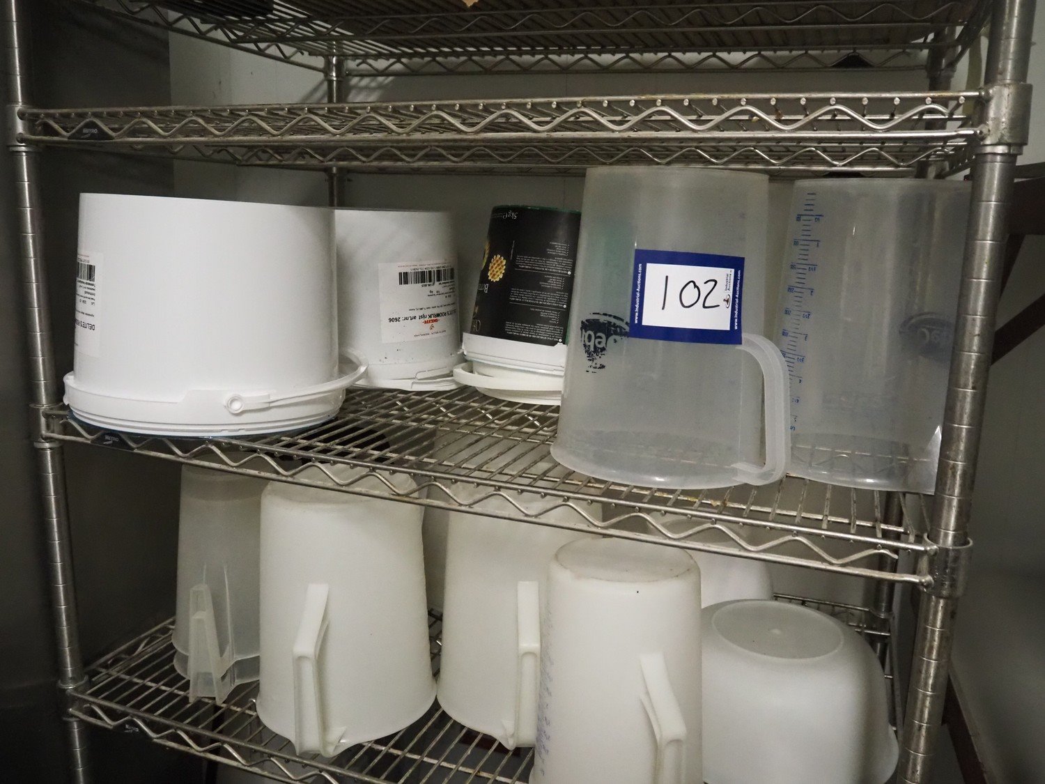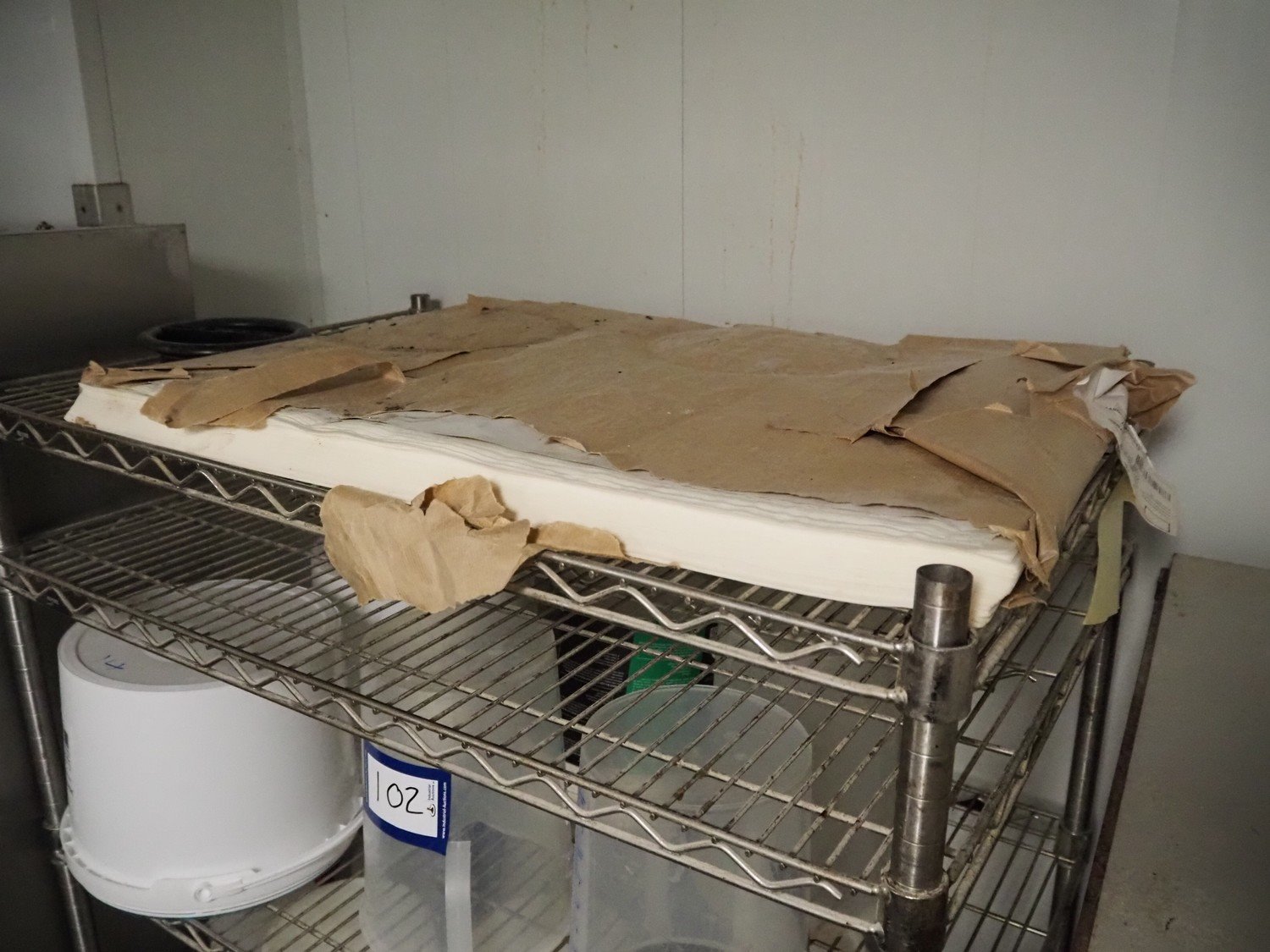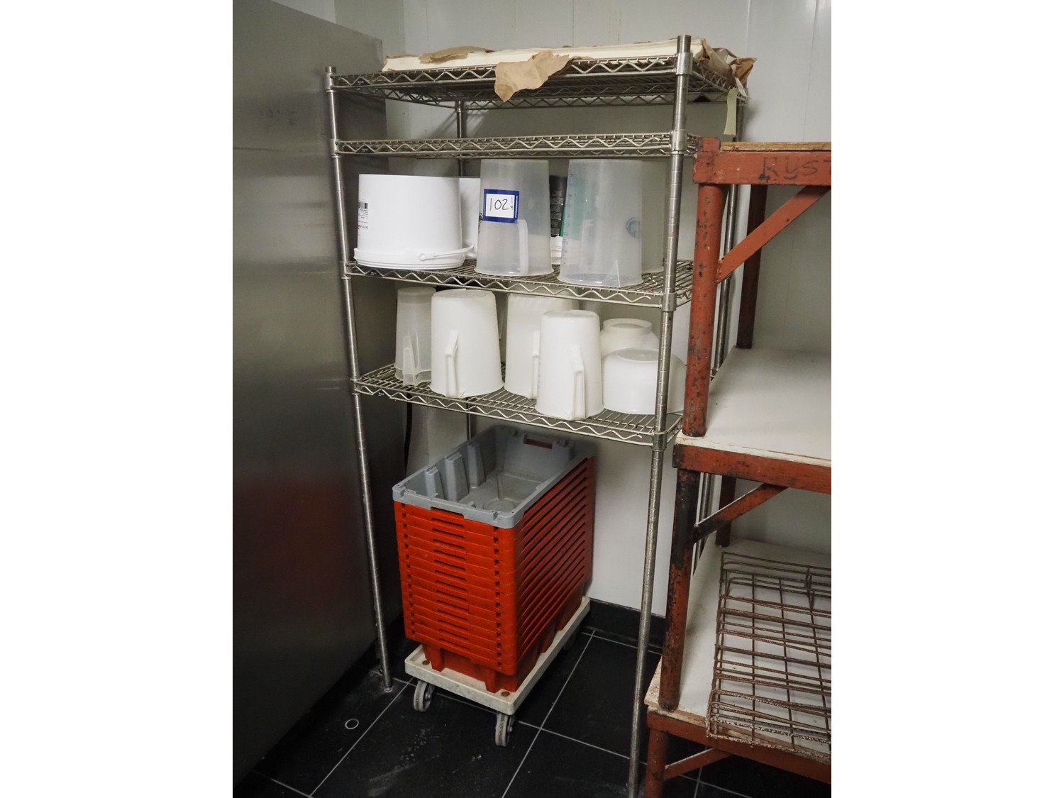S/s rack, 4 floors, dimensions: 900 mm x 630 mm x 1900 mm. Including content.