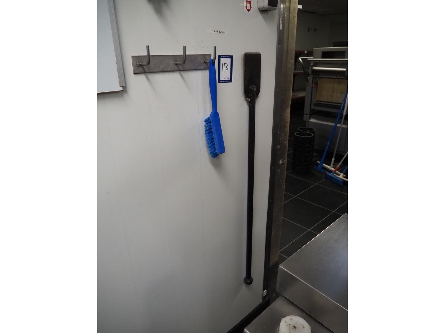 S/s pegs with hand brush, pegs: (3x) 60 mm, total dimensions: 300 mm x 70 mm x 60 mm.