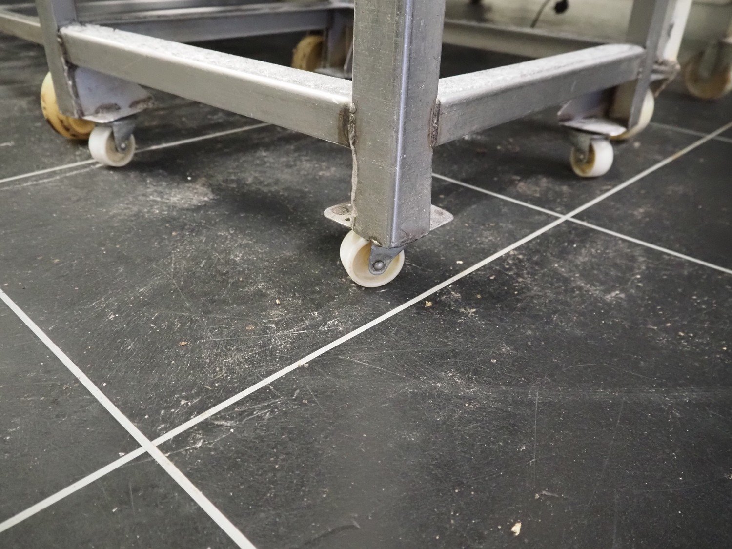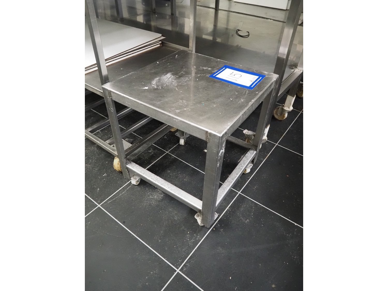 S/s mobile table, dimensions: 500 mm x 500 mm x 560 mm.