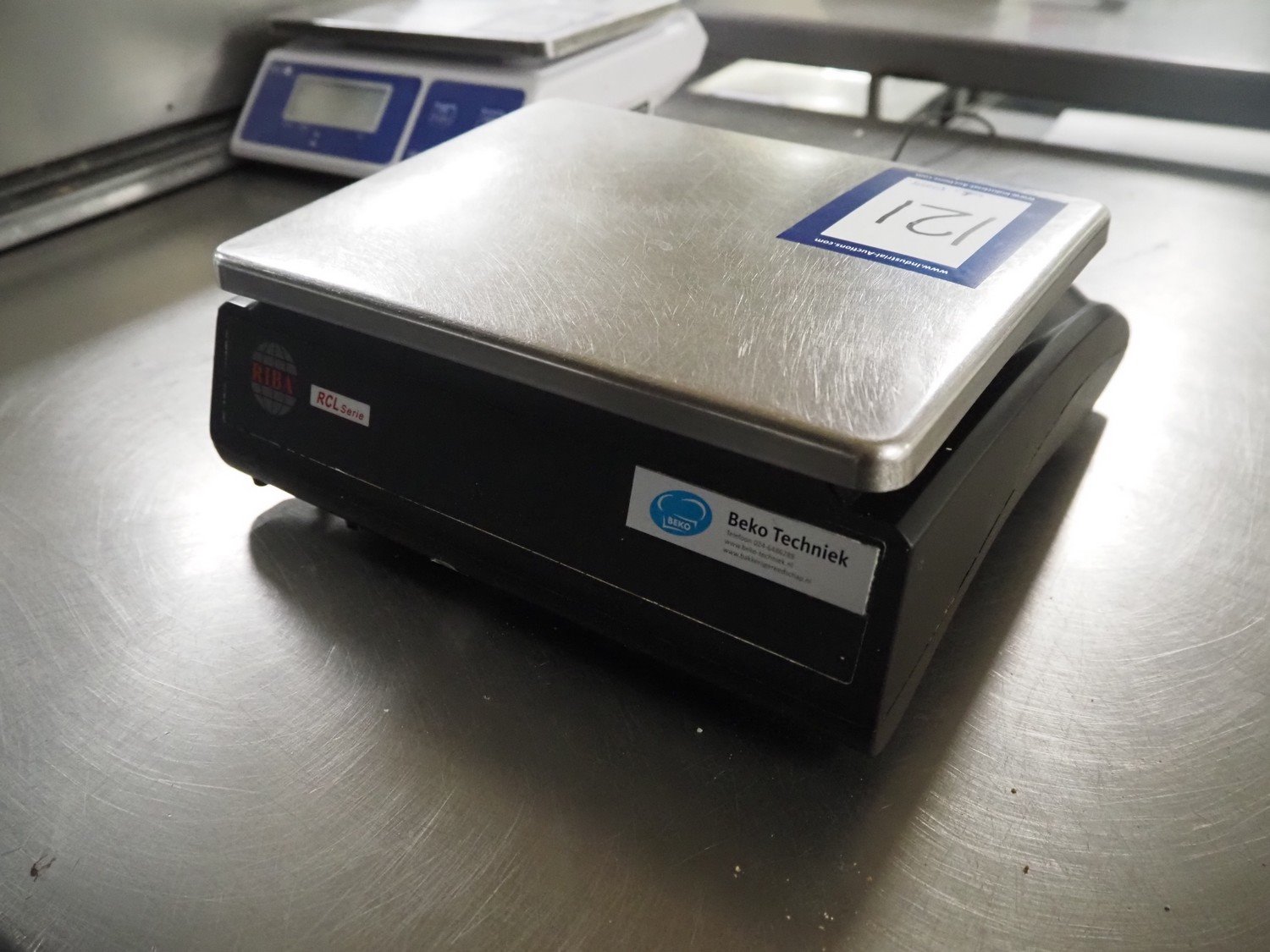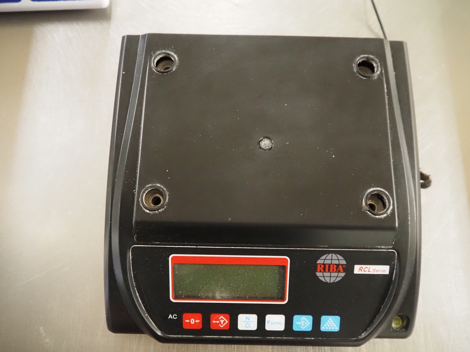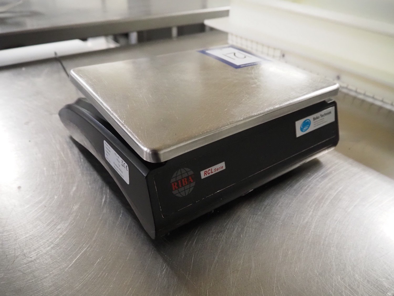 Riba weighing scale, model number: RCL-30, serial number: RIJSEM190656, capacity: 30 kg, e = 1 gram, scale: 280 mm x 200 mm, total dimensions: 300 mm x 320 mm x 120 mm.