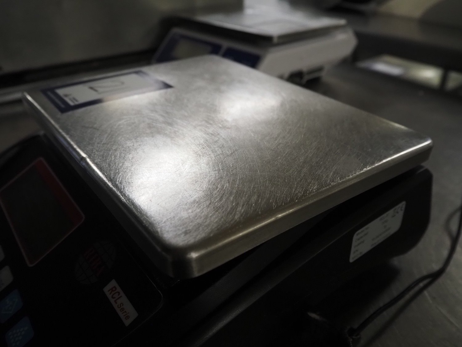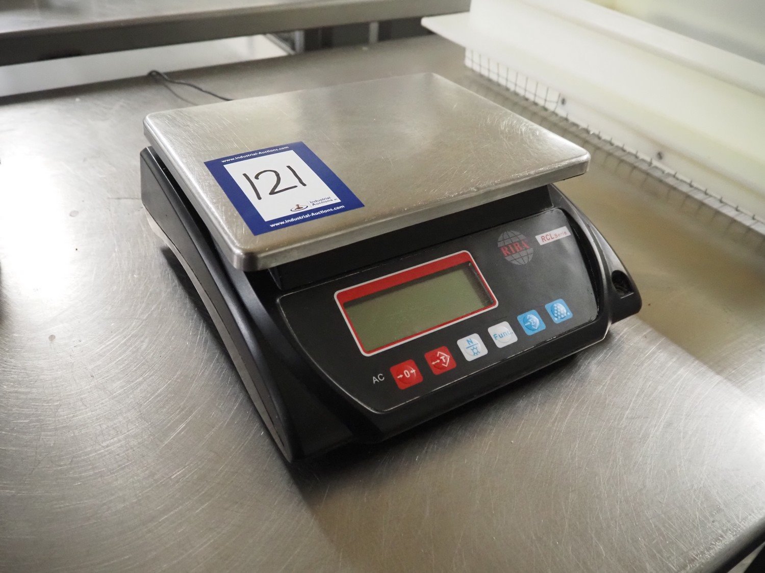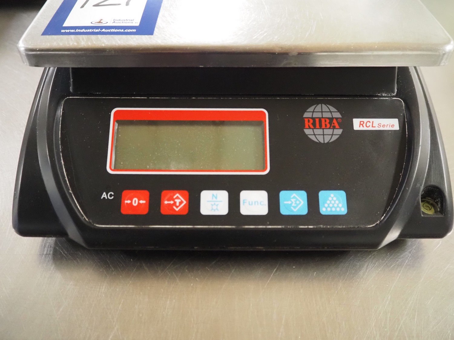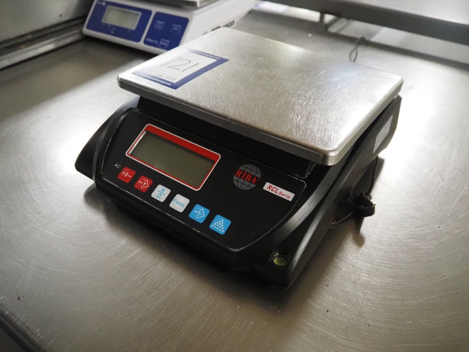 Riba weighing scale, model number: RCL-30, serial number: RIJSEM190656, capacity: 30 kg, e = 1 gram, scale: 280 mm x 200 mm, total dimensions: 300 mm x 320 mm x 120 mm.