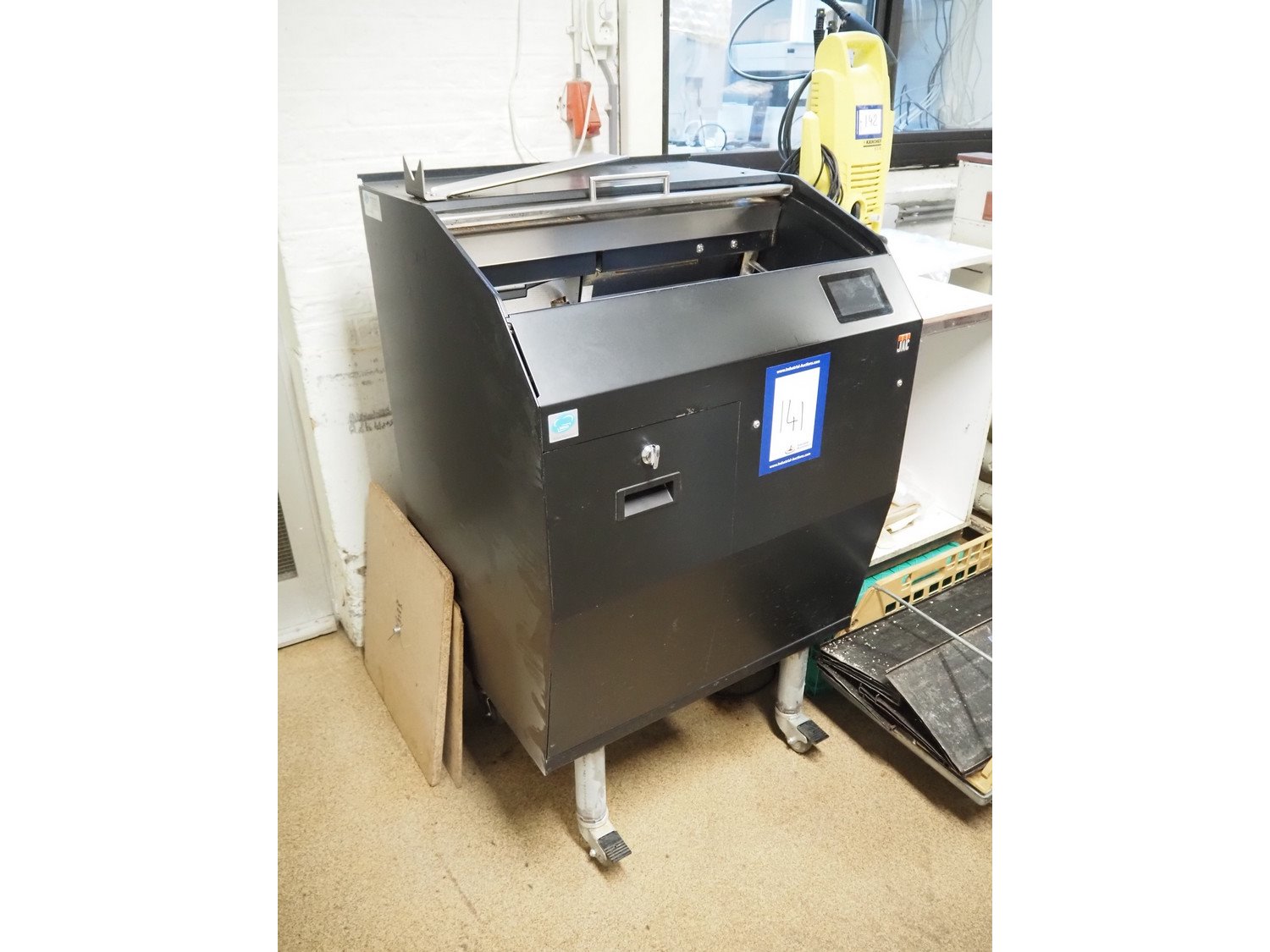 JAC mobile bread slicer, model: VMP 800 /, machine number: 22100892, year of construction: 17/02/2022, 230 V, 1 Ph, 50/60 Hz, 7 A, 0.75 kW, machine weight: 230 kg, chamber: 380 mm x 280 mm x 220 mm, total dimensions: 800 mm x 730 mm x 1300 mm. Including extra knives.