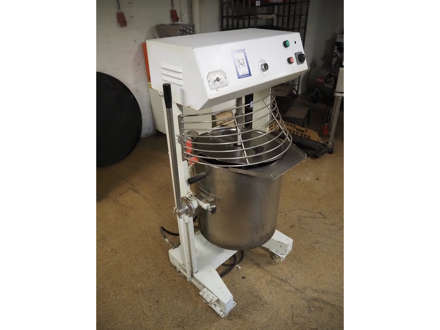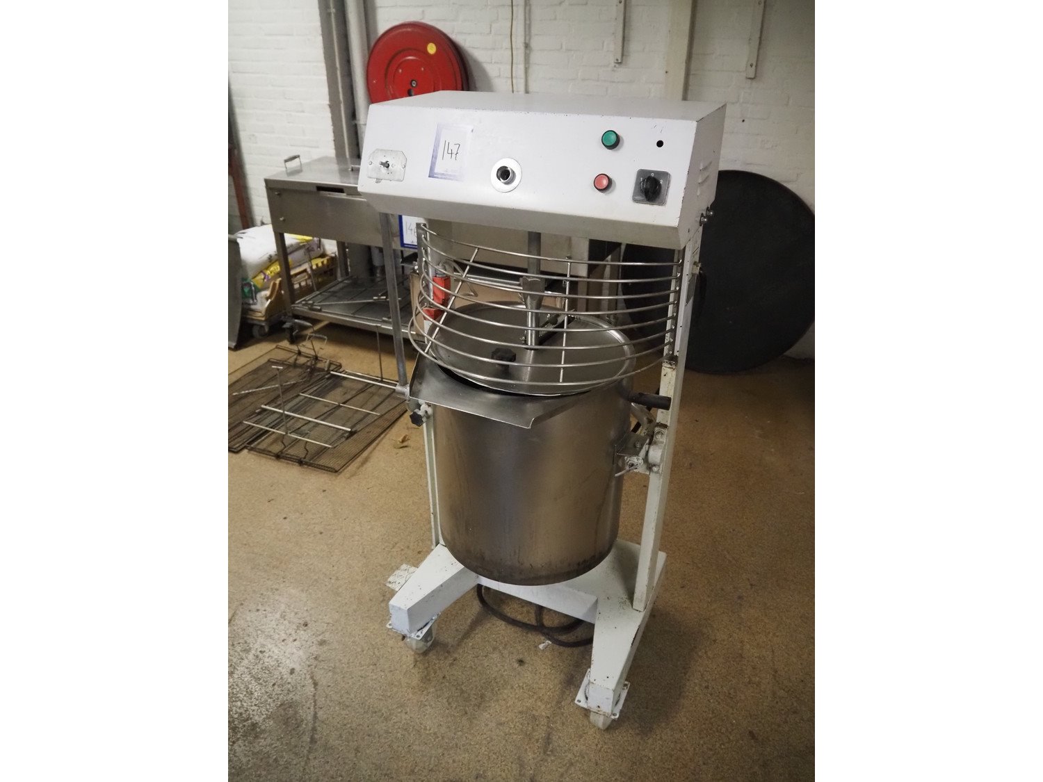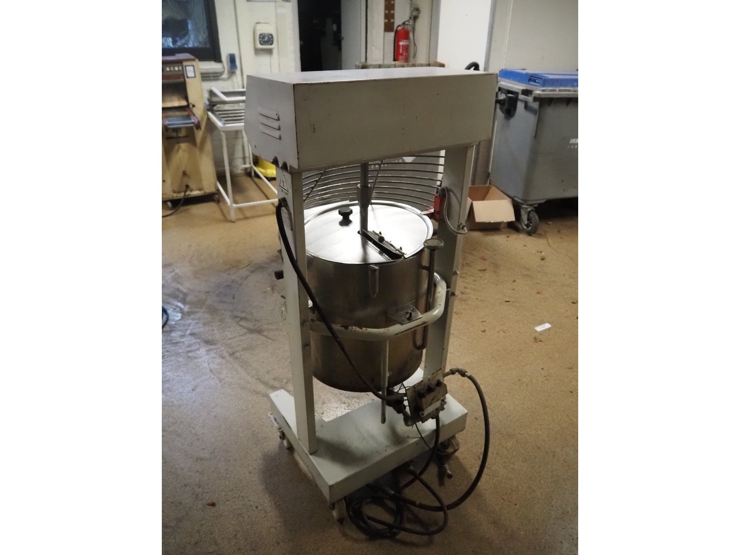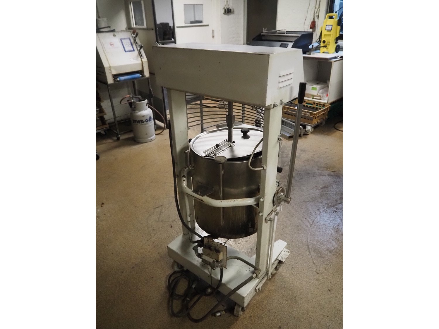 DE DANIELI s.n.c. mobile mixing and cooking machine, type: C502G, serial number: 2201, 380 V, 3 Ph, 50 Hz, 0.4 kW, s/s tub, volume: 50 liter, dimensions: Ø 420 mm x 400 mm, total dimensions: 700 mm x 600 mm x 1420 mm.