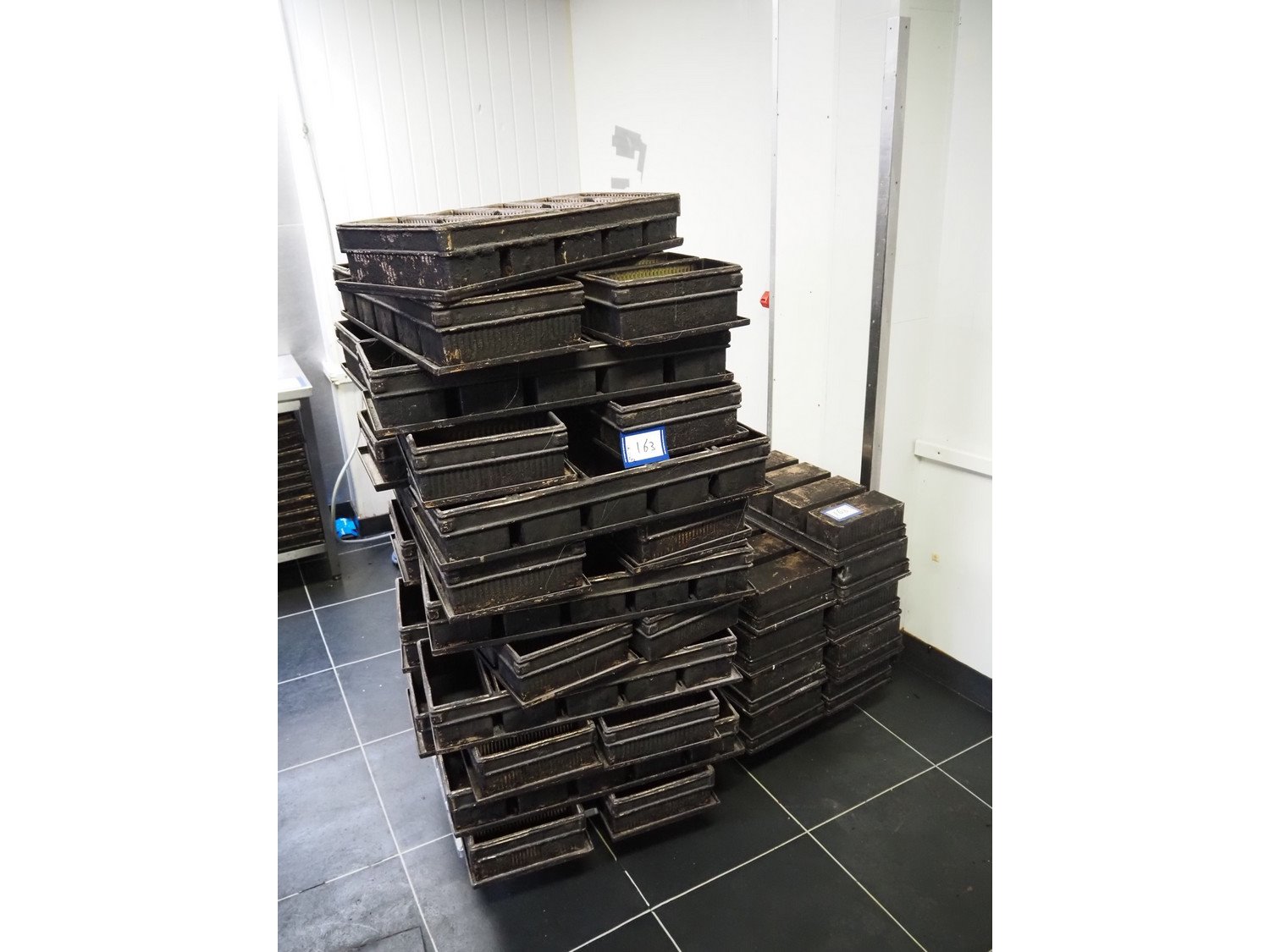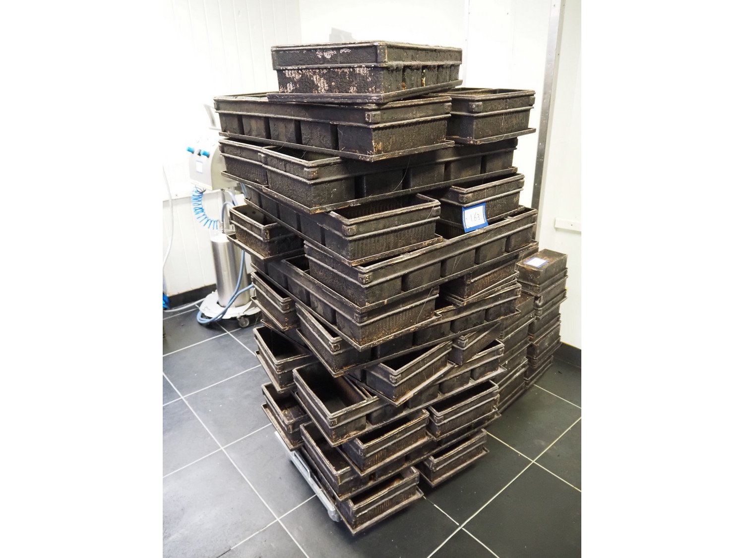Large amount of baking forms, inside dimensions: (5x) 250 mm x 120 mm x 120 mm, total dimensions: (1x) 800 mm x 800 mm x 1620, (1x) 800 mm x 800 mm x 750 mm, (1x) 800 mm x 800 mm x 380 mm.