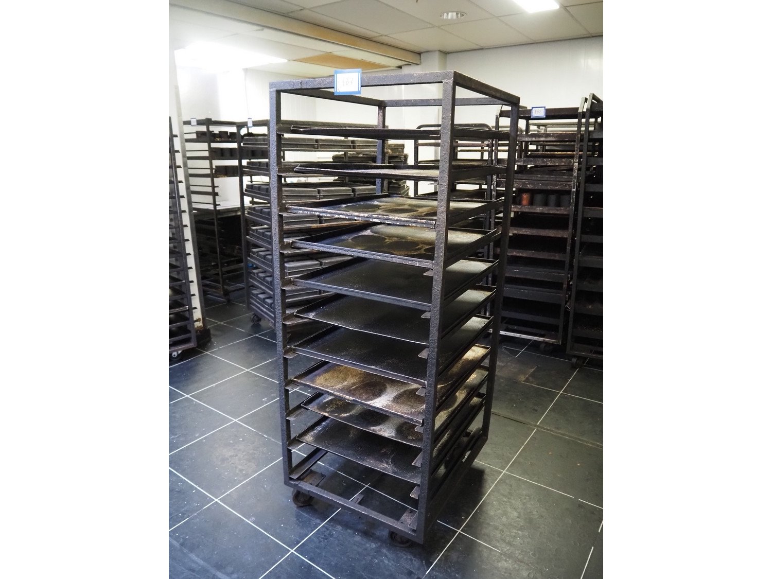2 trolleys with plates, 11 floors, floor dimensions: (11x) 800 mm x 610 mm, total dimensions: (2x) 900 mm x 680 mm x 1780 mm.
