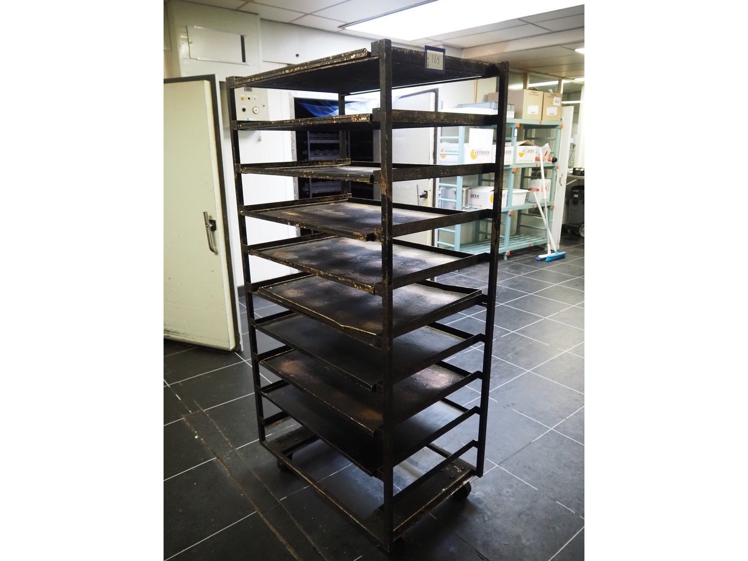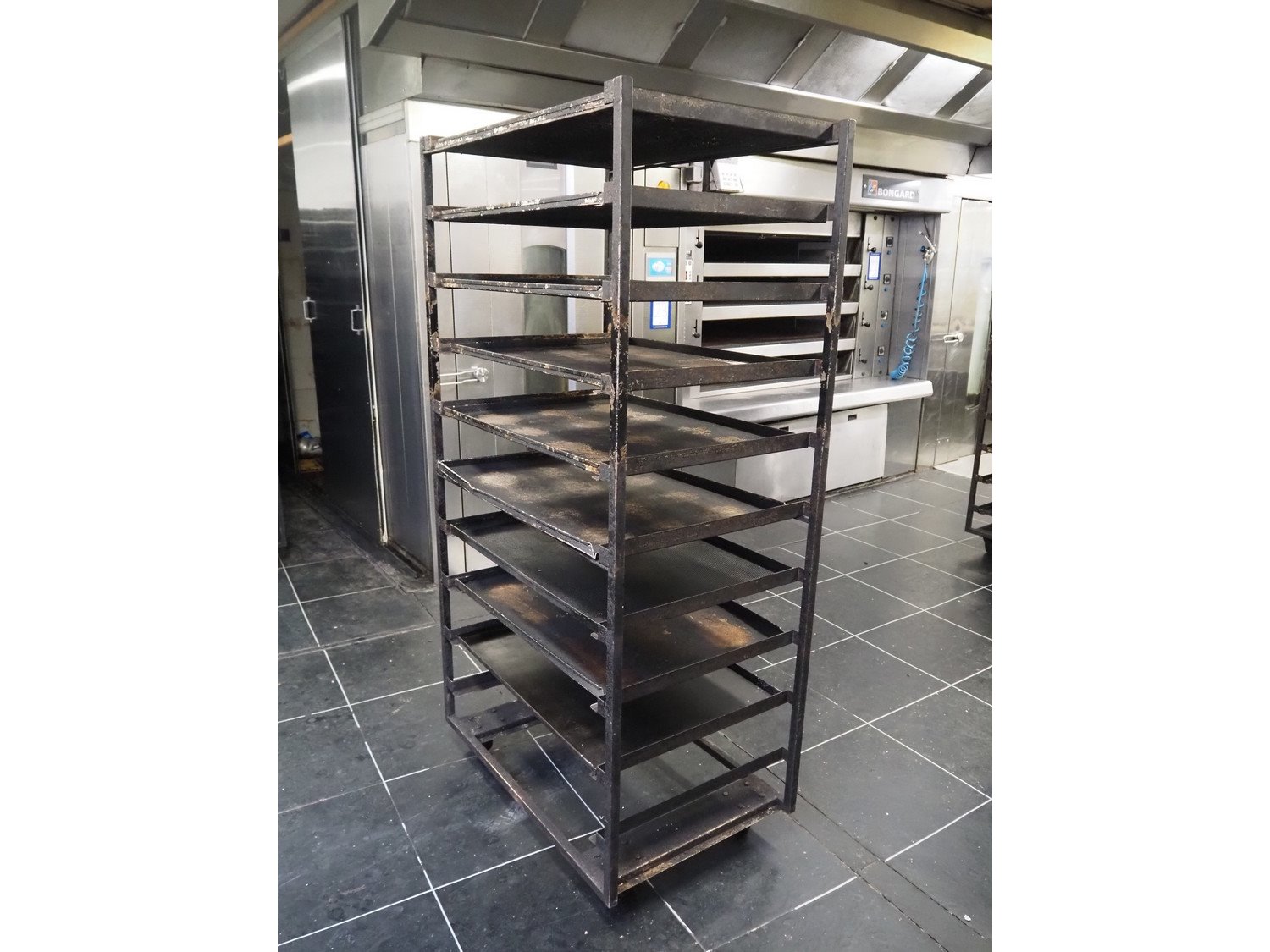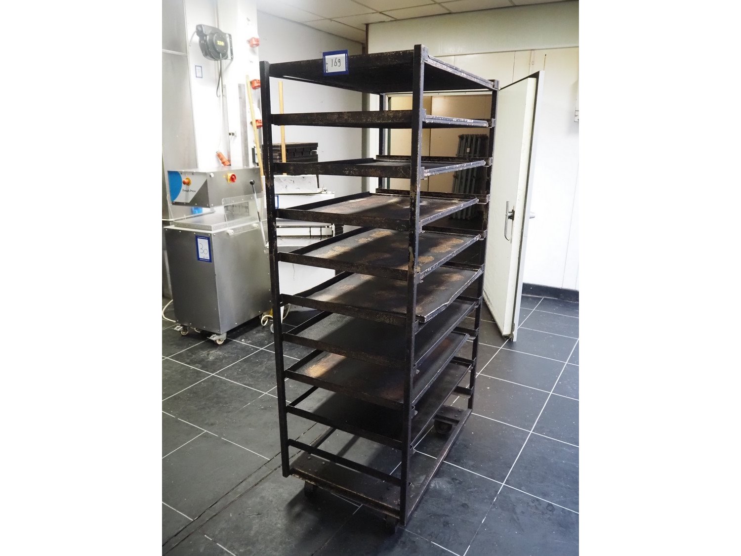 3 trolleys with plates, 10 floors, floor dimensions: (10x) 780 mm x 590 mm, total dimensions: (3x) 935 mm x 610 mm x 1840 mm.