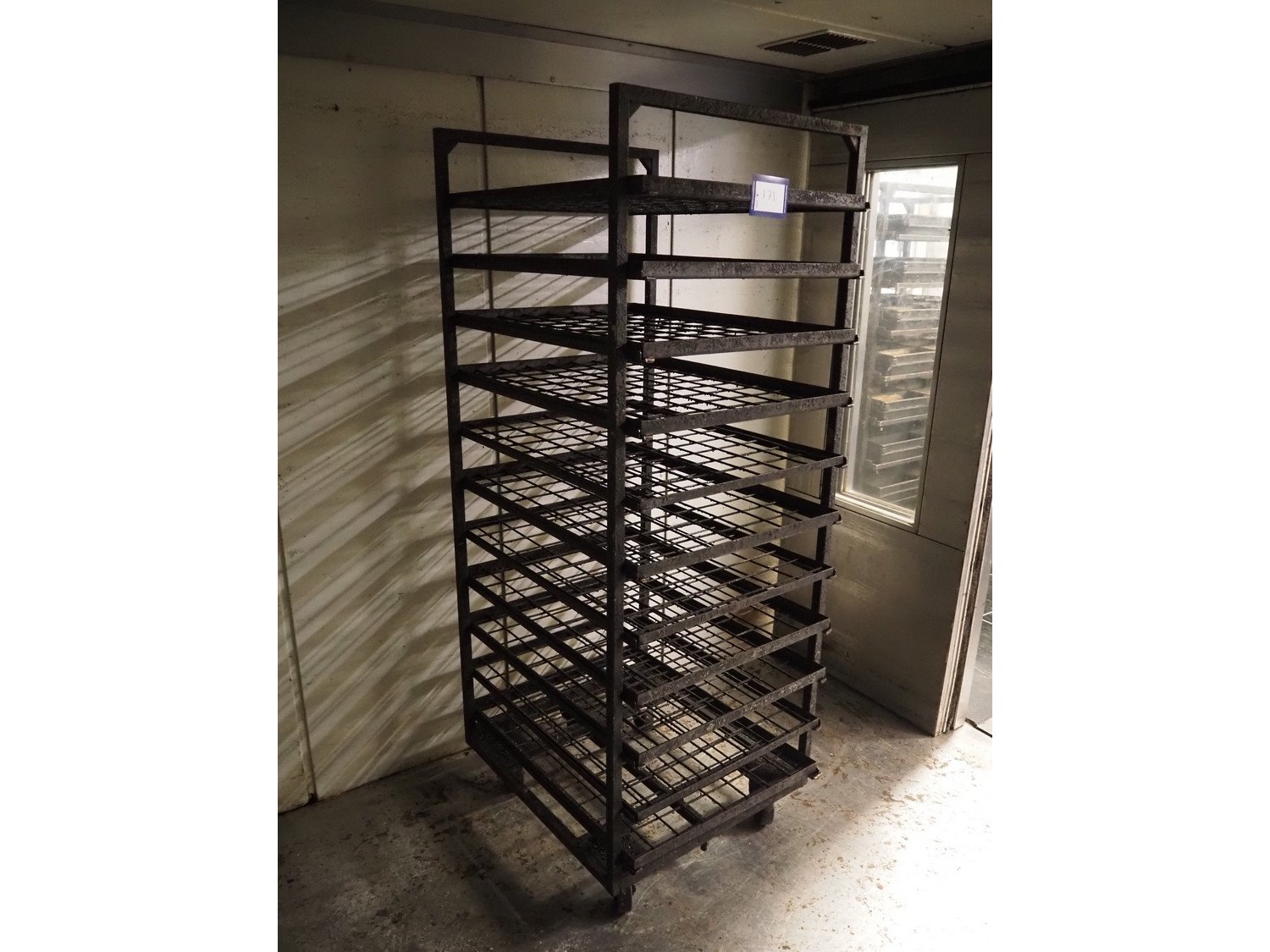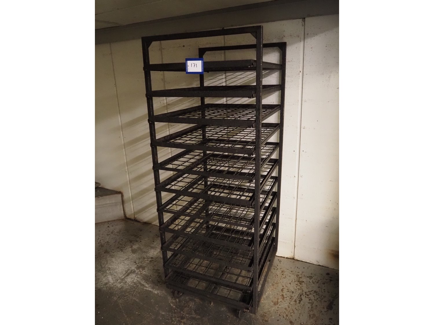 Trolley with plates, 11 floors, floor dimensions: (11x) 790 mm x 590 mm, total dimensions: 810 mm x 670 mm x 1760 mm.