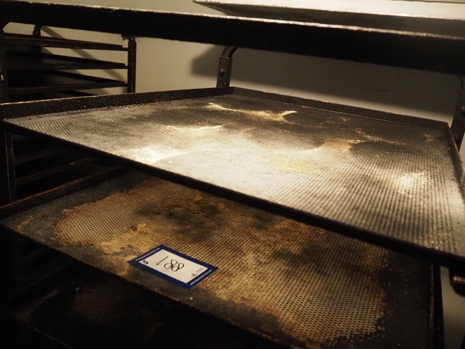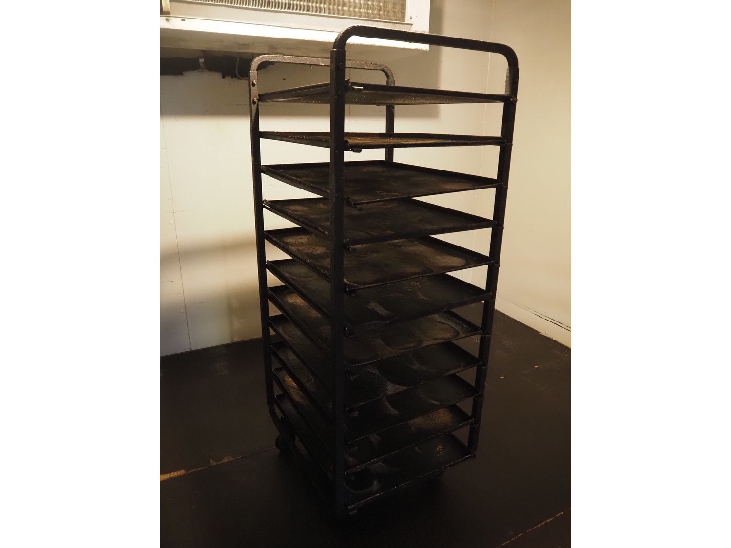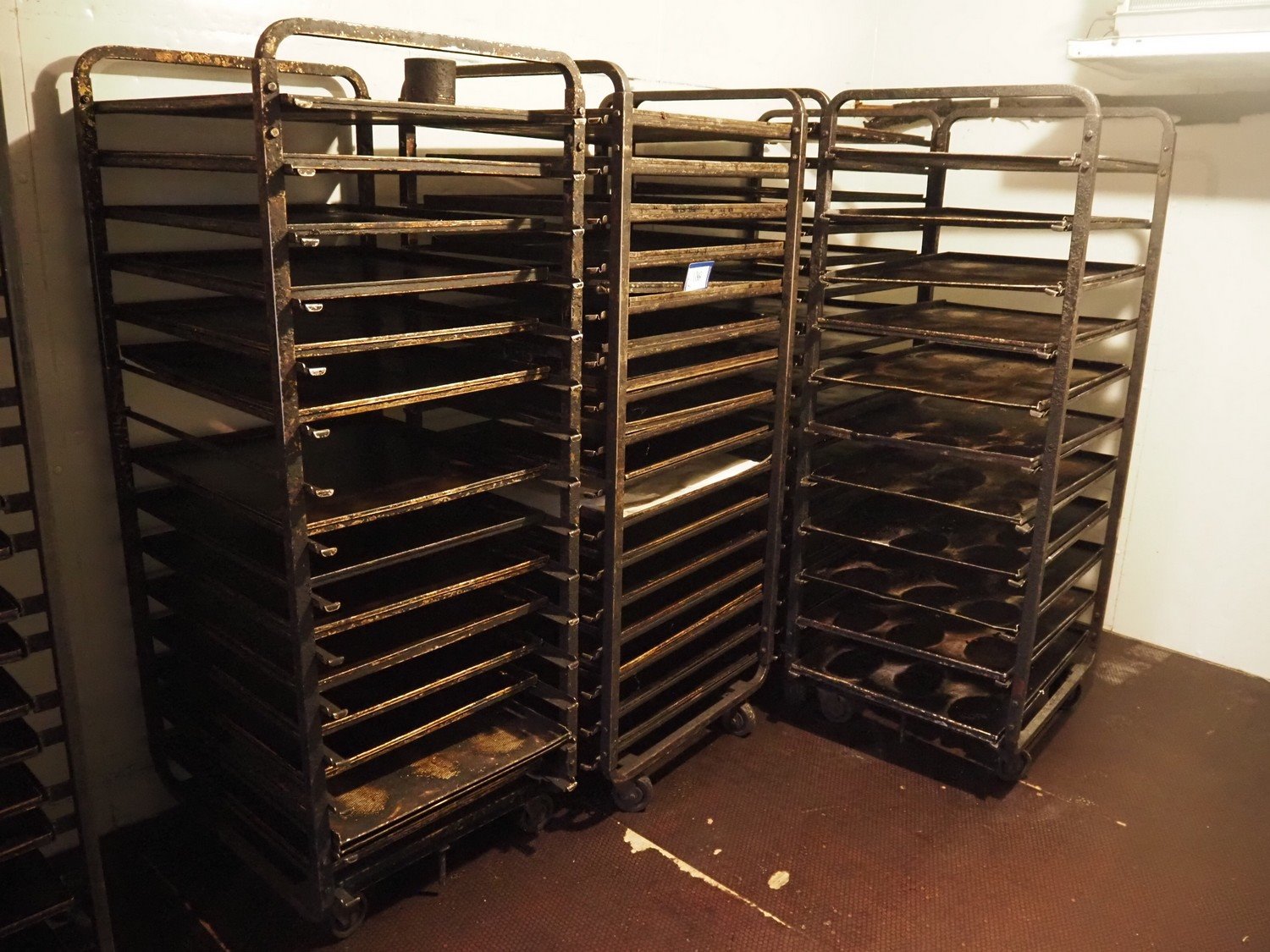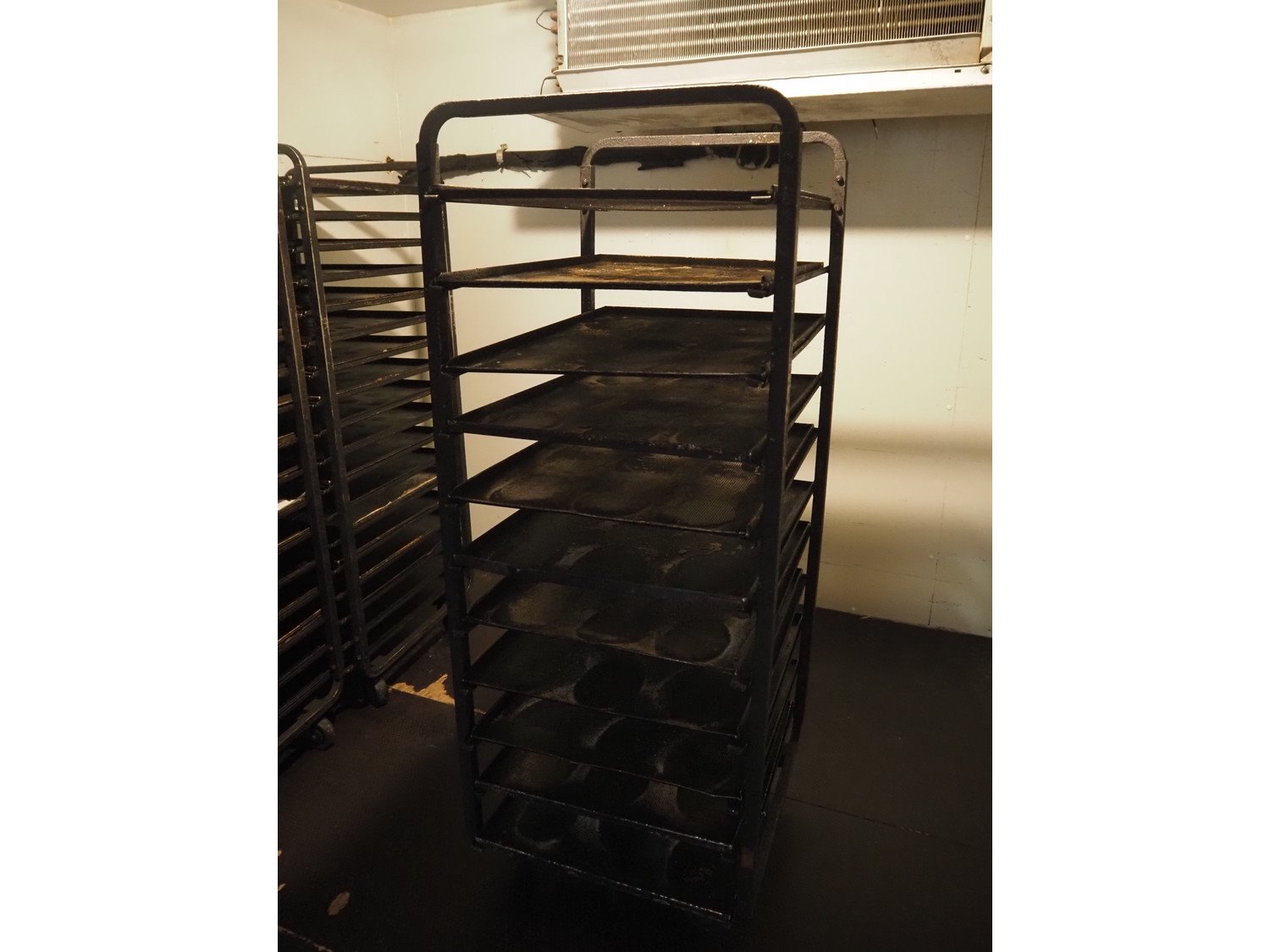 4 trolleys with plates, 18 floors, floor dimensions: (18x) 780 mm x 600 mm, total dimensions: (4x) 820 mm x 670 mm x 1760 mm.