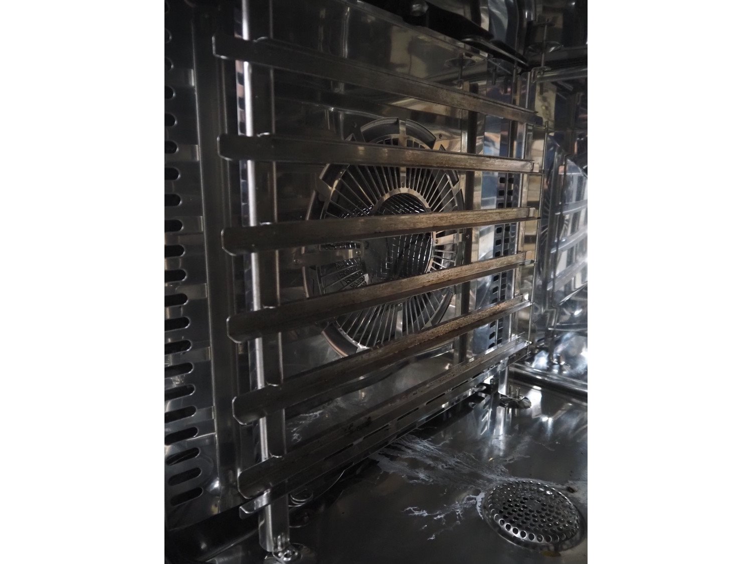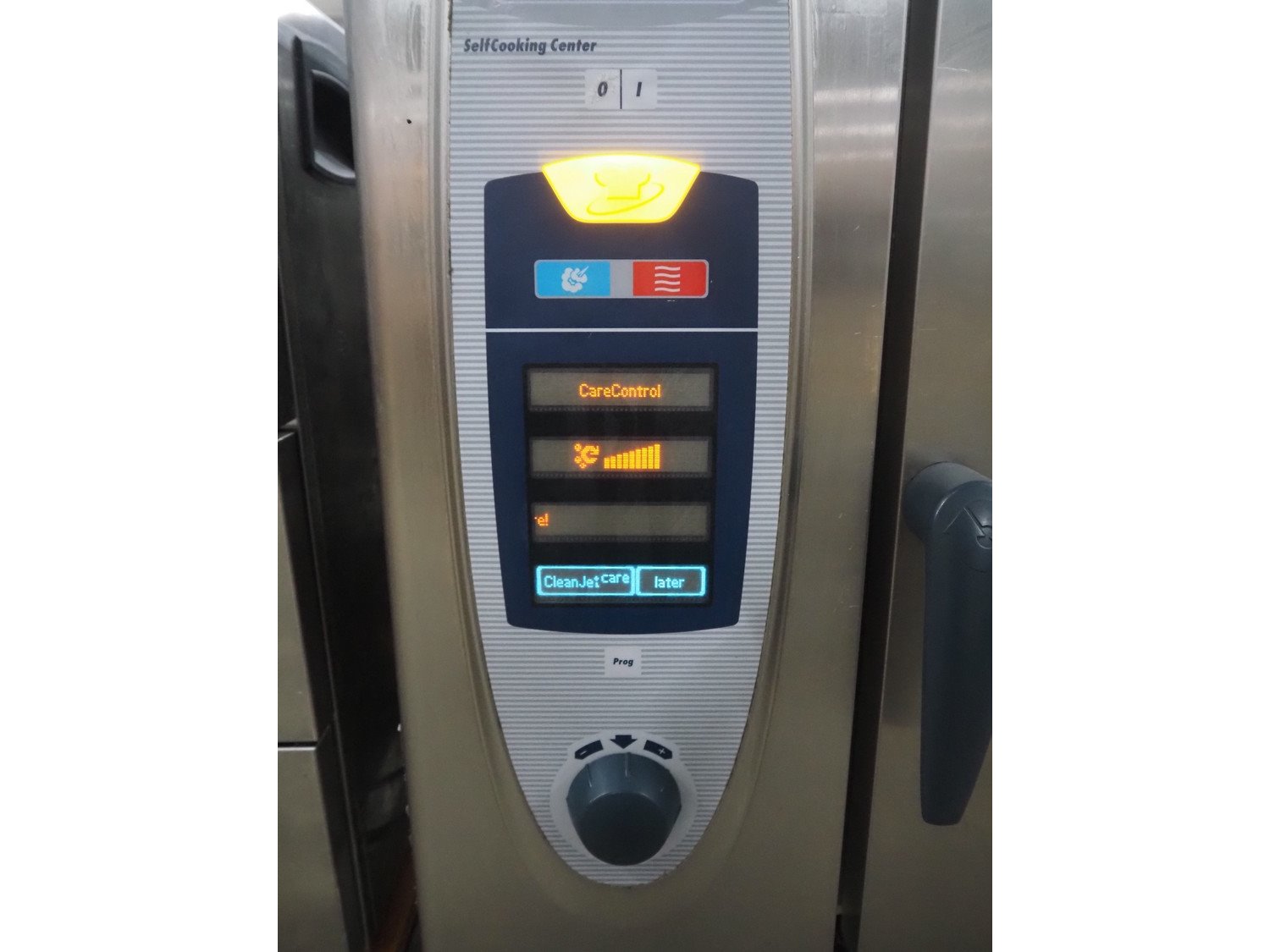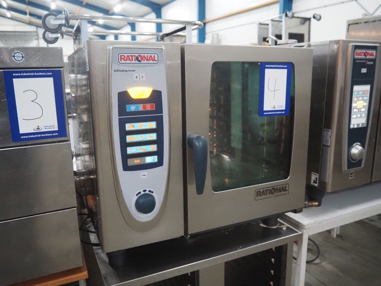 Rational combi steamer on s/s frame, type: SCC61 E, serial number: E61SG09032174480, year of construction: 2009 230 V, 11 kW, electric heated, 6 floors, floor dimensions: 540 mm x 330 mm, total dimensions: 850 mm x 800 mm x 1500 mm.