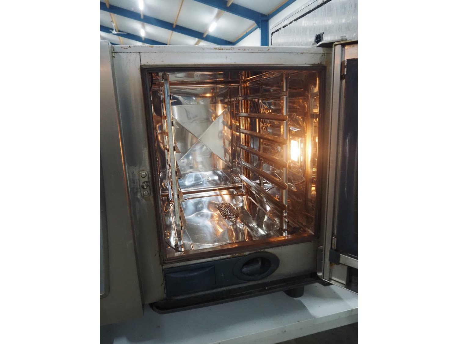 Rational combi steamer, type: 61G, serial number: G61SH15022446880, gas heated, 6 floors, floor dimensions: (6x) 540 mm x 330 mm, total dimensions: 850 mm x 800 mm x 800 mm.
