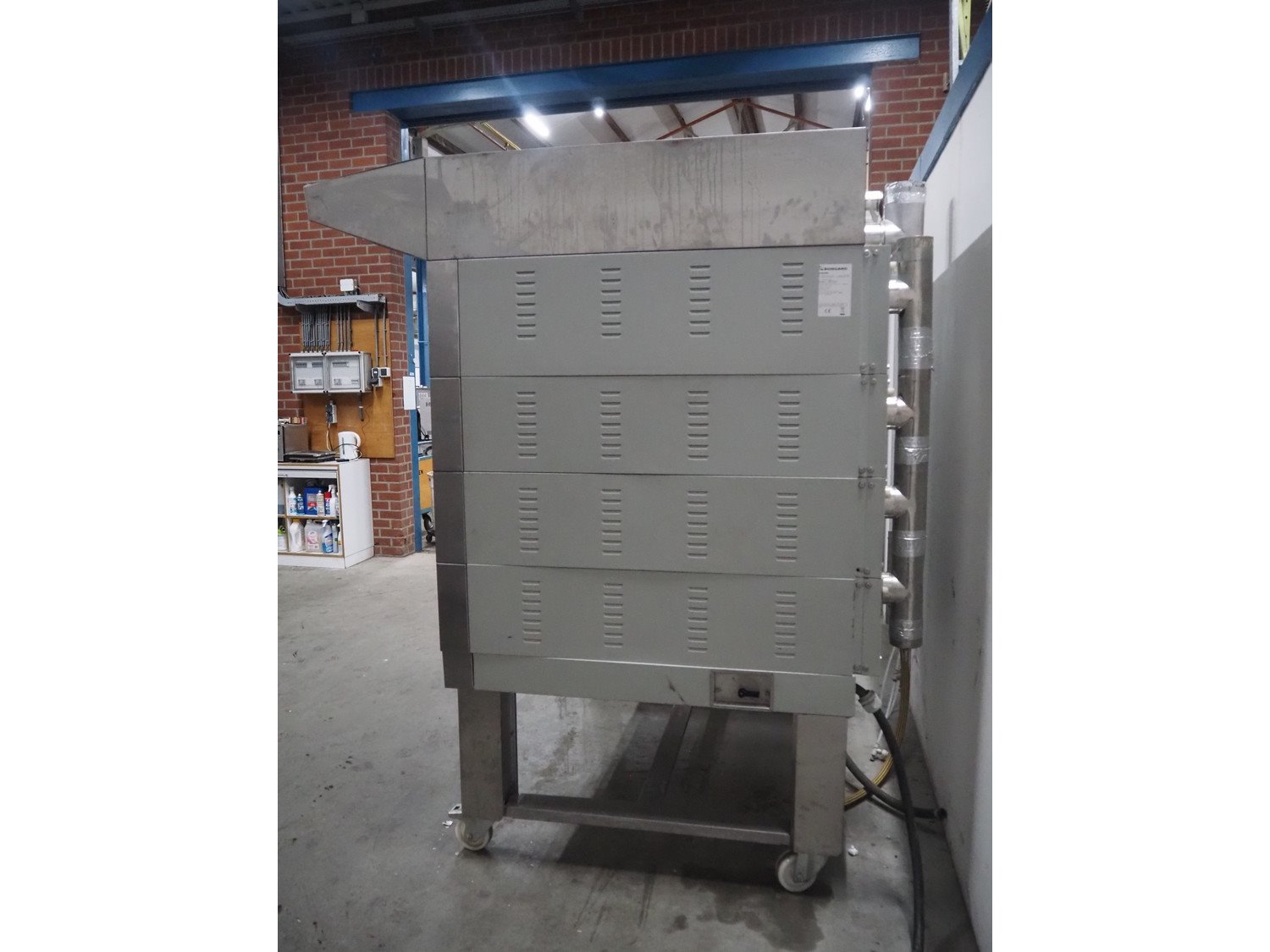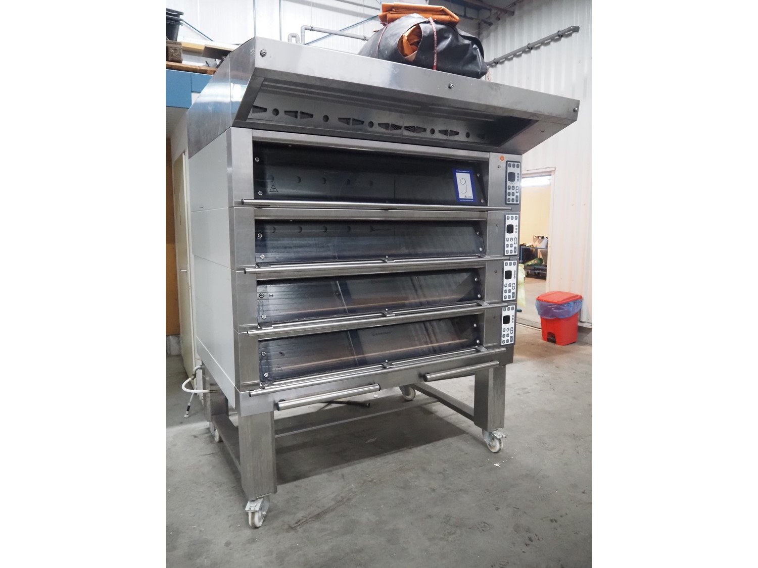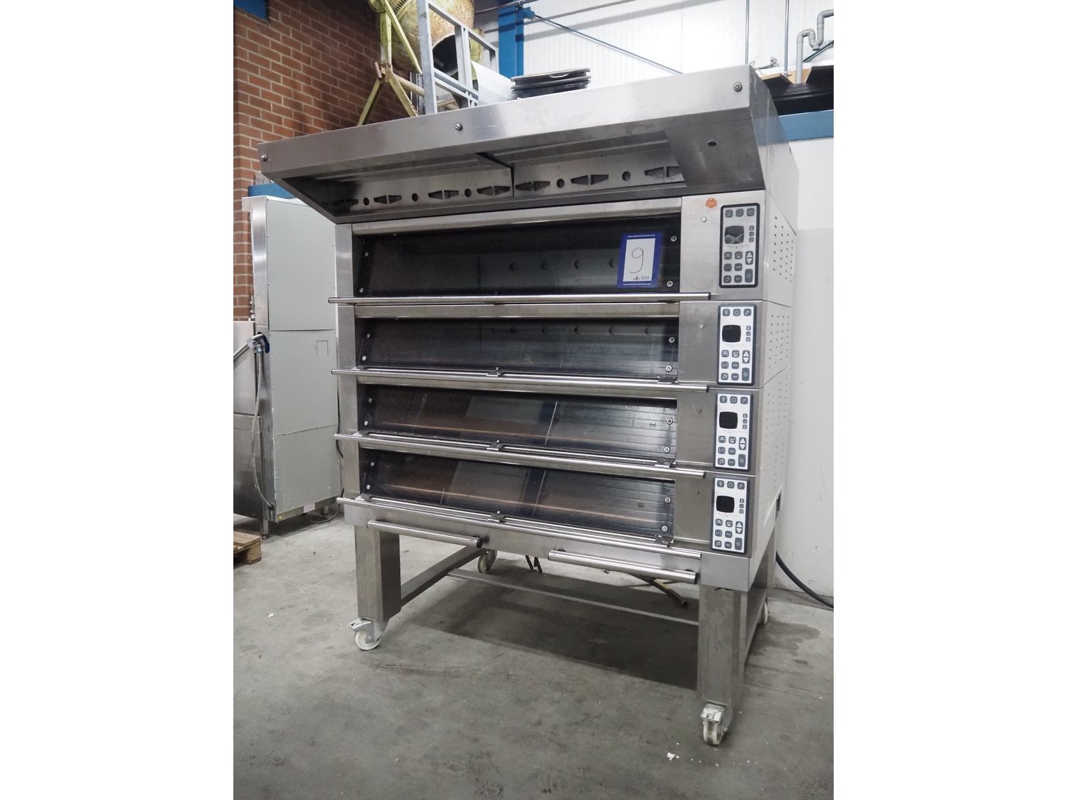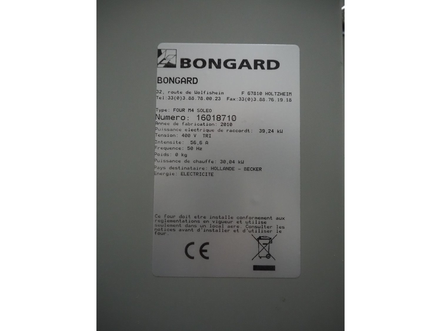 Bongard mobile deck oven, type: FOUR M4 SOLEO, serial number: 16018709, year of construction: 2010, 400 V, 3 Ph, 50 Hz, 26.6 A, 39.24 kW, 4 decks, deck dimensions (4x): 1370 mm x 950 mm, total dimensions: 1720 mm x 1900 mm x 1700 mm.