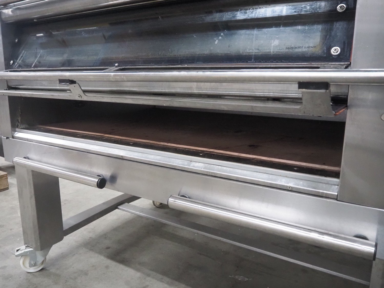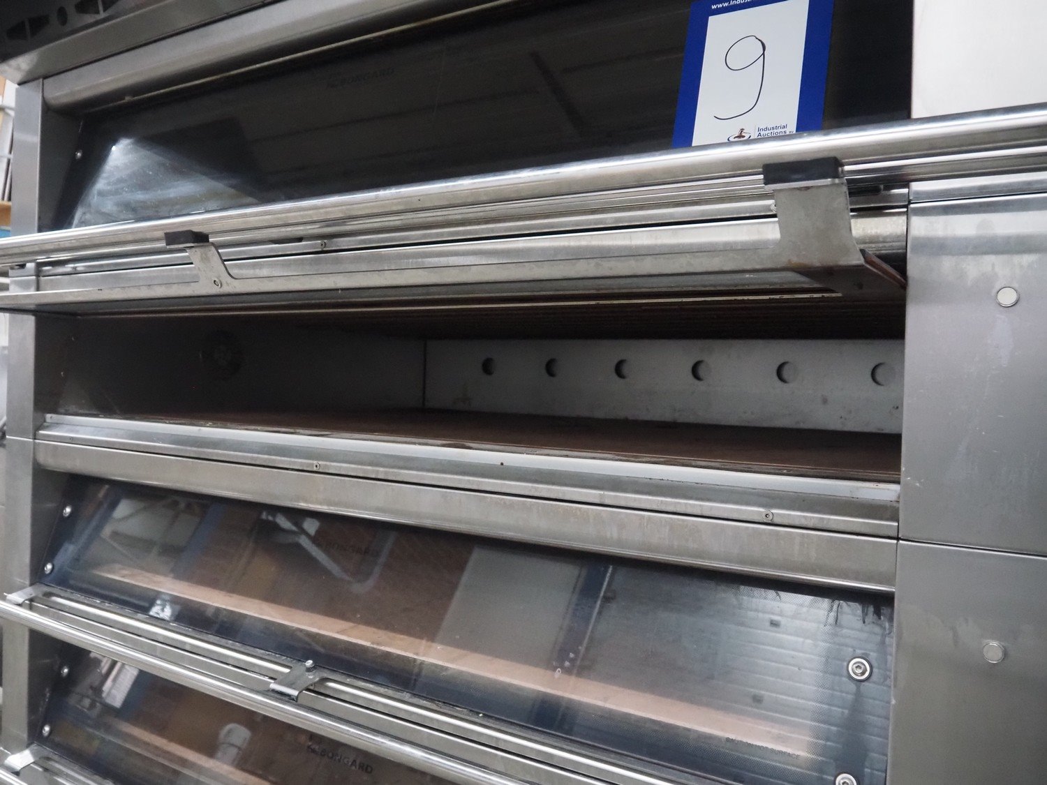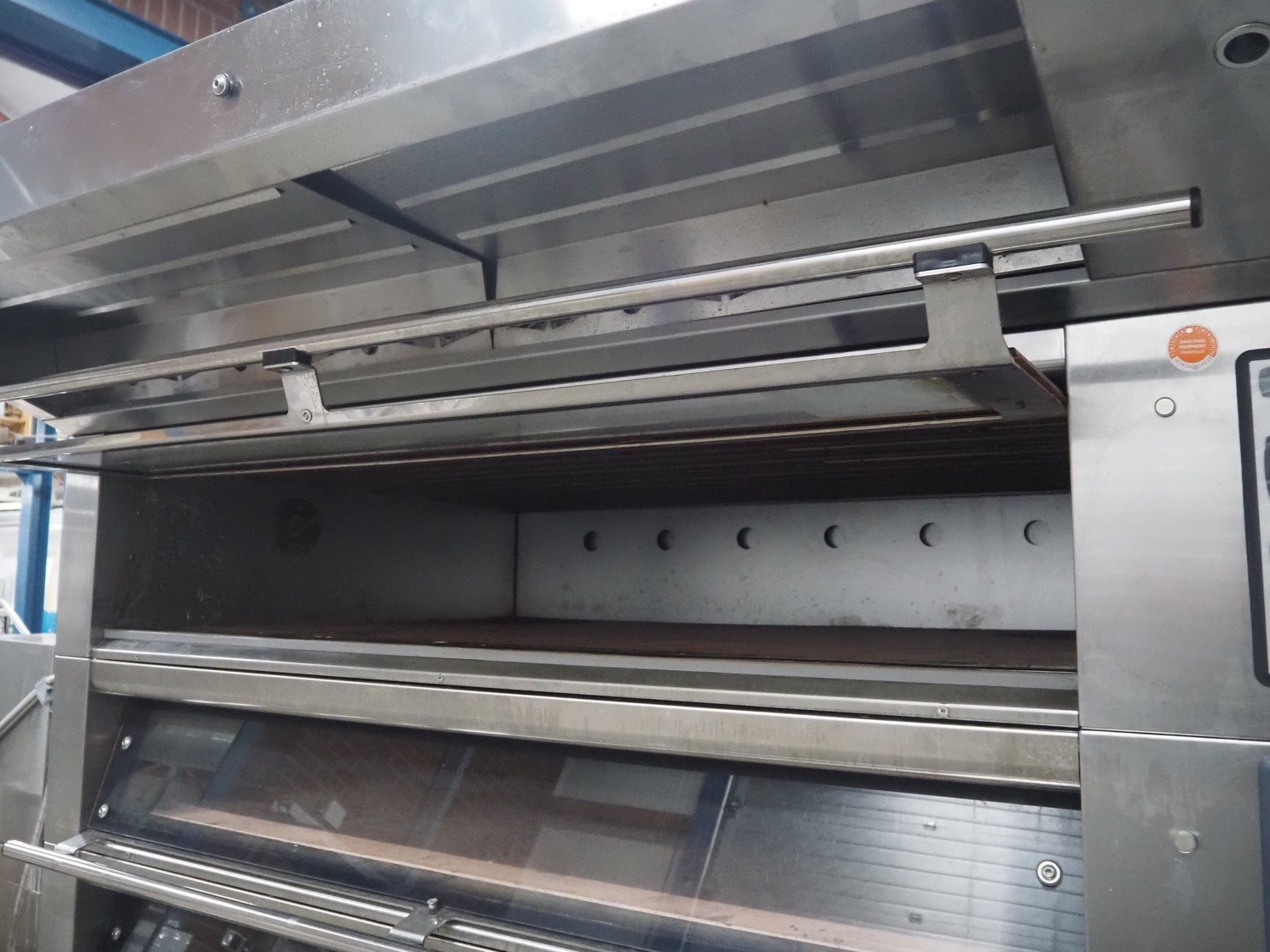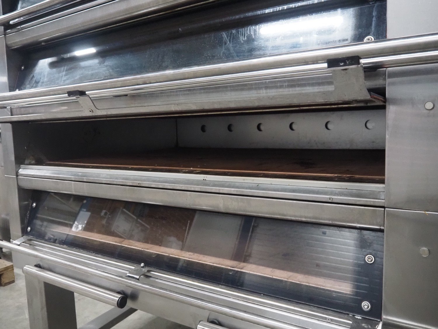Bongard mobile deck oven, type: FOUR M4 SOLEO, serial number: 16018709, year of construction: 2010, 400 V, 3 Ph, 50 Hz, 26.6 A, 39.24 kW, 4 decks, deck dimensions (4x): 1370 mm x 950 mm, total dimensions: 1720 mm x 1900 mm x 1700 mm.