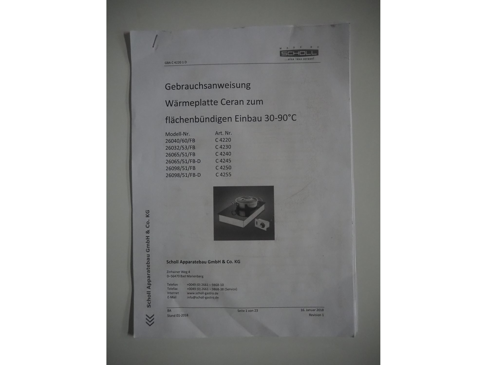 Scholl Apparatebau induction plate, type: C5110, serial number: 554325-002, 230 V, 50 Hz, 1 kW, dimensions: 600 mm x 420 mm x 100 mm.
