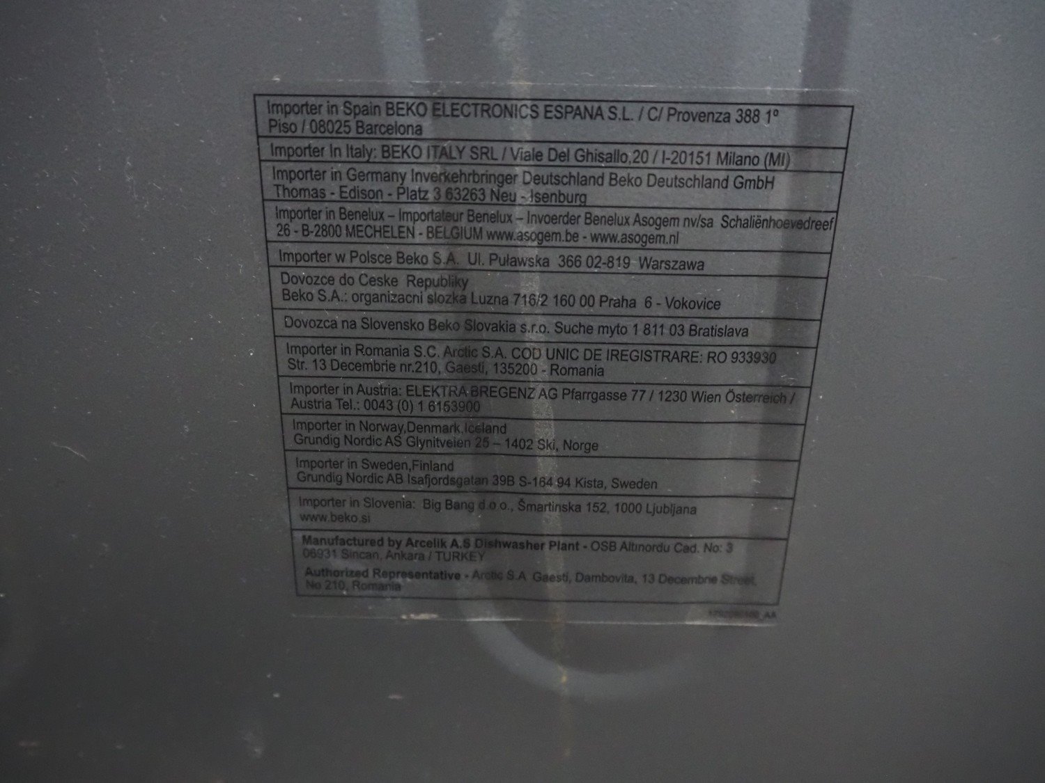 Grundig dishwasher, dimensions: 600 mm x 600 mm x 850 mm.