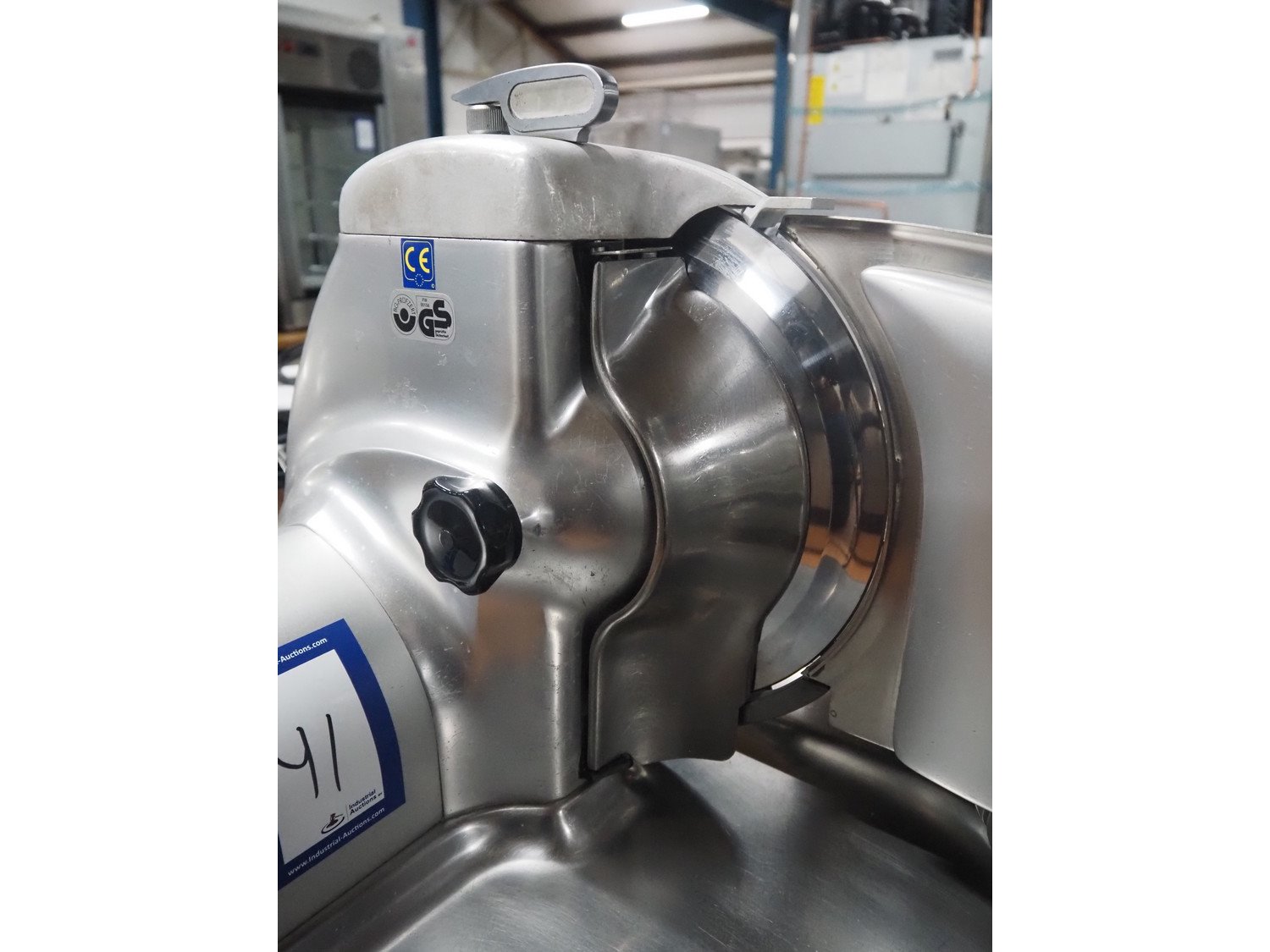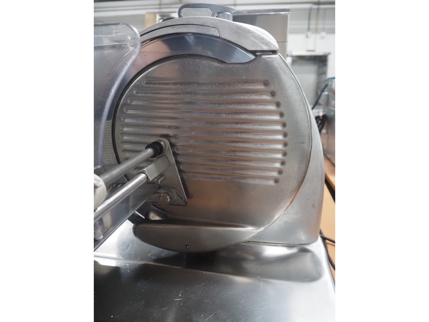 Berkel slicer, type: 834 S, number: 629834, year of construction: 1996, 230 V, 1 Ph, 50 Hz, 220 W, dimensions: 700 mm x 600 mm x 520 mm.