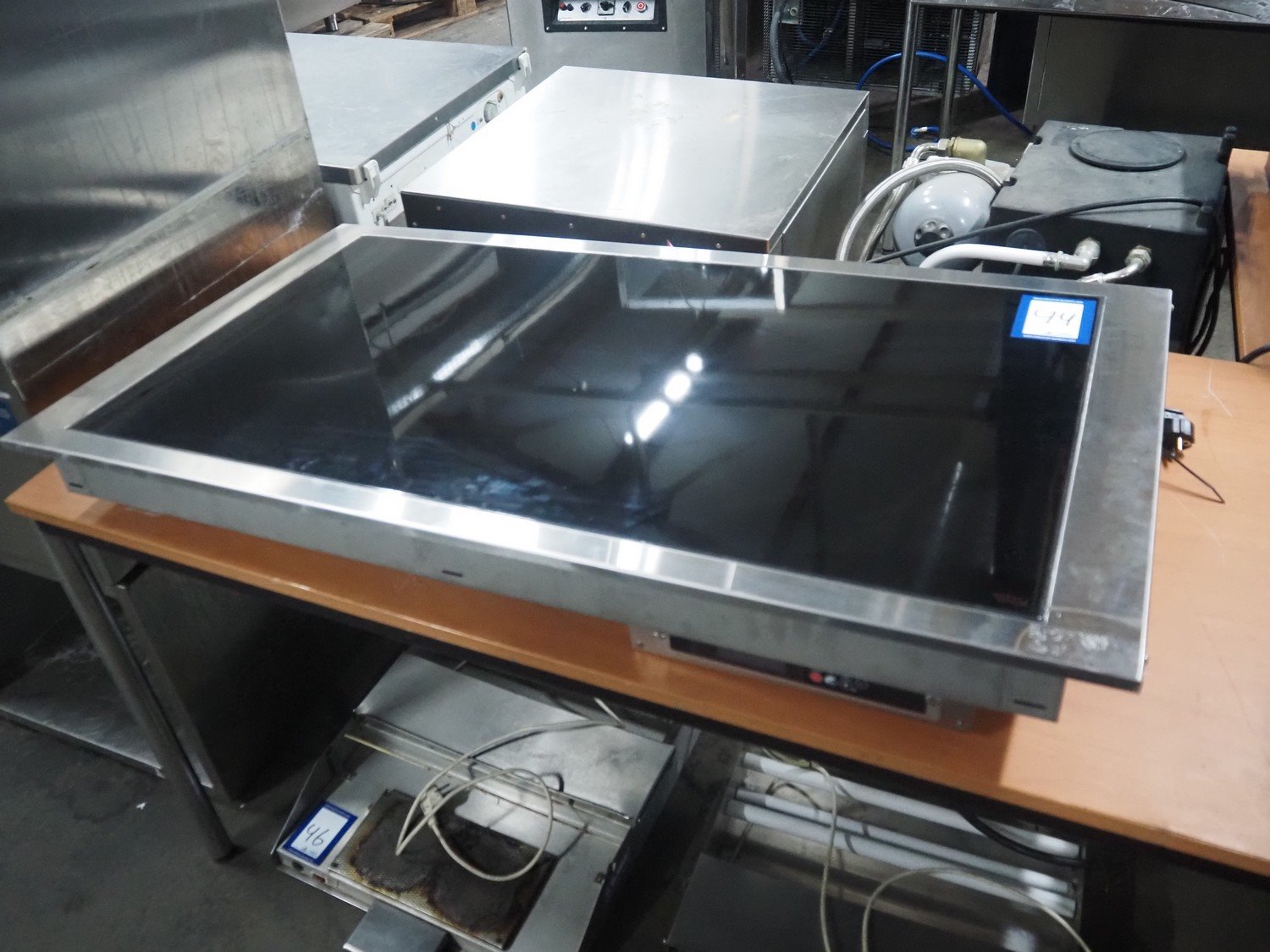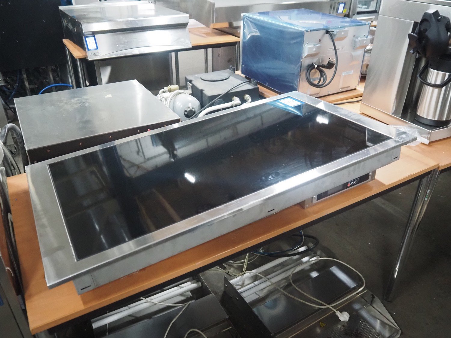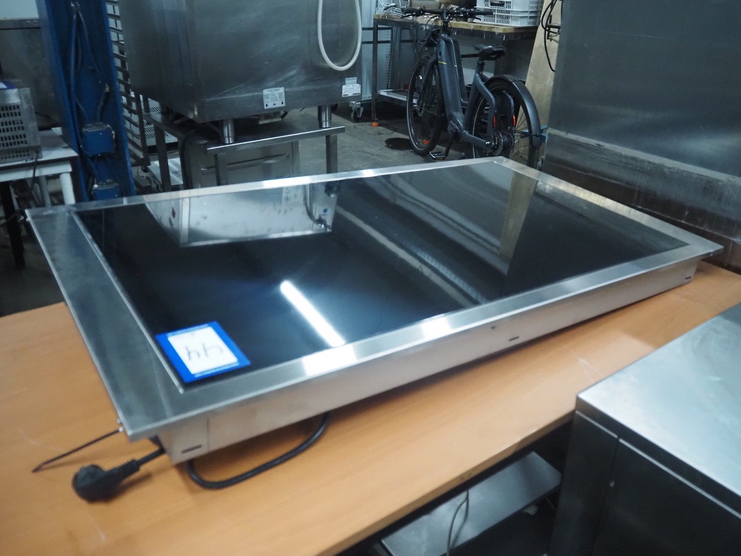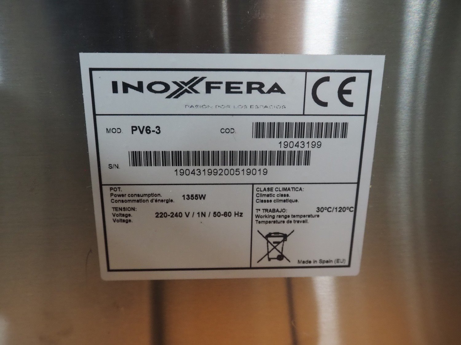 Inoxfera warming plate, model: PV6-3, serial number: 19043199200519019, 220-240 V, 1 Ph, 50-60 Hz, 1355 W, dimensions: 1120 mm x 600 mm x 170 mm.