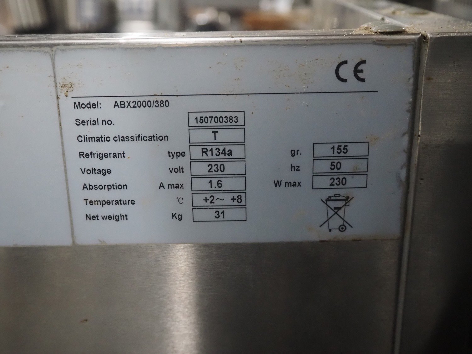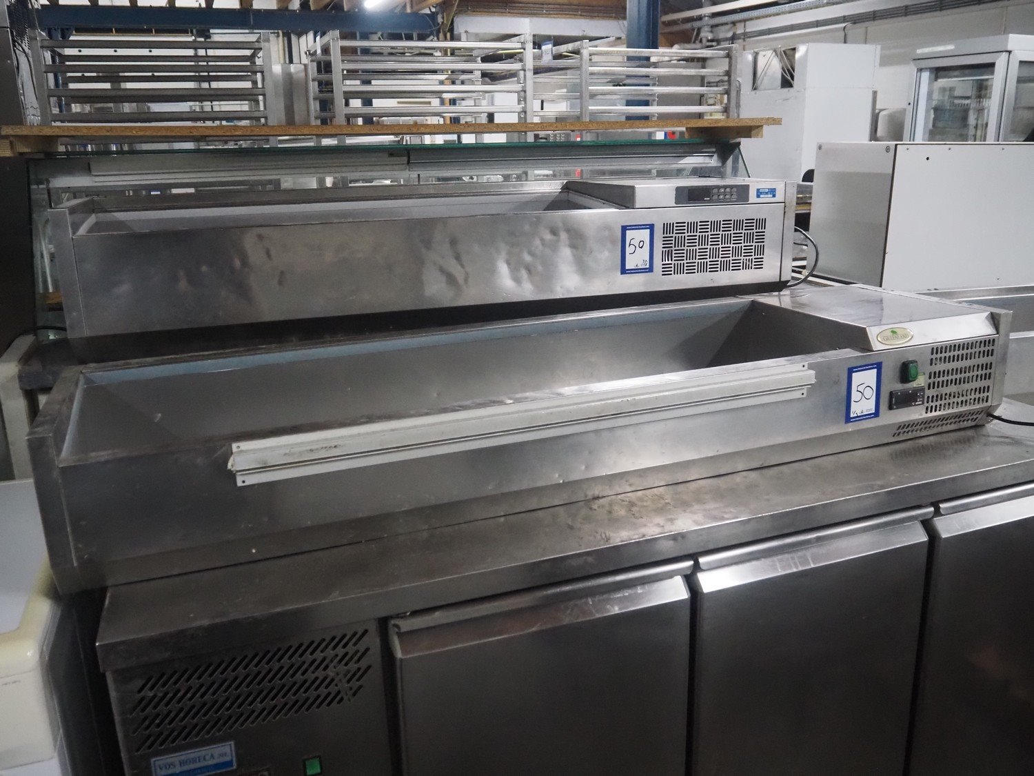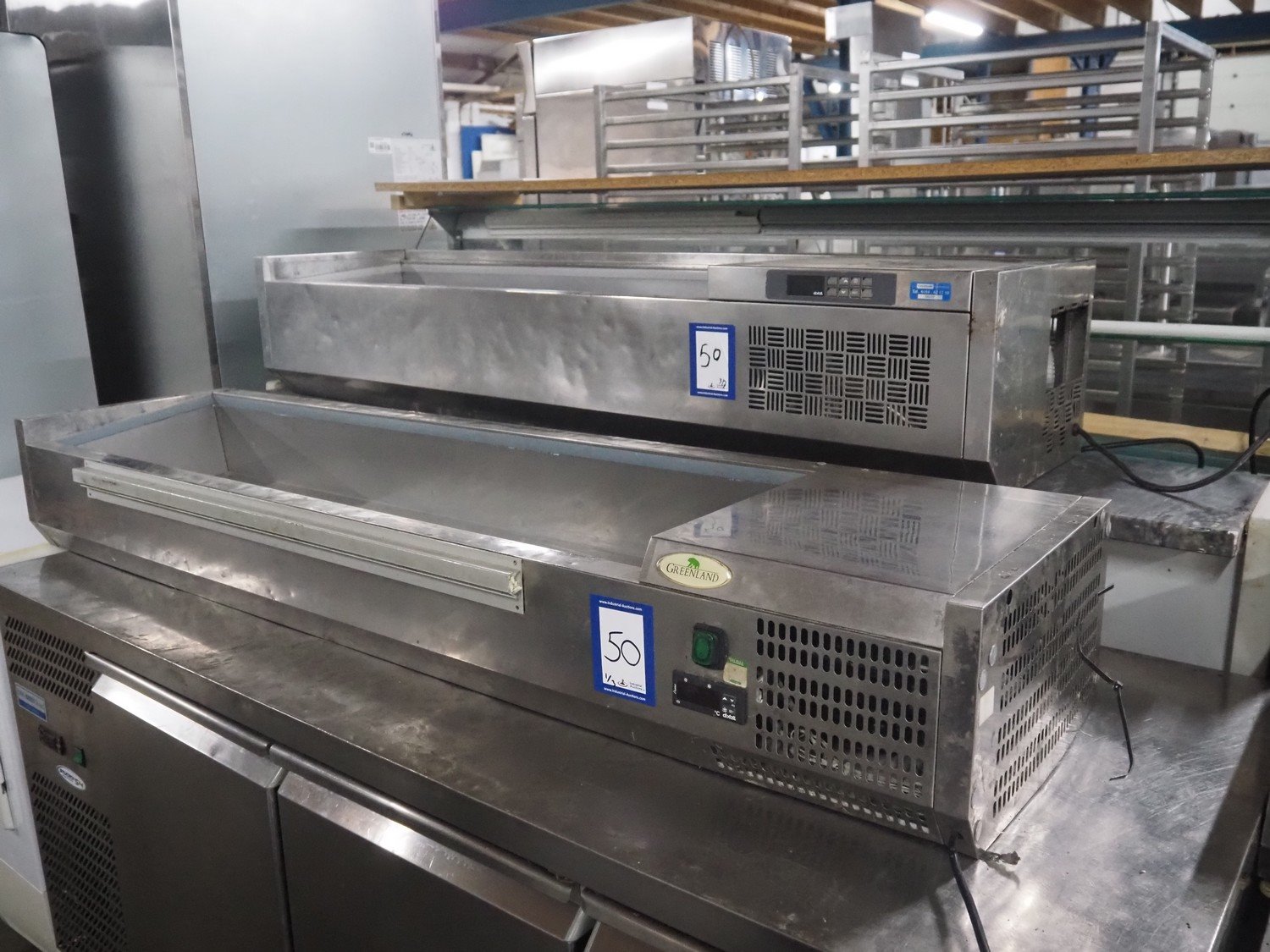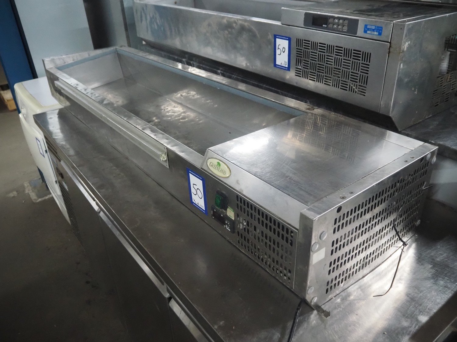 3 refrigerated showcases, (1x) Greenland showcase: model: ABX2000/380, serial number: 150700383, 230 V, 50 Hz, 1.6 A, 230 W, refrigerant: R134a/0.155 kg, weight: 31 kg, inside dimensions: 1250 mm x 300 mm x 160 mm, total dimensions: 1600 mm x 400 mm x 230 mm, (1x) Arex showcase, type: Yp14/6NL, serial number: 041905864, 220-240 V, 50 Hz, 1.8 A, 328 W, refrigerant: R452a/0.190 kg, inside dimensions: 1030 mm x 300 mm x 200 mm, total dimensions: 1450 mm x 400 mm x 260 mm, (1x) Maxxfrost showcase, inside dimensions: 1600 mm x 320 mm x 180 mm, total dimensions: 1600 mm x 320 mm x 180 mm, total dimensions: 2000 mm x 400 mm x 250 mm.