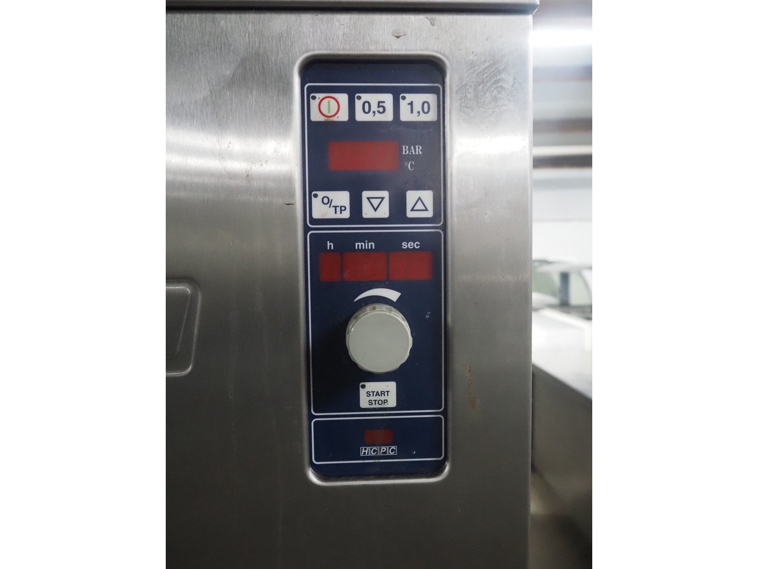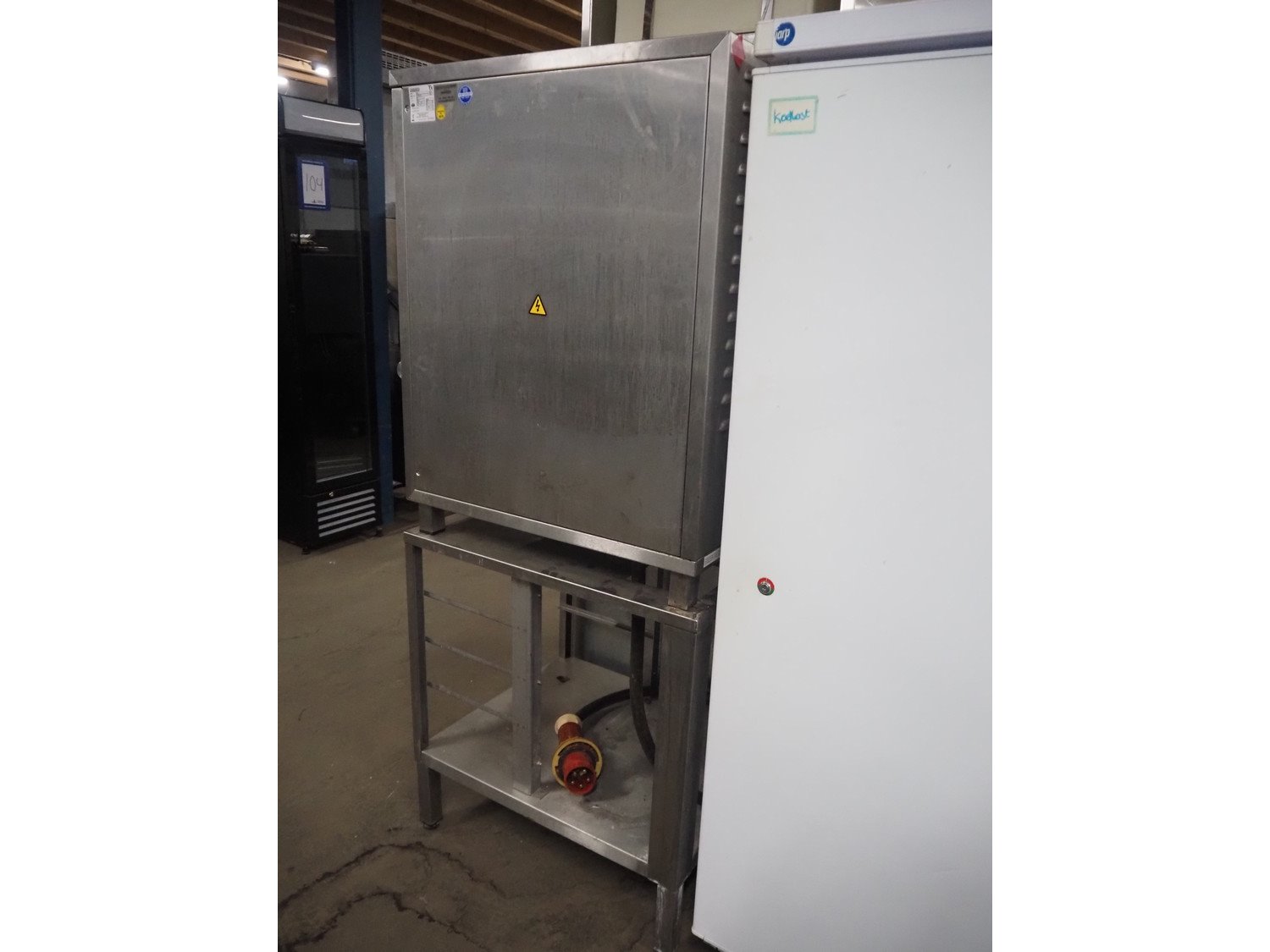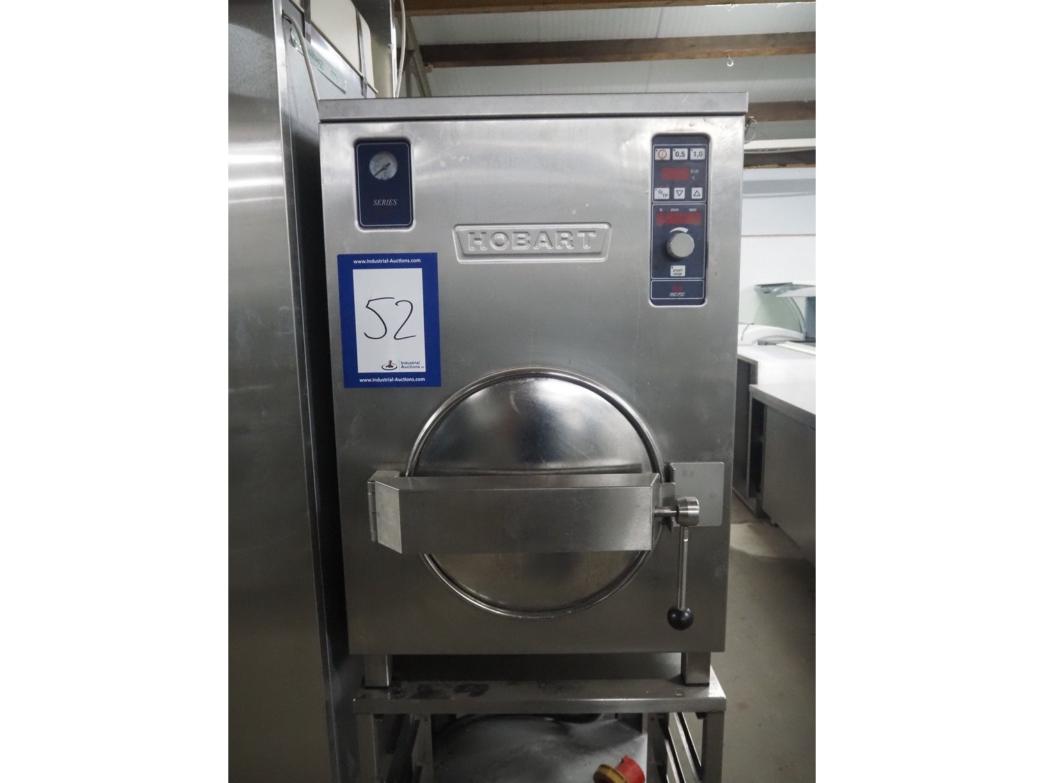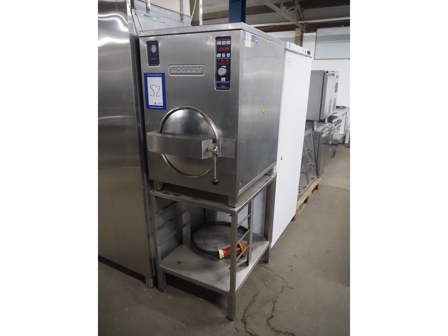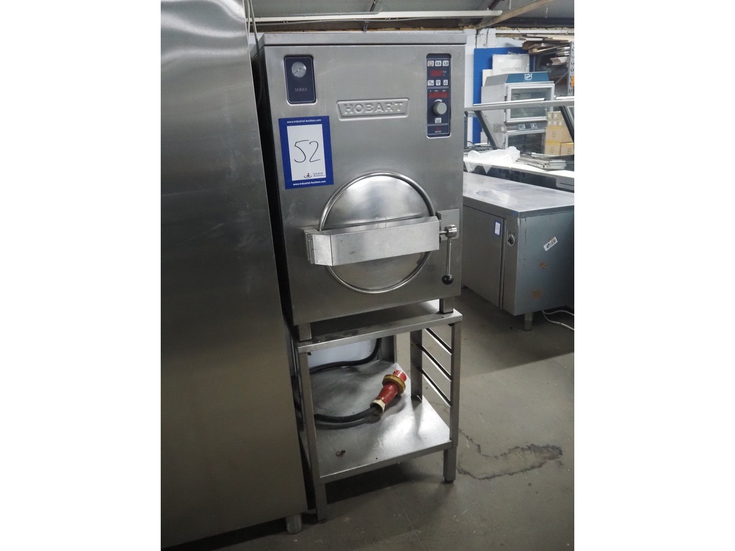 Hobart high speed cooker, model: 305G, serial number: 97-0205-236, year of construction: 2012, 400 V, 3 Ph, 50/60 Hz, 38.7 A, 26.7 kW, 4 floors, floor dimensions: 540 mm x 320 mm, inside dimensions: Ø 380 mm x 620 mm, total dimensions: 830 mm x 600 mm x 1690 mm.