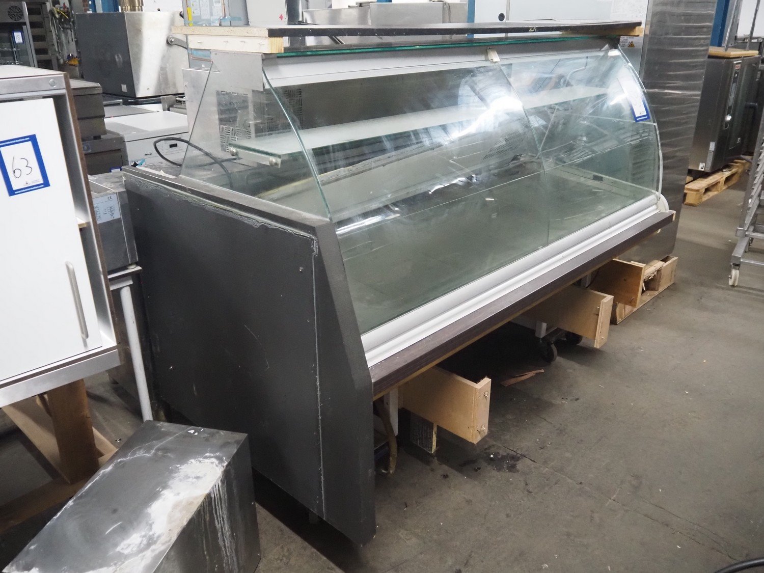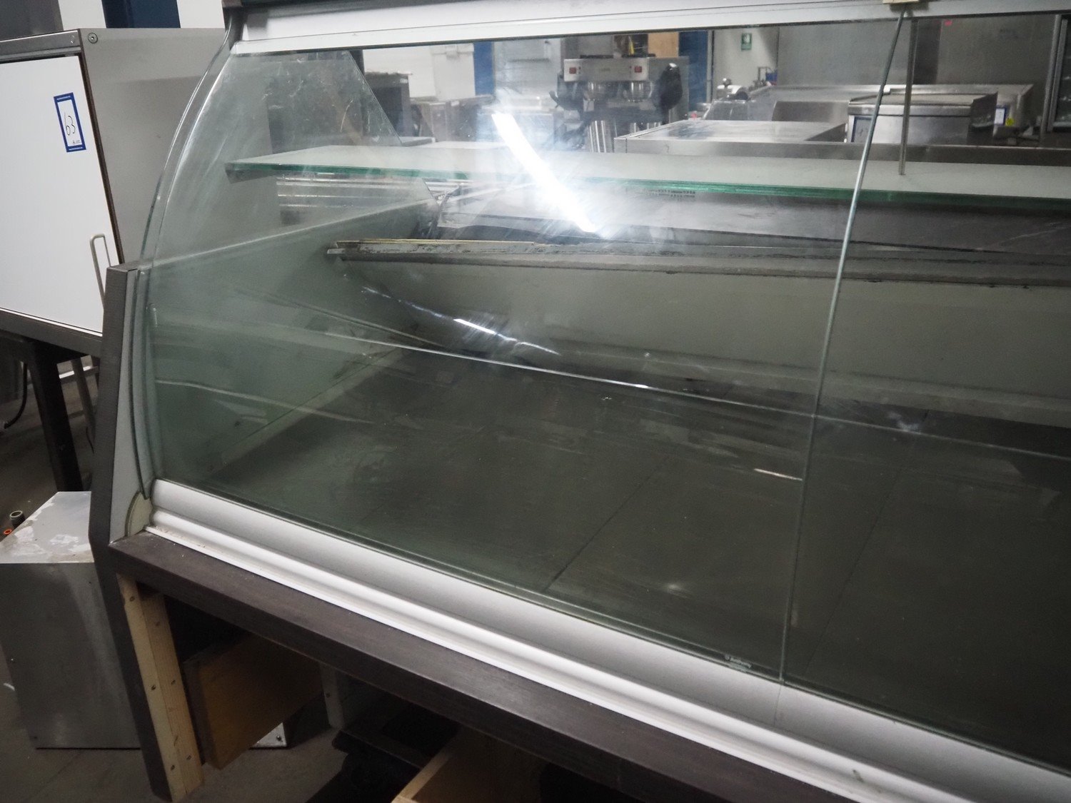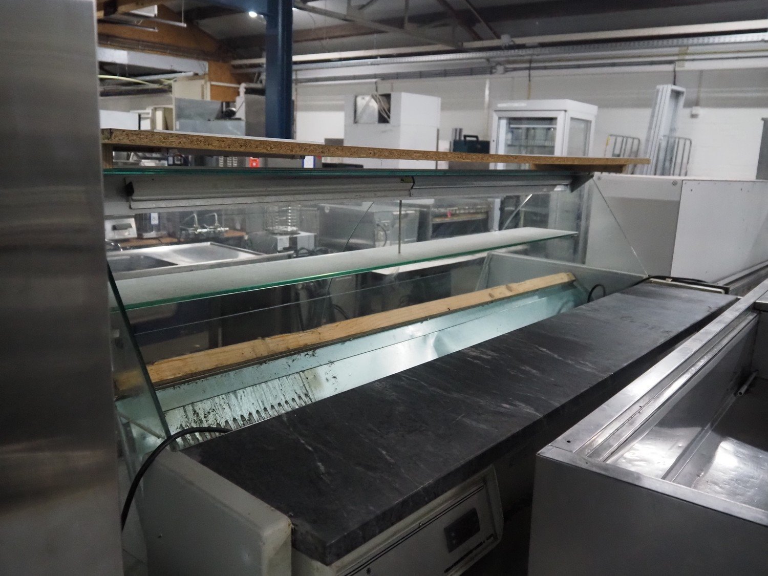 Mobile refrigerated showcase, dimensions stone slab: 1800 mm x 300 mm, inside dimensions: 1800 mm x 660 mm, total dimensions: 1900 mm x 1000 mm x 1400 mm.