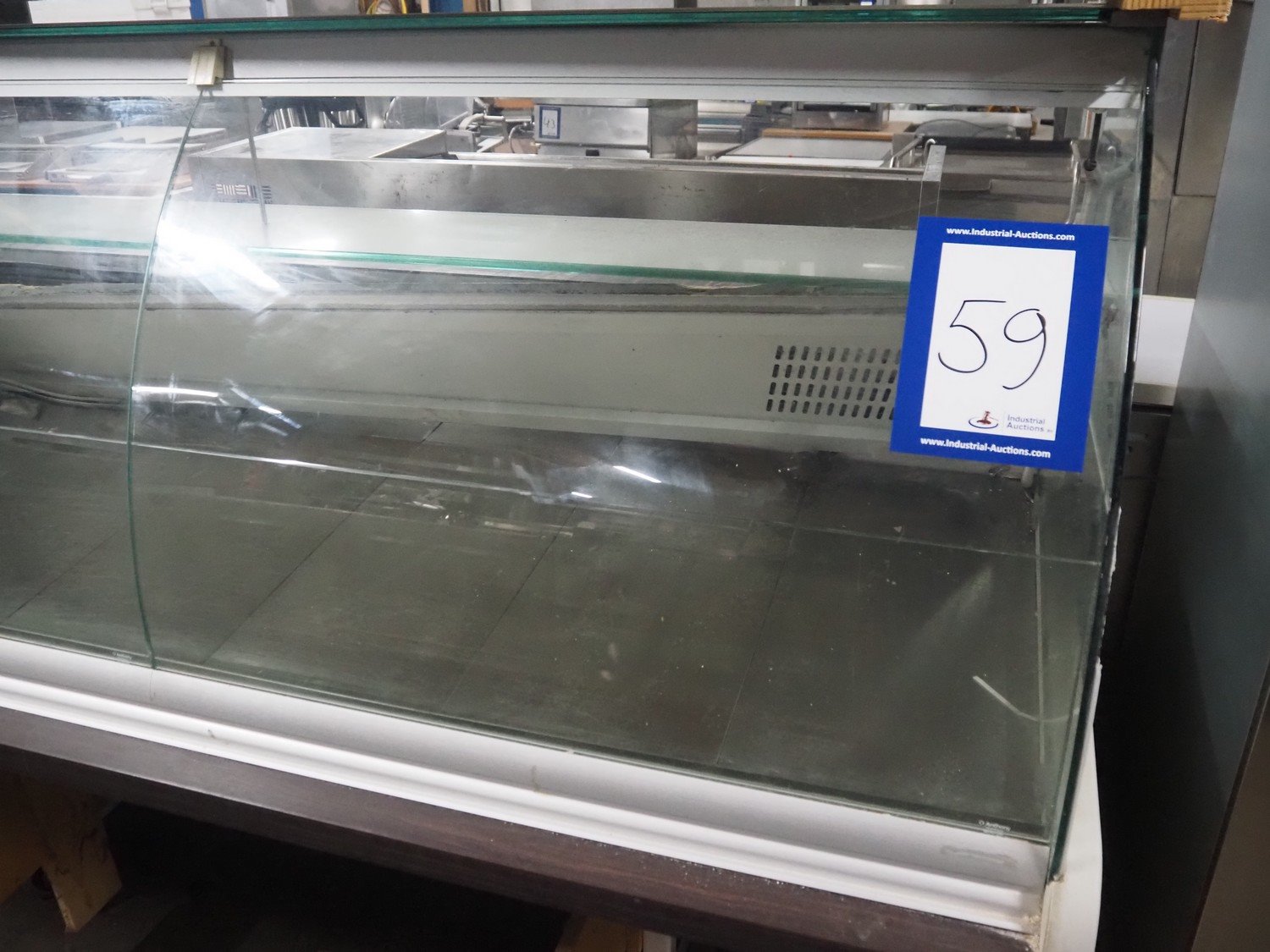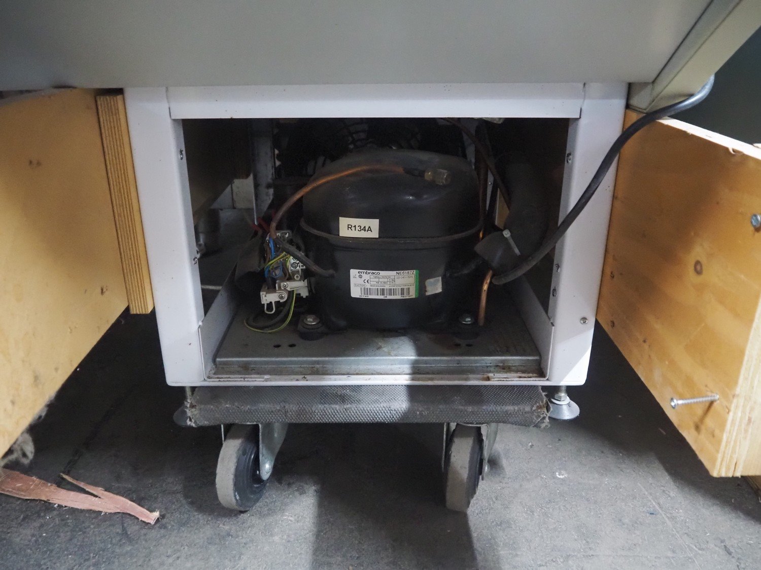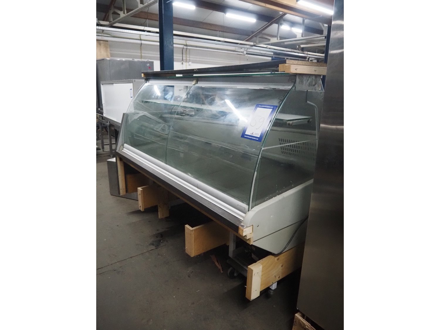 Mobile refrigerated showcase, dimensions stone slab: 1800 mm x 300 mm, inside dimensions: 1800 mm x 660 mm, total dimensions: 1900 mm x 1000 mm x 1400 mm.