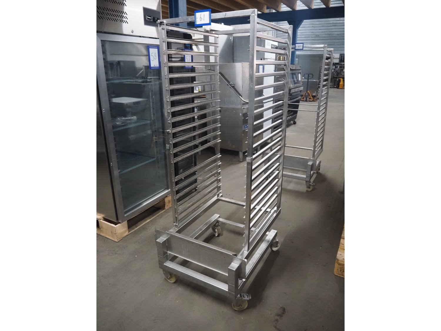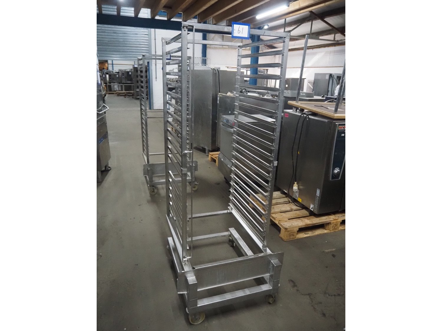 S/s trolley for rational combi steamer, 20 floors, floor dimensions: (20x) 660 mm x 540 mm, total dimensions: 970 mm x 740 mm x 1700 mm.