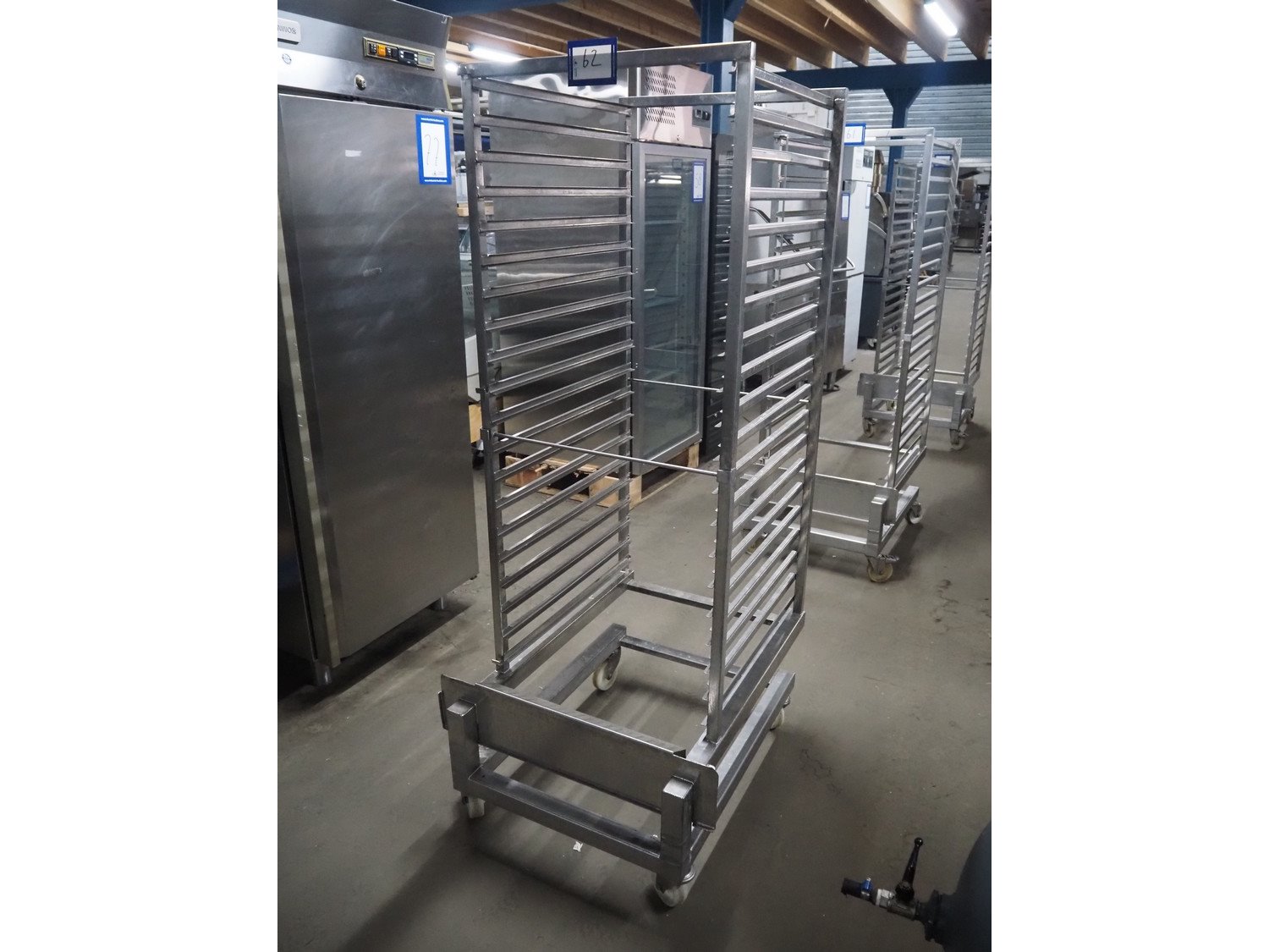 S/s trolley for rational combi steamer, 20 floors, floor dimensions: (20x) 660 mm x 540 mm, total dimensions: 970 mm x 740 mm x 1700 mm.
