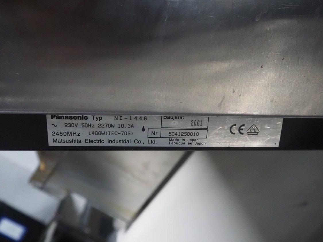 Panasonic microwave, type: NE-1446, number: 5C41250010, year of construction: 2001, 230 V, 50 Hz, 10.3 A, 2270 W, inside dimensions: 330 mm x 300 mm x 160 mm, total dimensions: 500 mm x 440 mm x 350 mm.