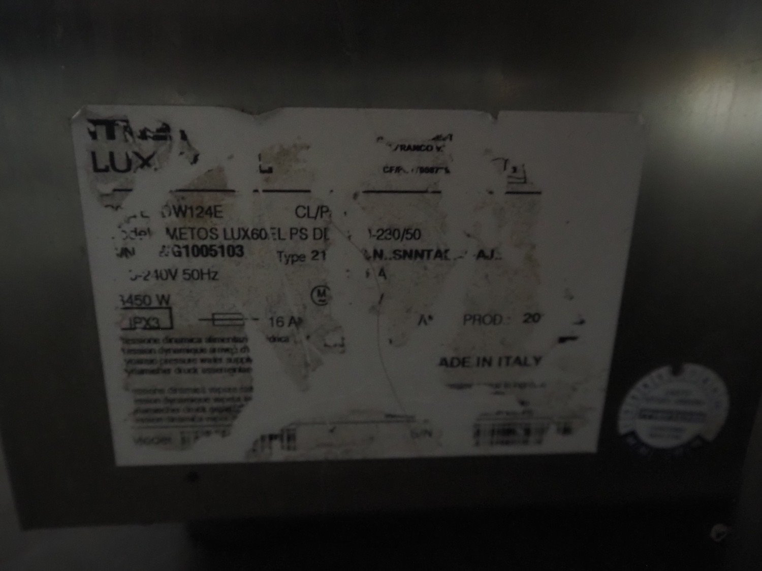 Metos dishwasher, 240 V, 50 Hz, 16 A, 8450 W, dimensions: 640 mm x 600 mm x 850 mm.