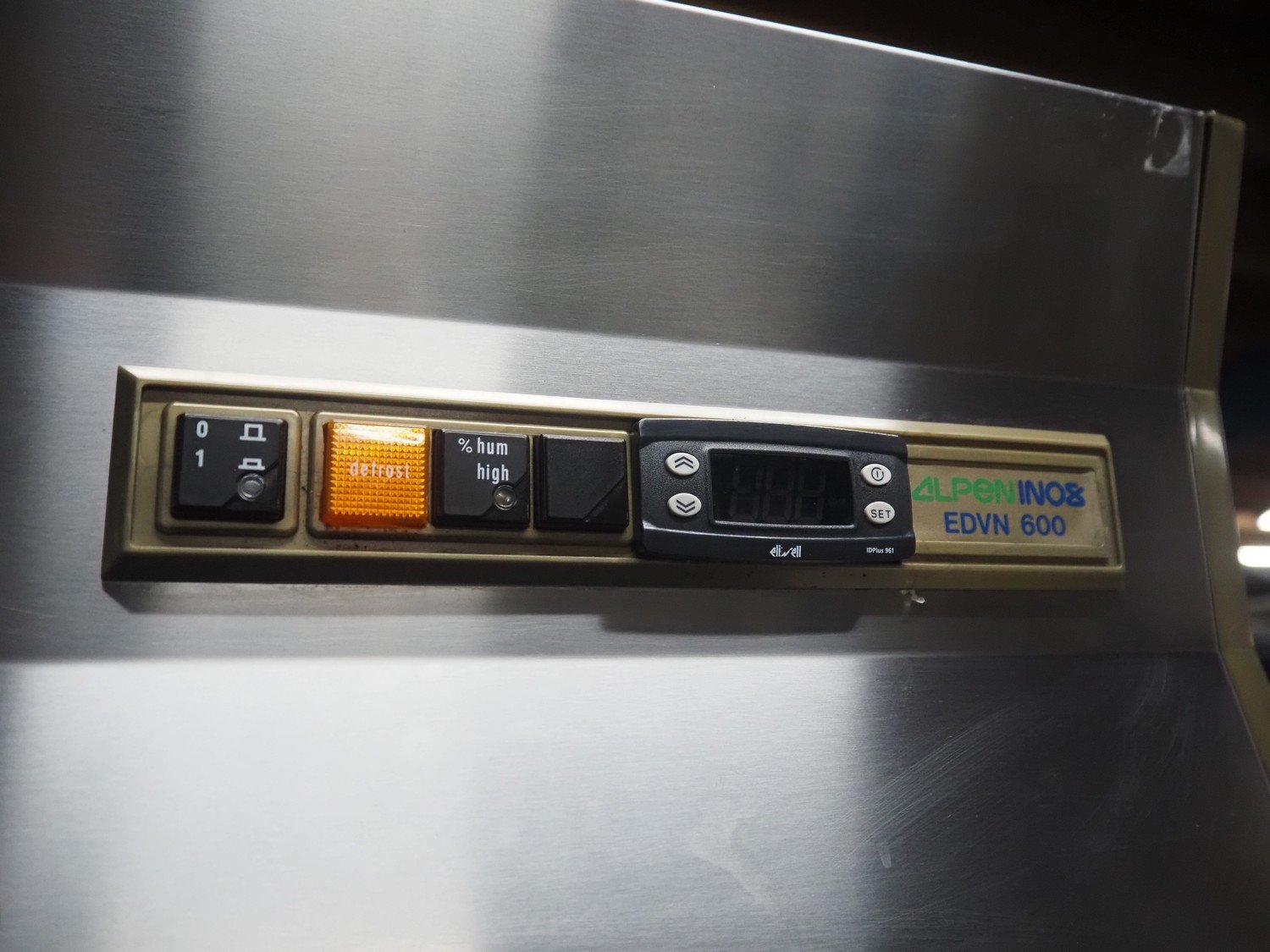 Alpeninox refrigerator, model: EDVN 600, serial number: 53200002, refrigerant: R134A/0.210 kg, 1 floor, floor dimensions: 660 mm x 530 mm, total dimensions: 800 mm x 720 mm x 2260 mm.