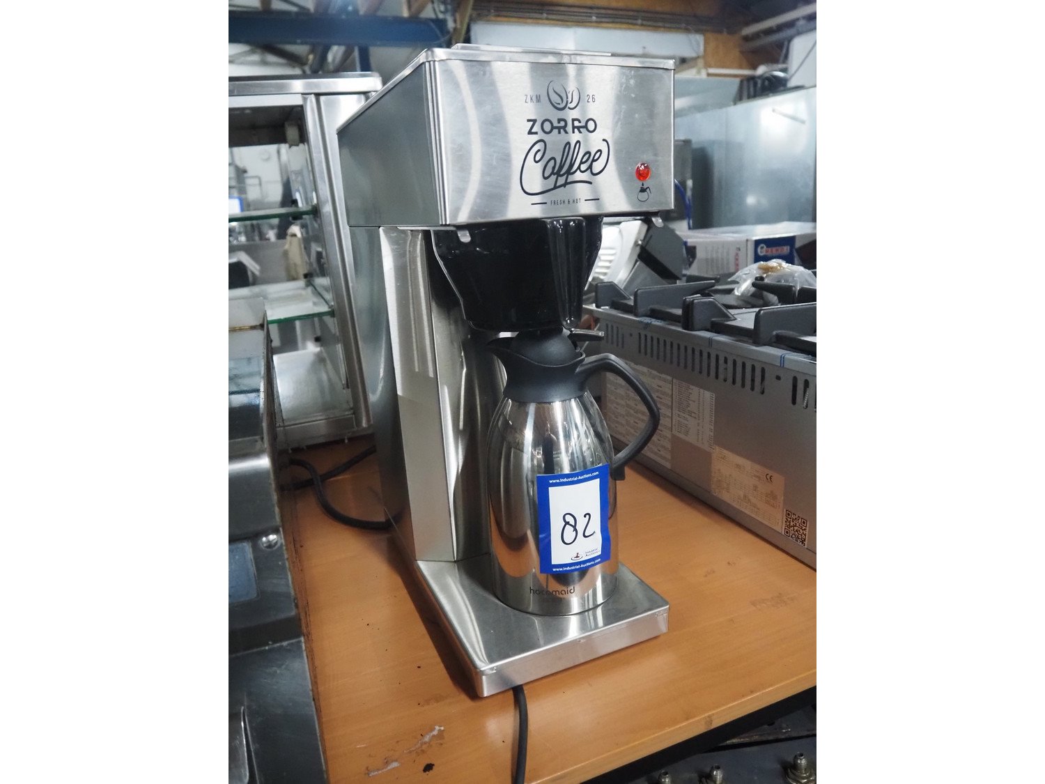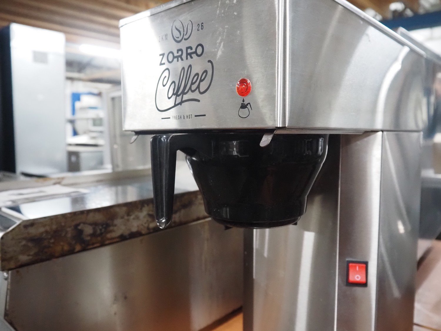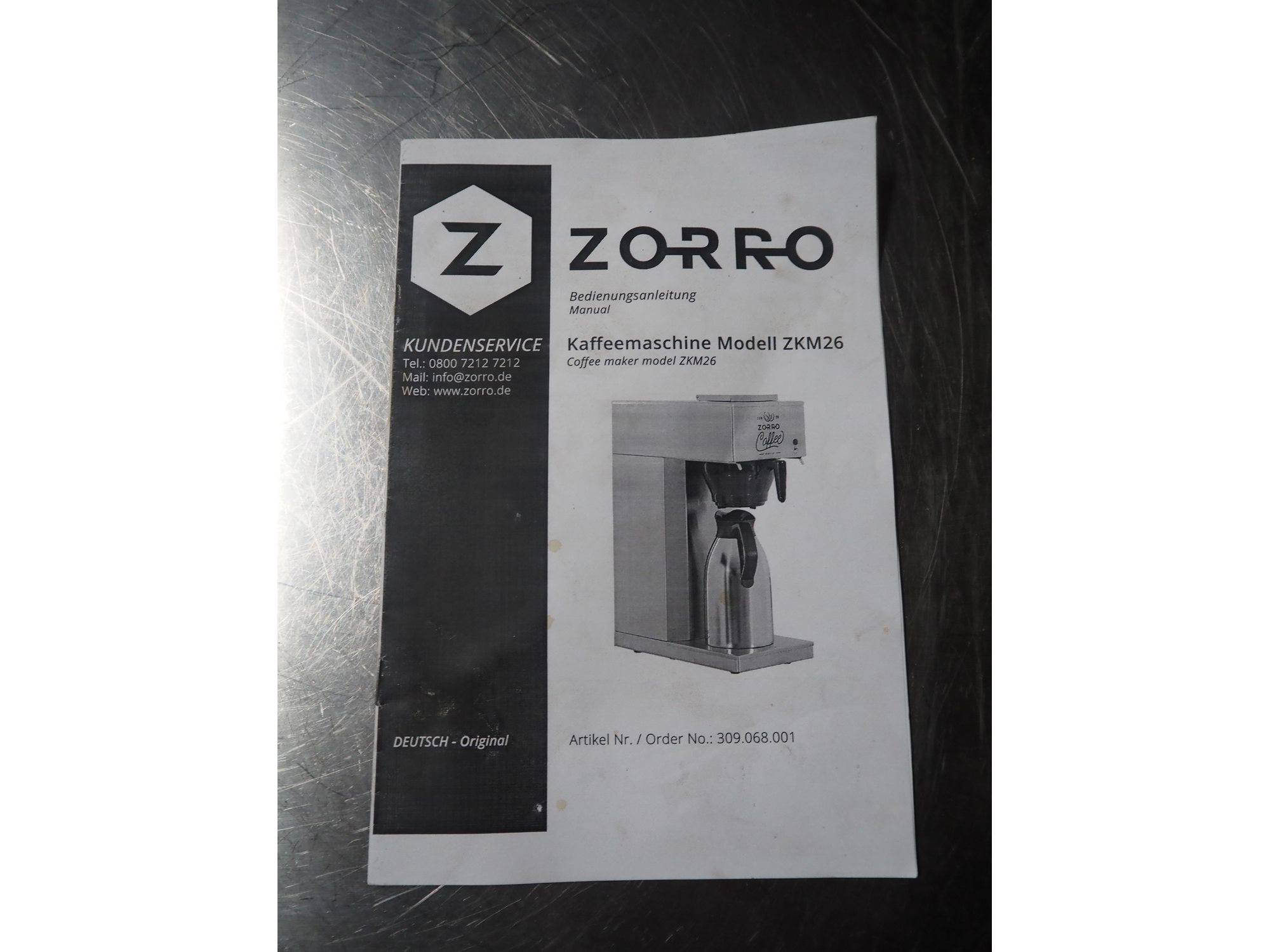 Zorro B.V. coffee machine, model: ZKM 26, serial number: SRV28623050296, year of construction: 20230520, 230 V, 50/60 Hz, 8 A, 1.9 kW, weight: 6.4 kg, capacity: 2 liter, dimensions: 390 mm x 210 mm x 550 mm.