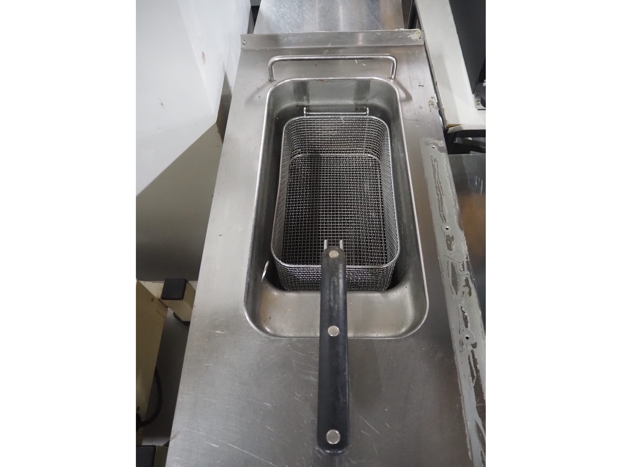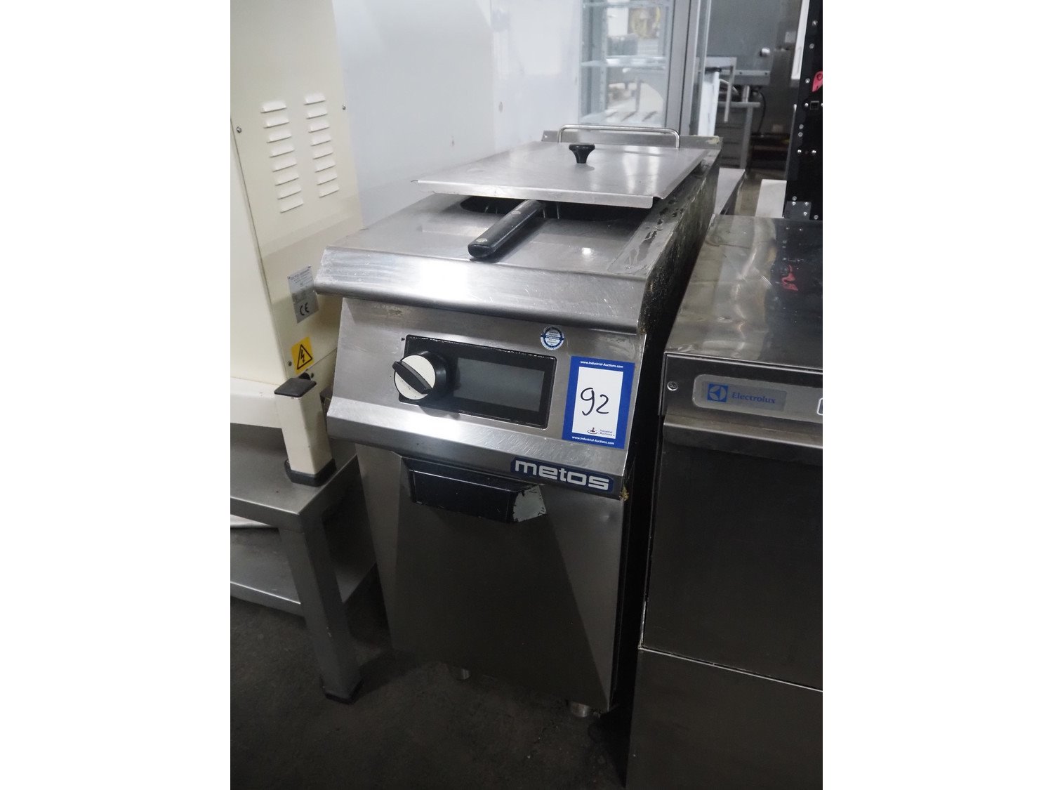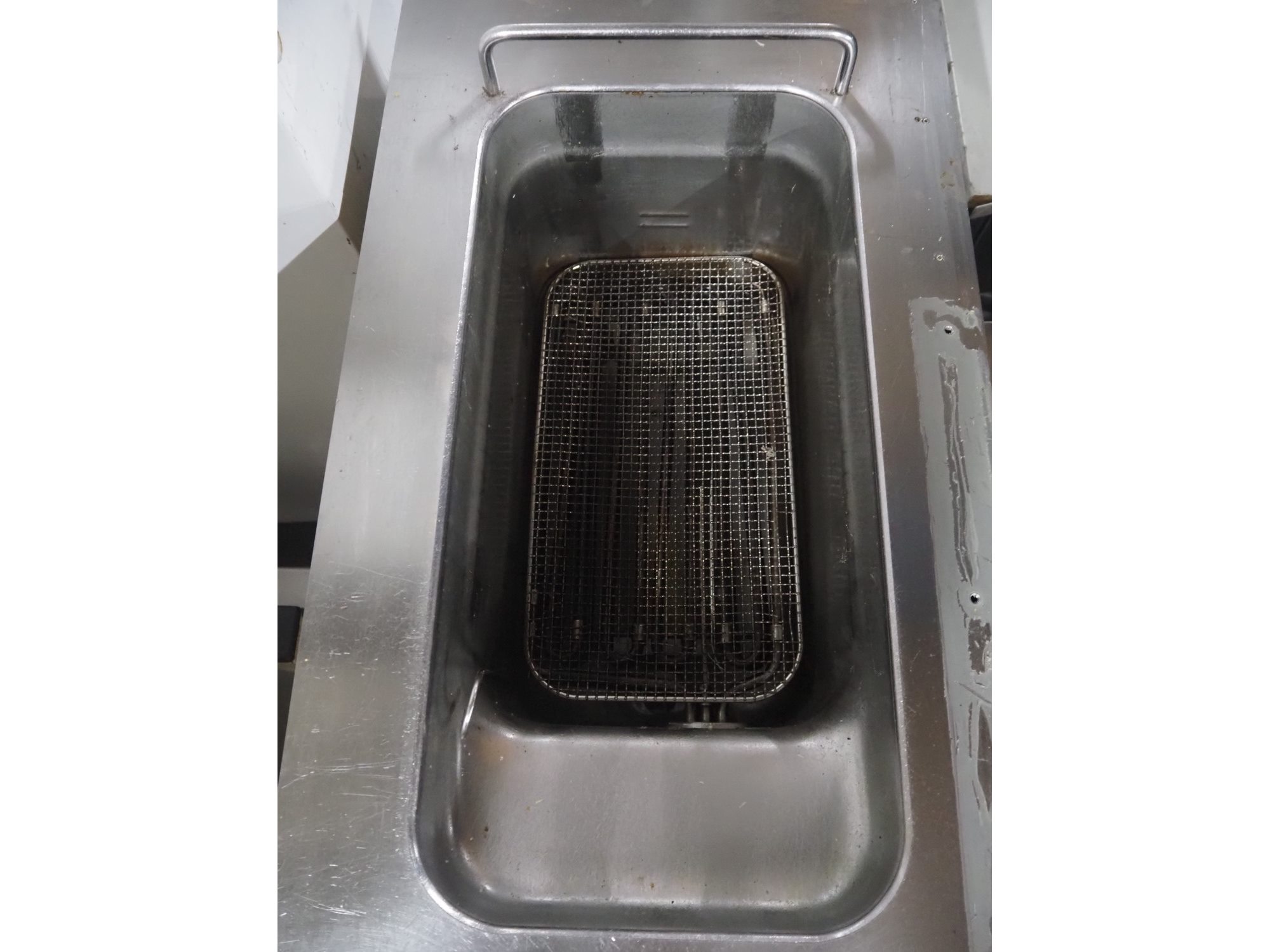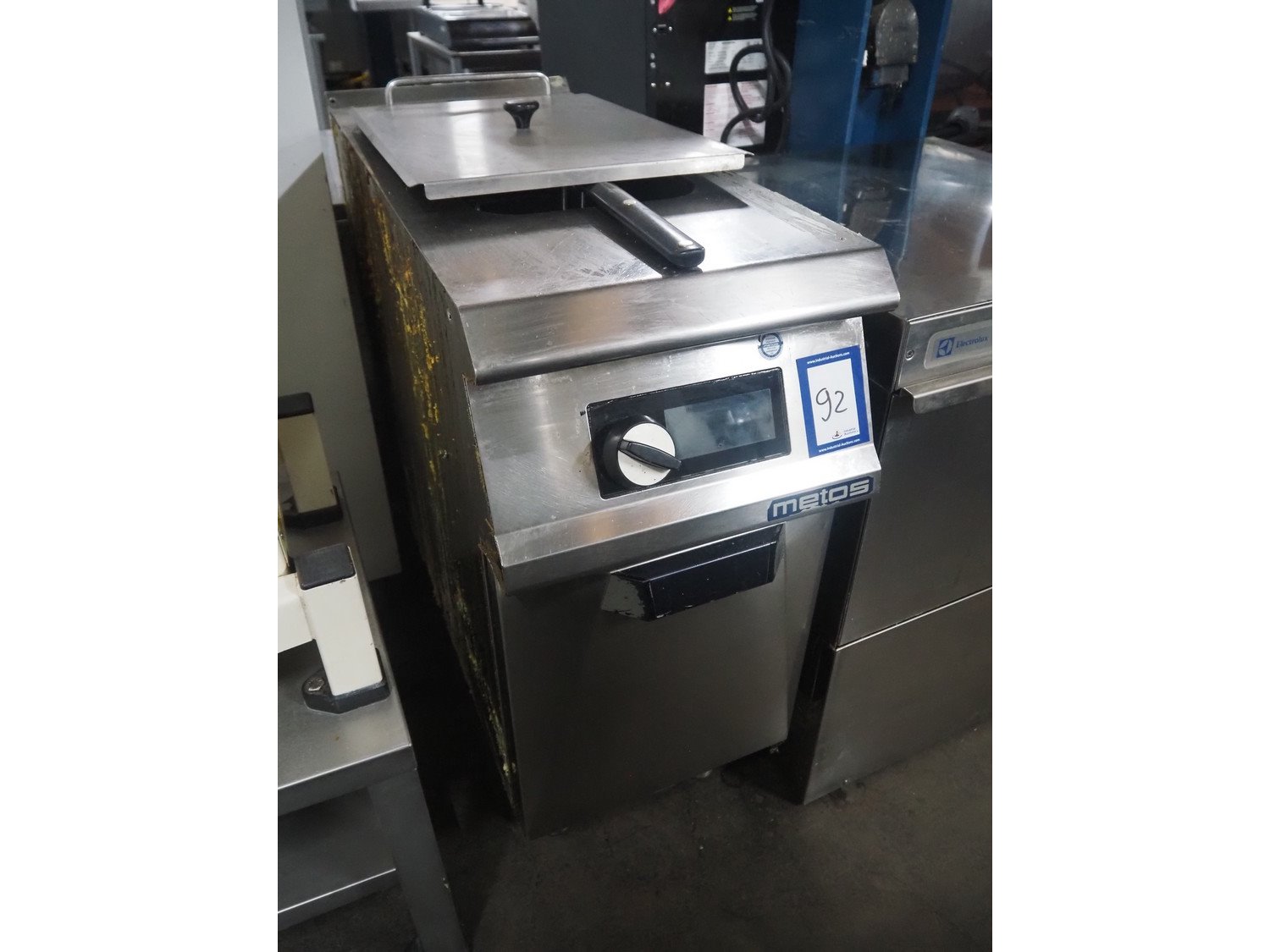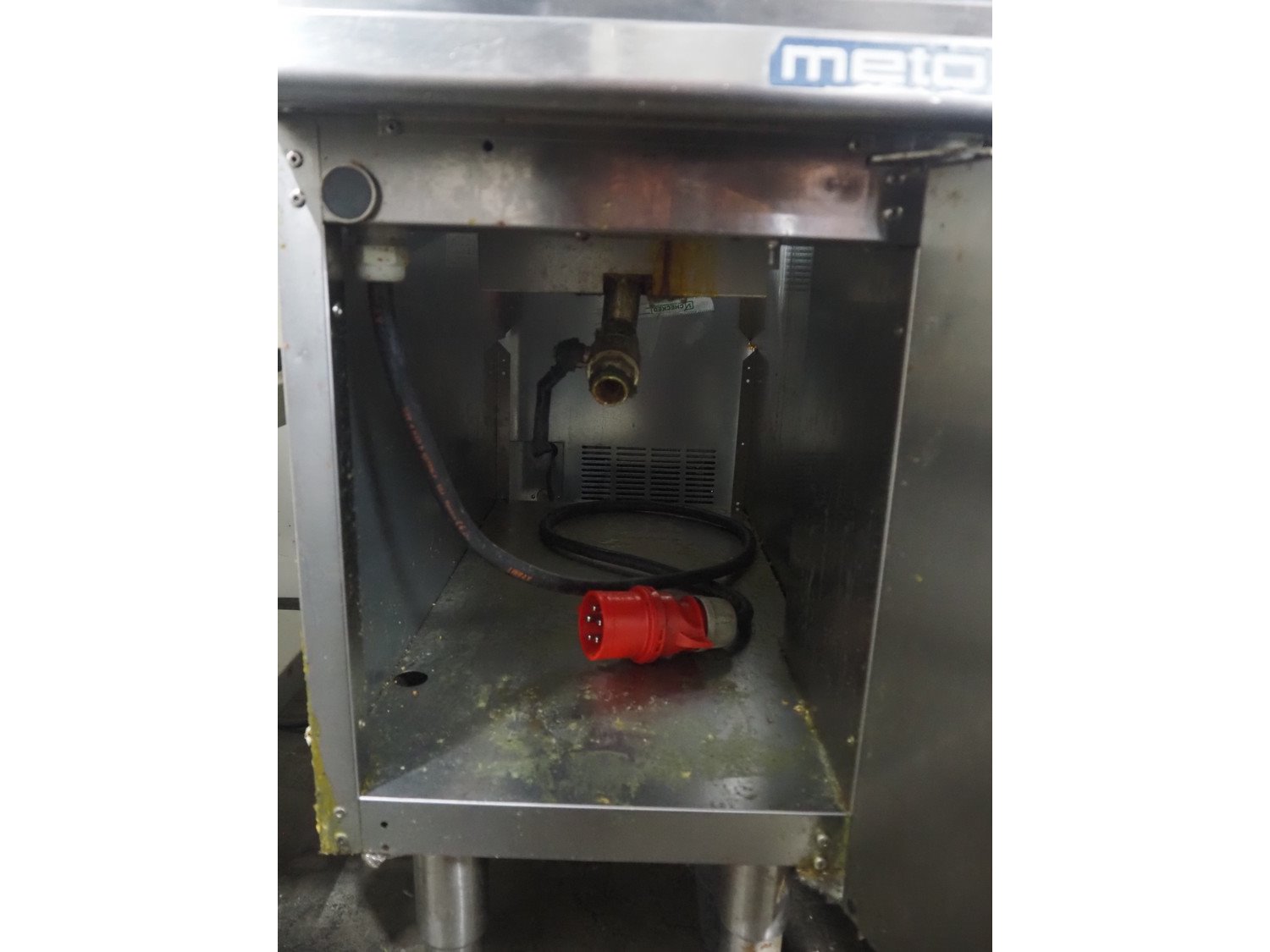 Metos fryer, electric heated, inside dimensions: 370 mm x 220 mm x 100 mm, total dimensions: 920 mm x 400 mm x 900 mm.