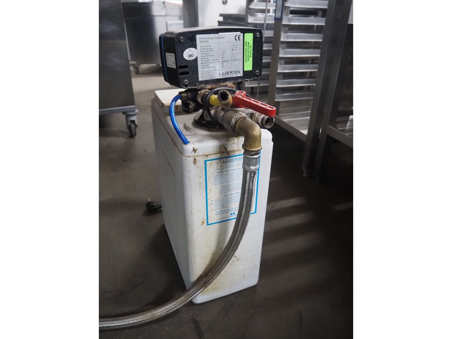 Lubron water softener, serial number: 08102309, year of construction: 10/08, 230 V, 50 Hz, 4 W, pressure: 2.8 bar, capacity: 7 liter, dimensions: 400 mm x 200 mm x 650 mm.