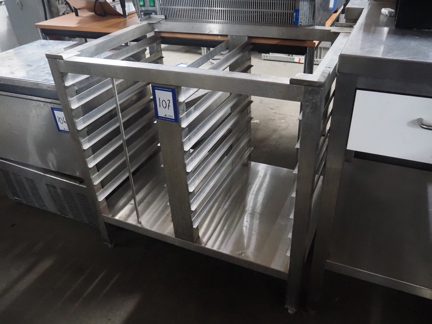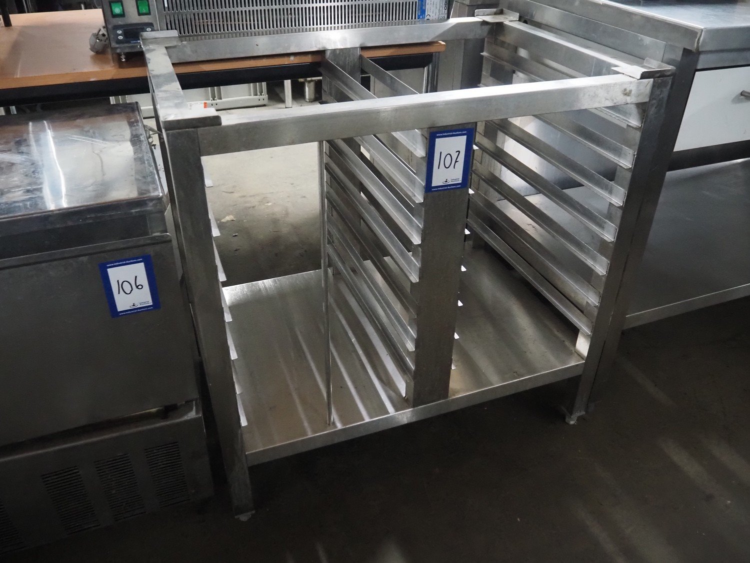 S/s rack for oven, 14 floors, floor dimensions: 560 mm x 330 mm, total dimensions: 830 mm x 560 mm x 800 mm.