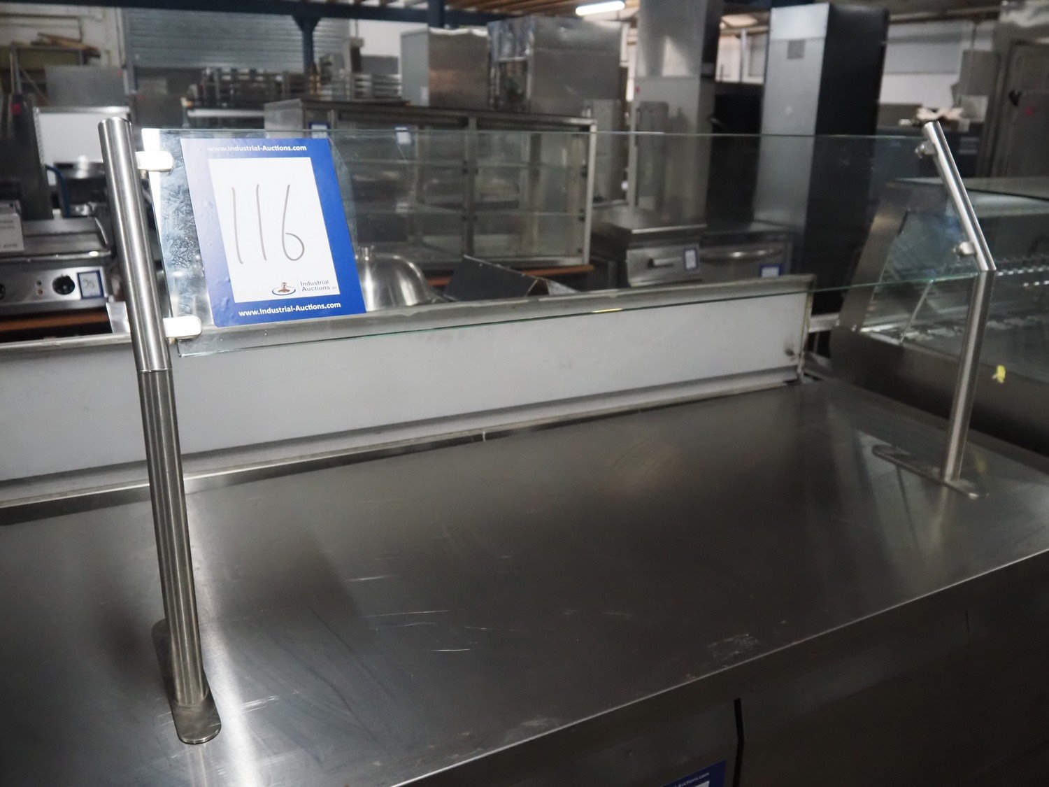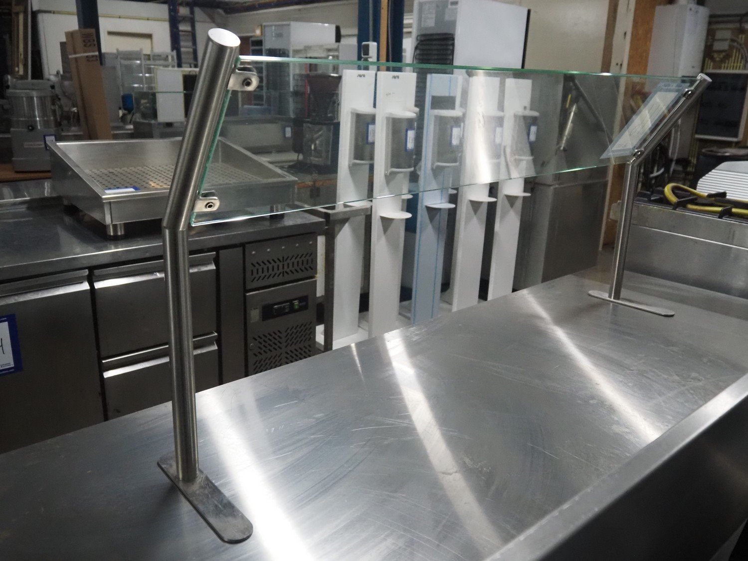 S/s frame with glass, dimensions: 1200 mm x 220 mm x 560 mm.