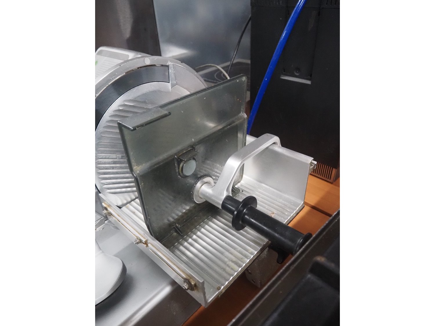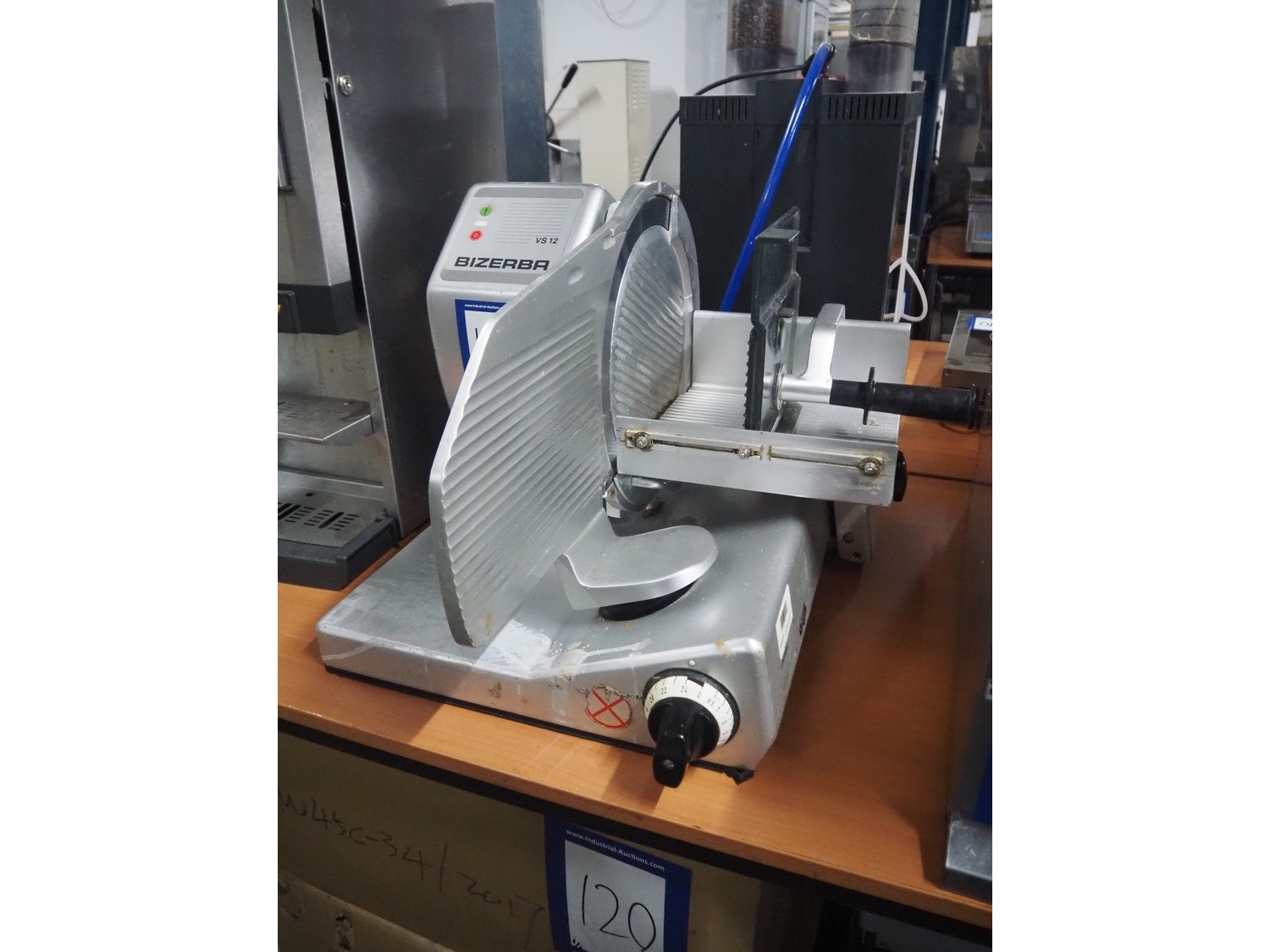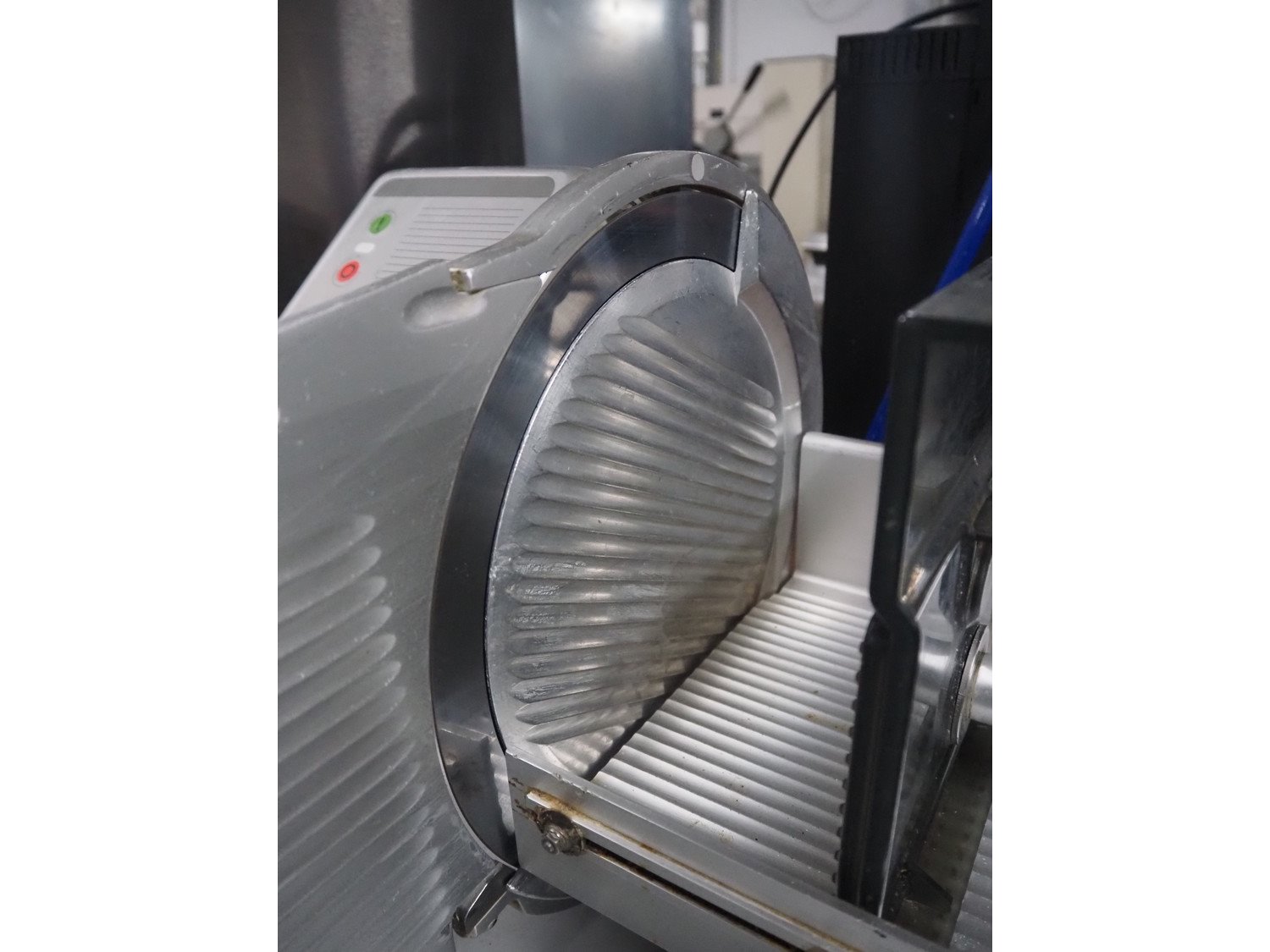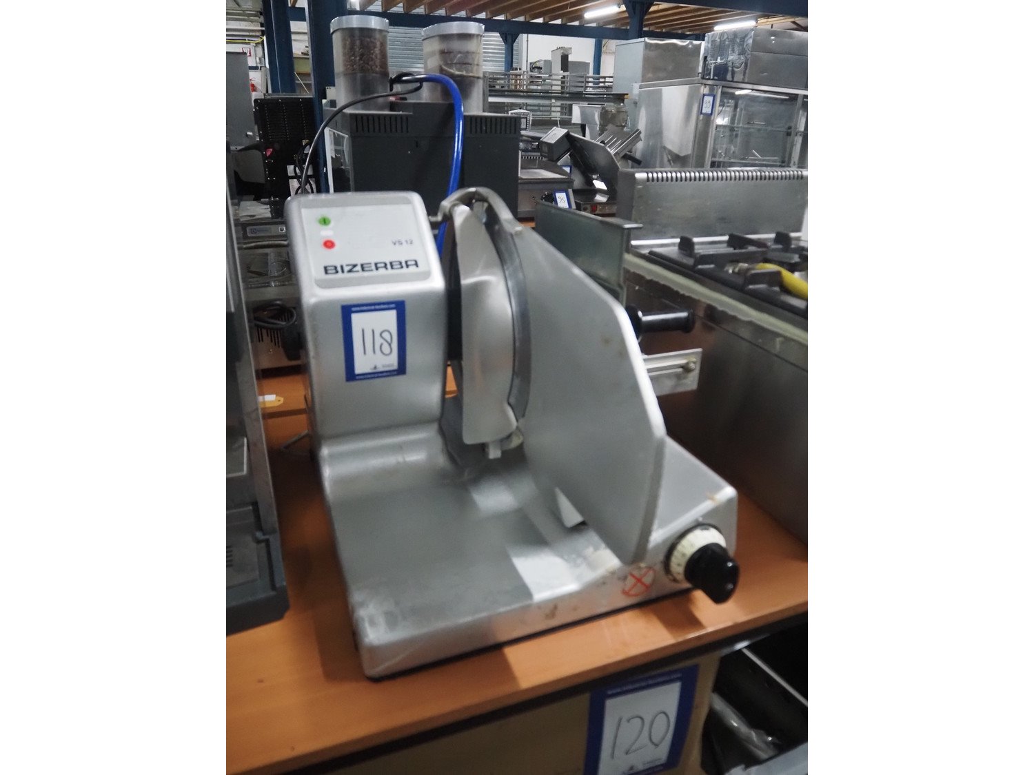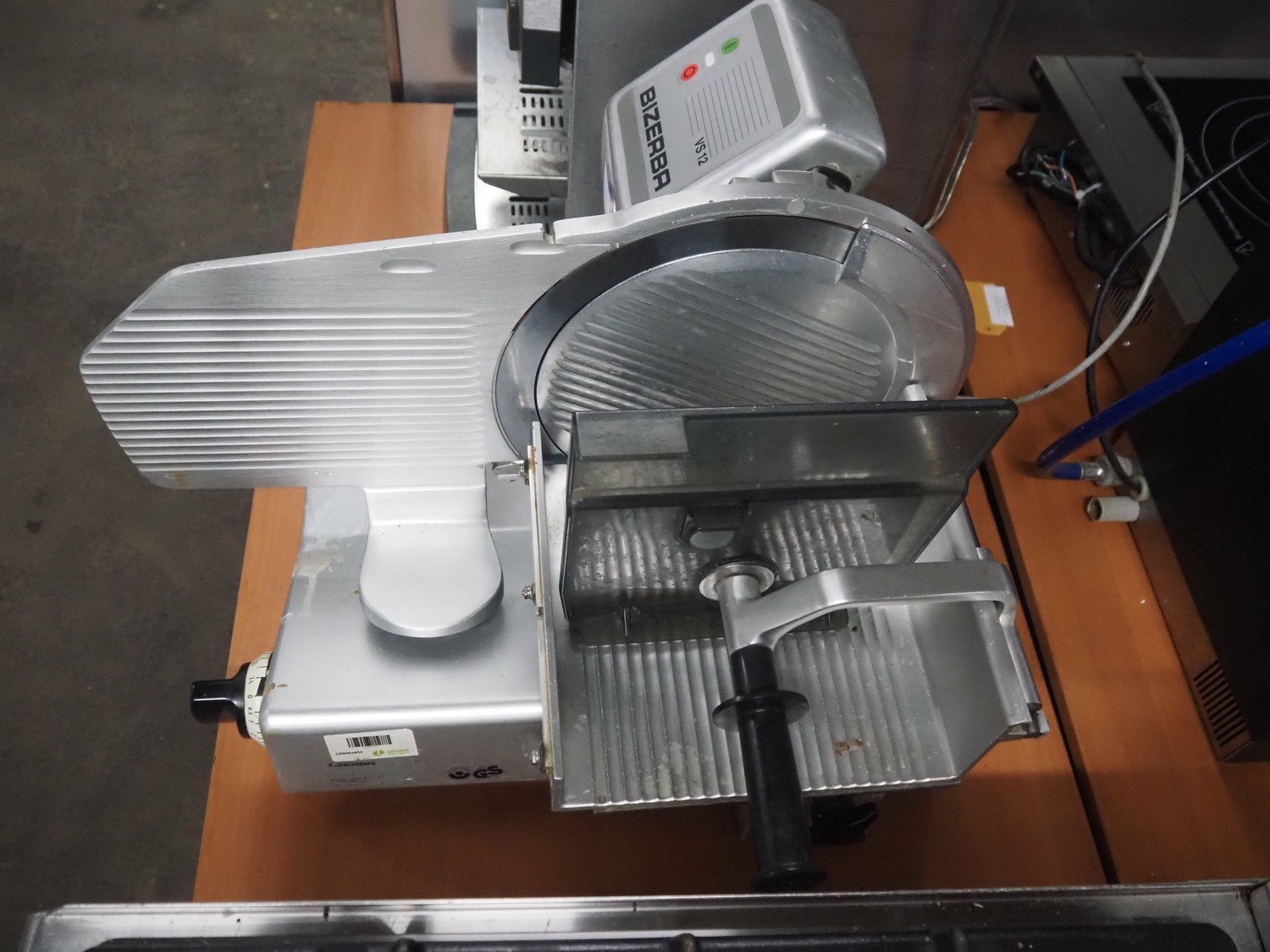 Bizerba slicer, model: VS 12, dimensions: 600 mm x 560 mm x 430 mm. Including knife sharpener.