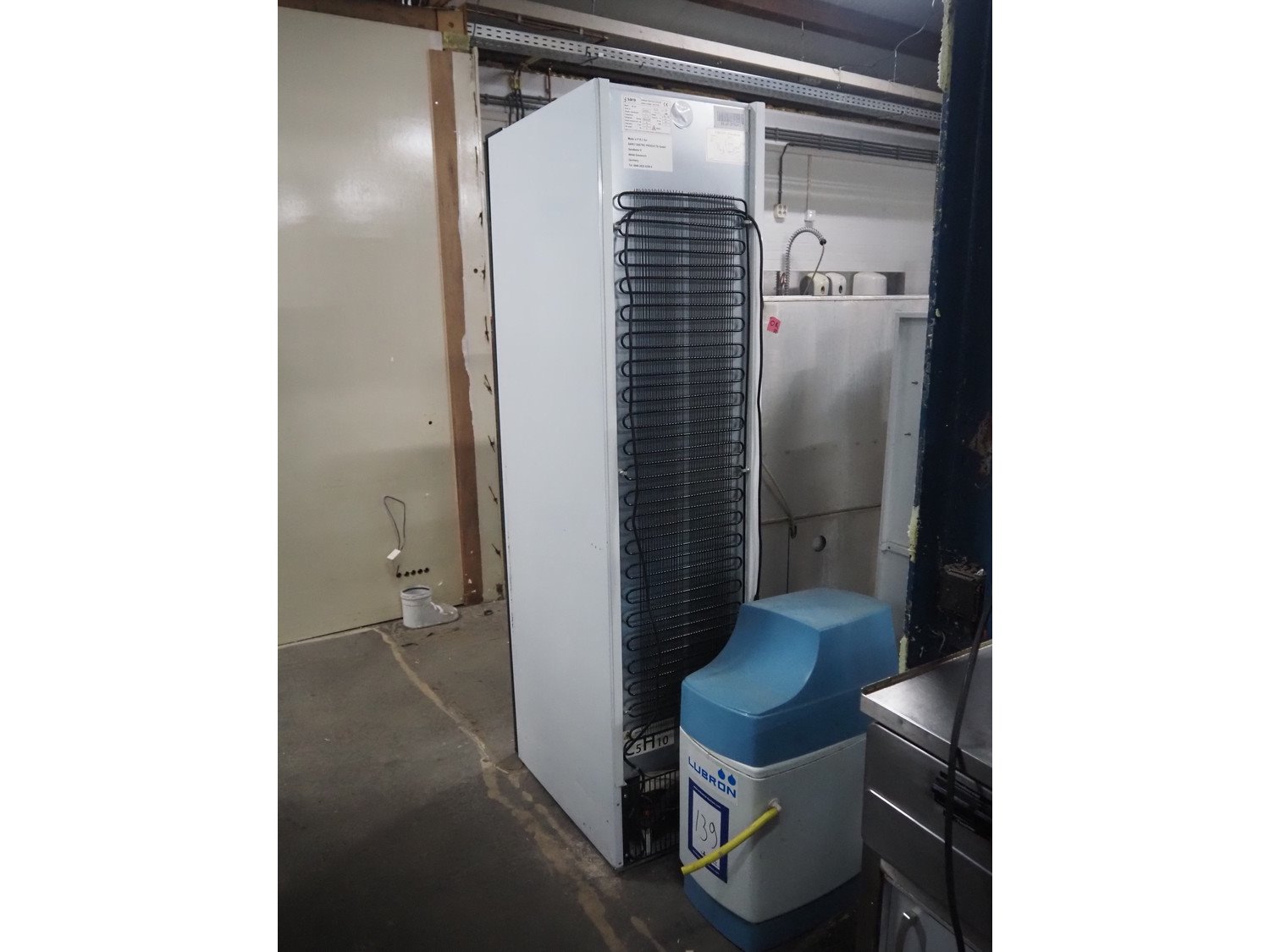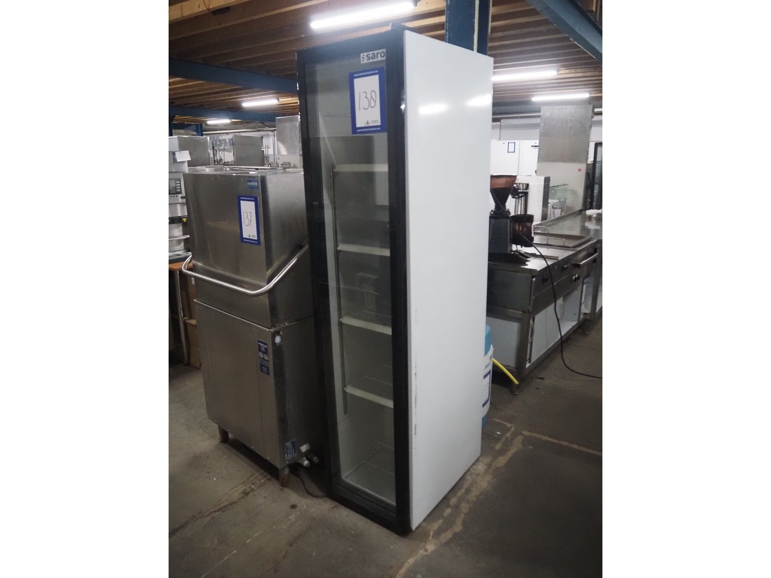 Saro Gastro-Products GmbH refrigerator, model: SK 301, serial number: 23104415, 220-240 V, 50 Hz, 1 A, 165 W, refrigerant: R600A/0.060 kg, weight: 71 kg, 5 floors, floor dimensions: 460 mm x 350 mm, total dimensions: 680 mm x 450 mm x 1890 mm.