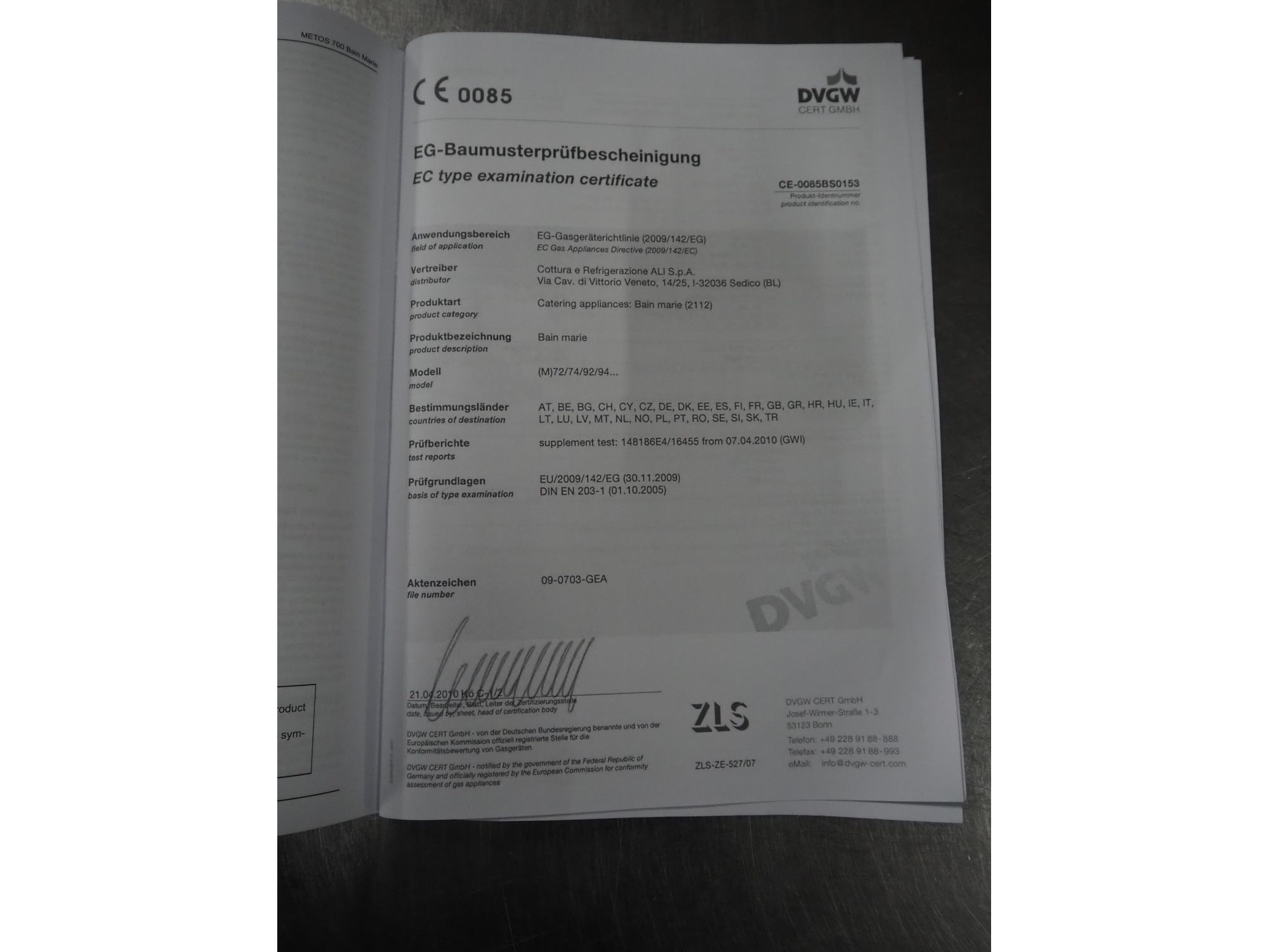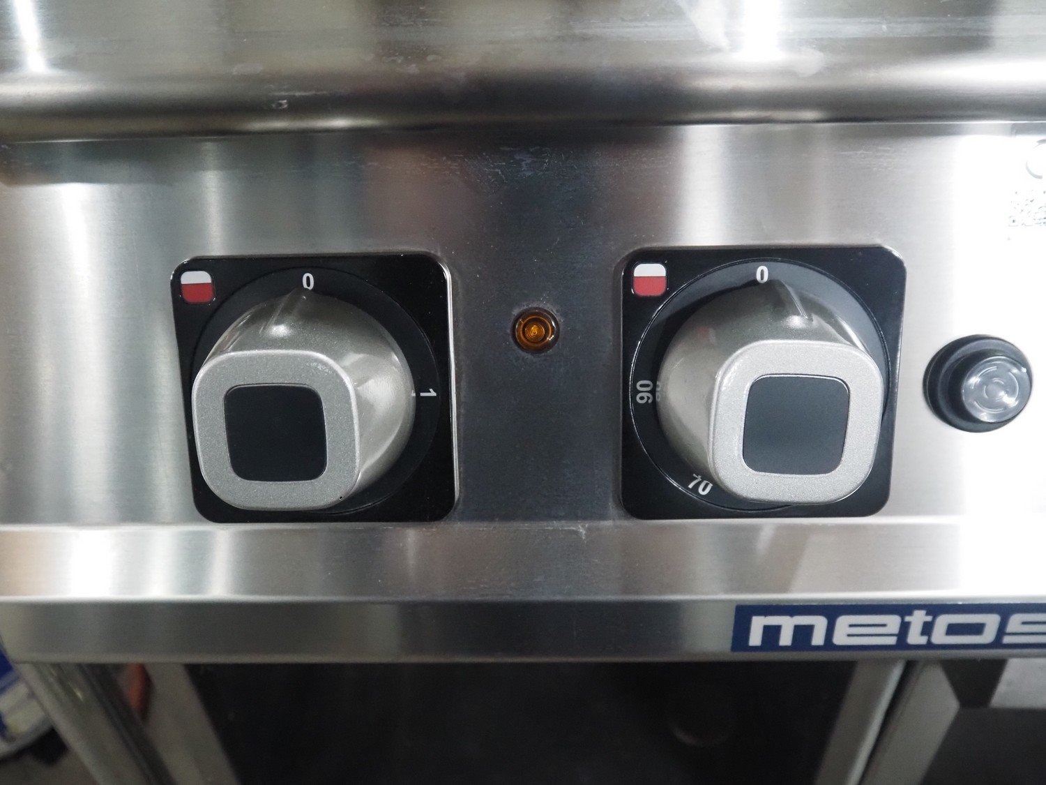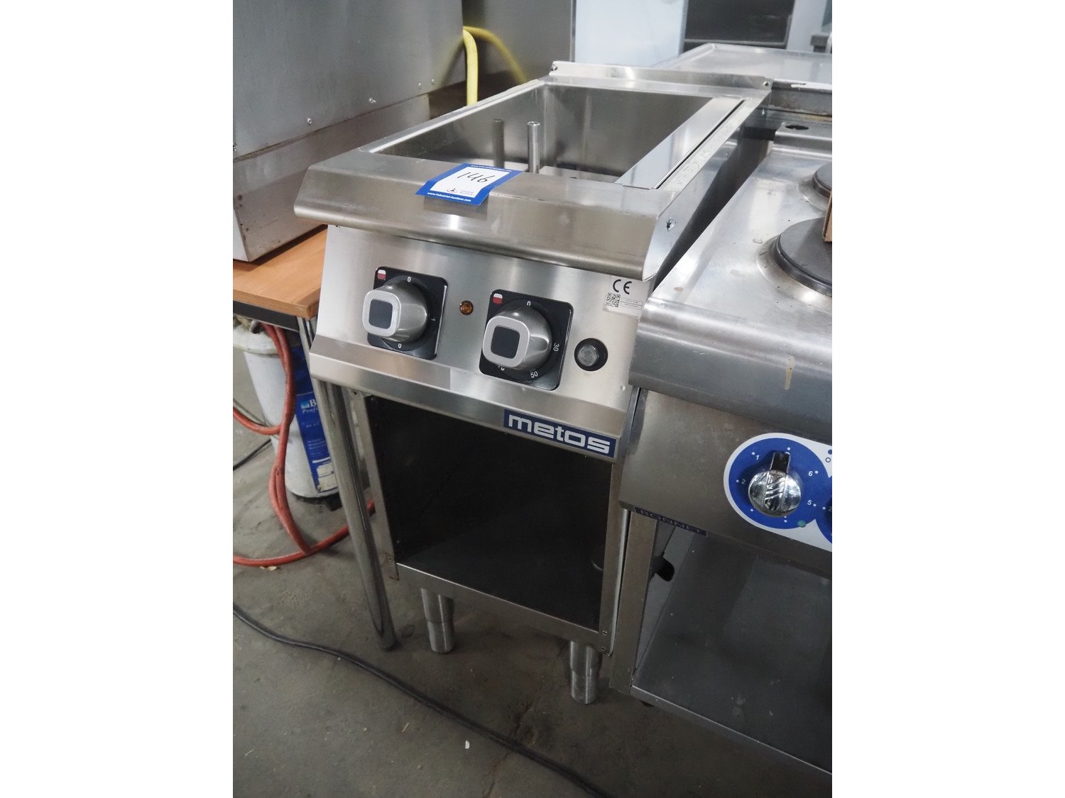 Metos au-bain marie, inside dimensions: 500 mm x 300 mm x 130 mm, total dimensions: 760 mm x 400 mm x 930 mm.