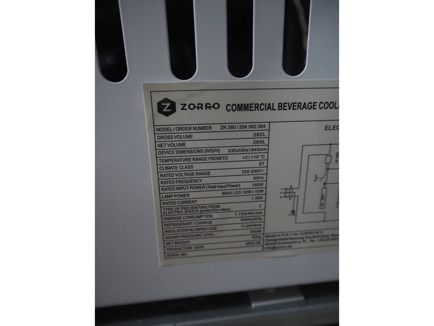 Zorro B.V. refrigerator, model: ZK 280 / 204.062.004, 220-240 V, 50 Hz, 1.3 A, 180 W, refrigerant: R600A/0.062 kg, volume: 282 liter, weight: 62 kg, 7 floors, floor dimensions: 430 mm x 380 mm, total dimensions: 540 mm x 540 mm x 1850 mm.